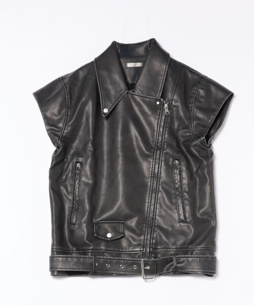 フェイクレザービッグシルエットライダースベスト