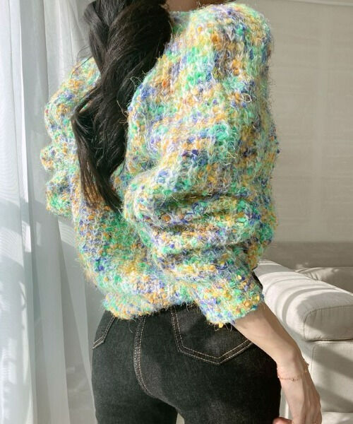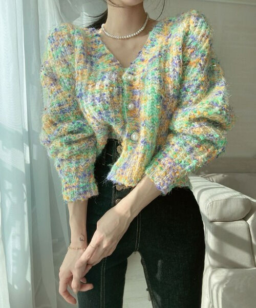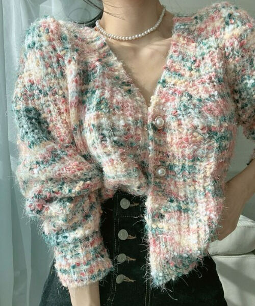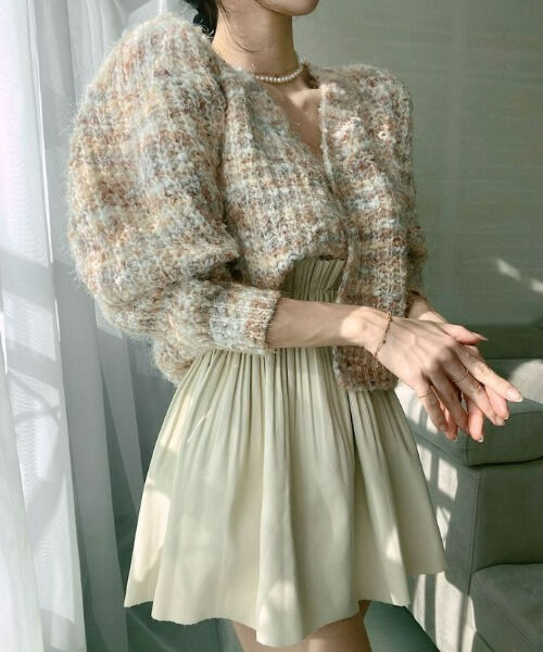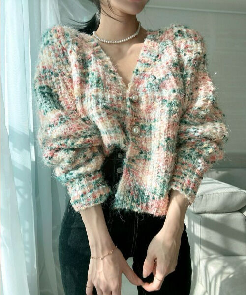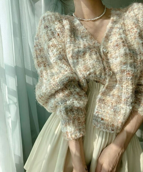 ツイード柄オーバーシャギーカーディガン