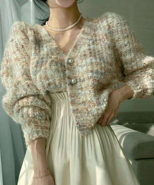 パフスリーブ&パールボタンが女性らしさをさらにプラス♡