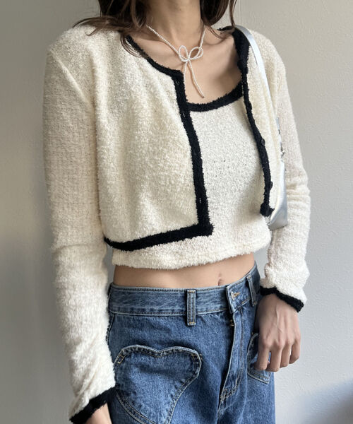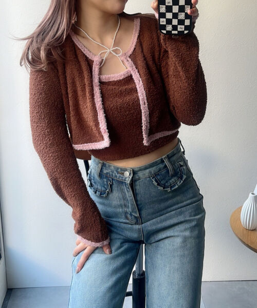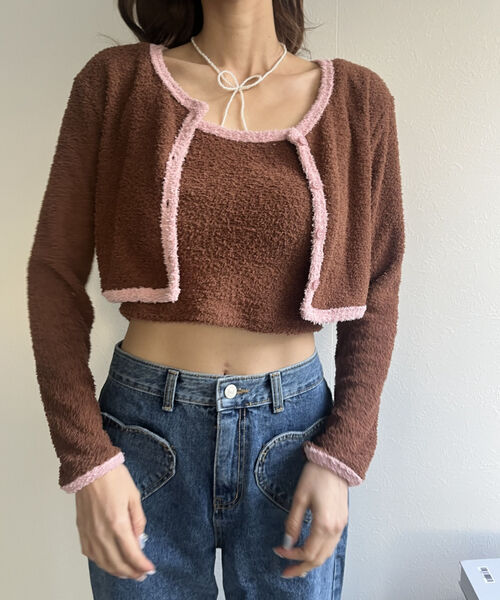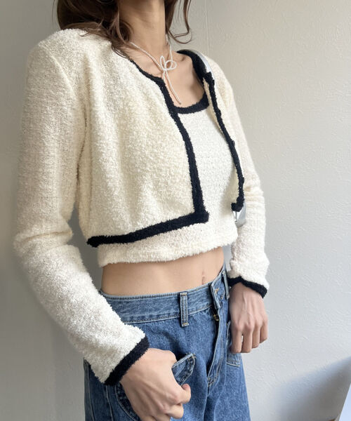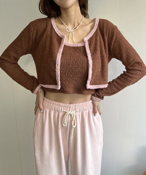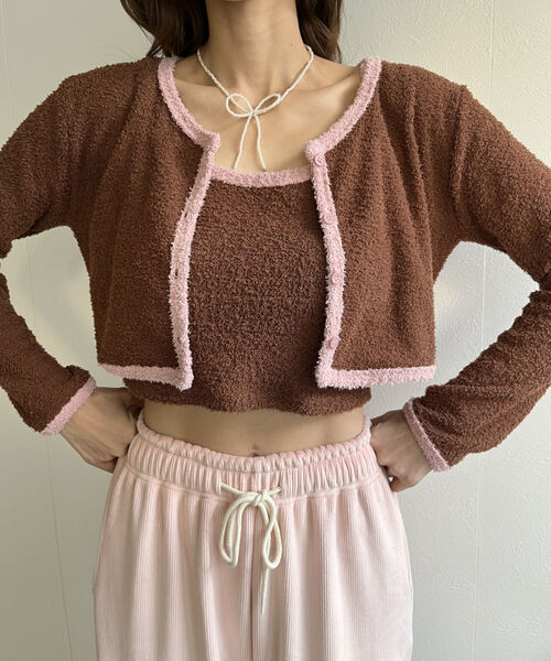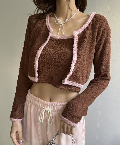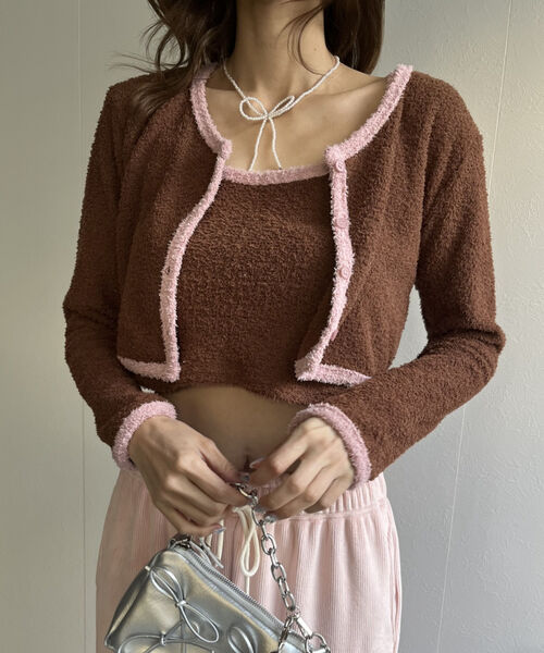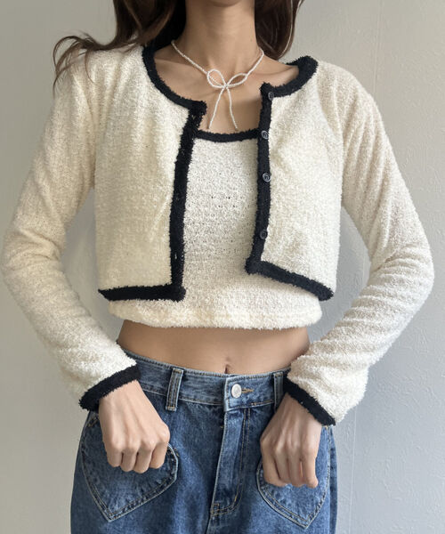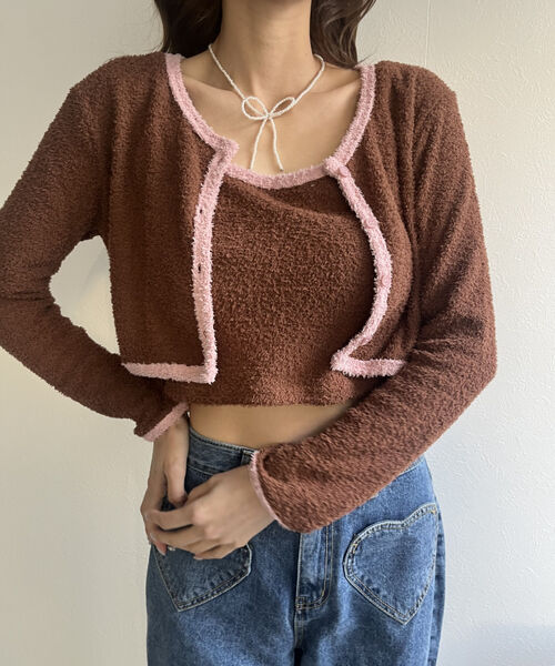 バイカラーニットソーカーディガン&キャミセット