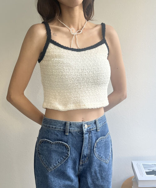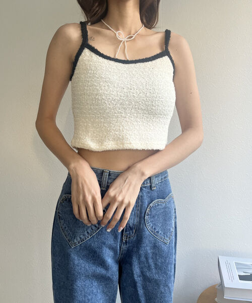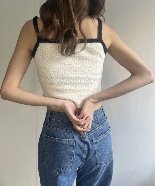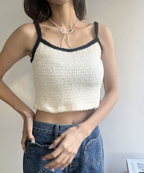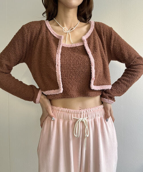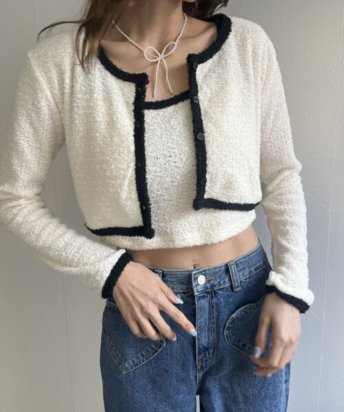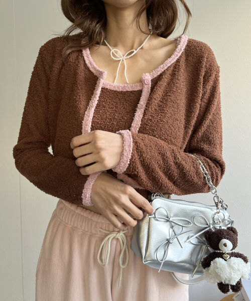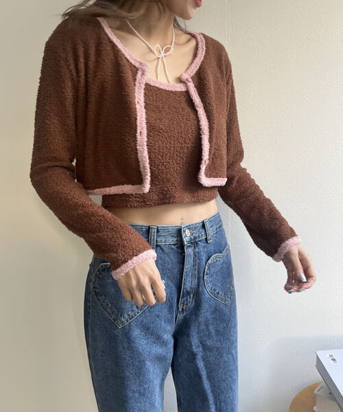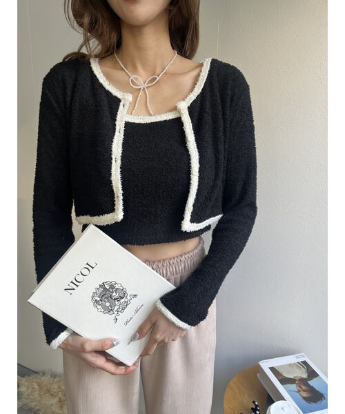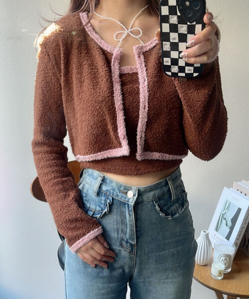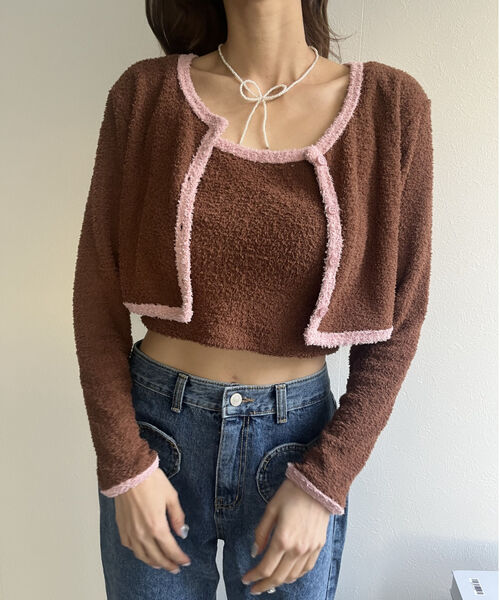 バイカラーニットソーカーディガン&キャミセット