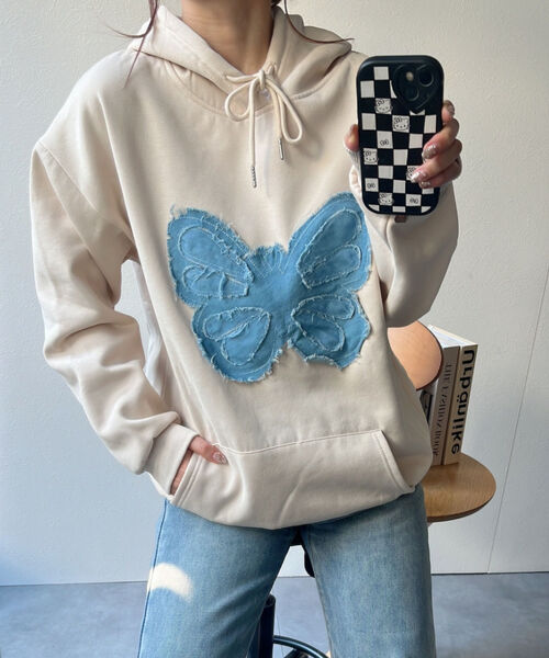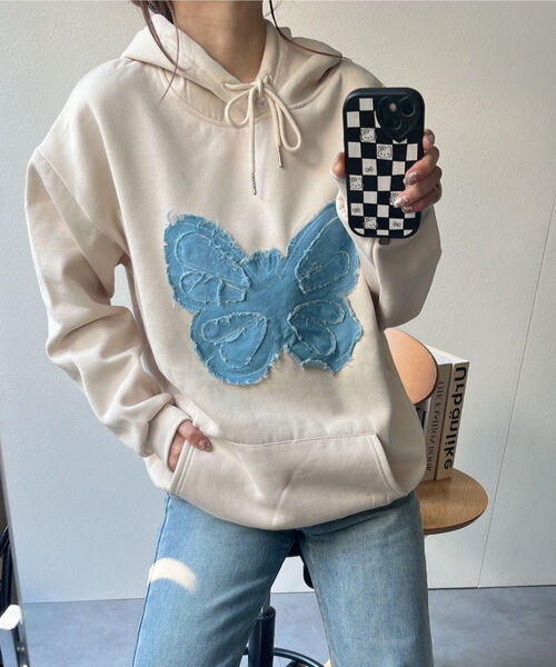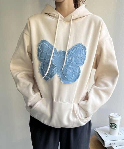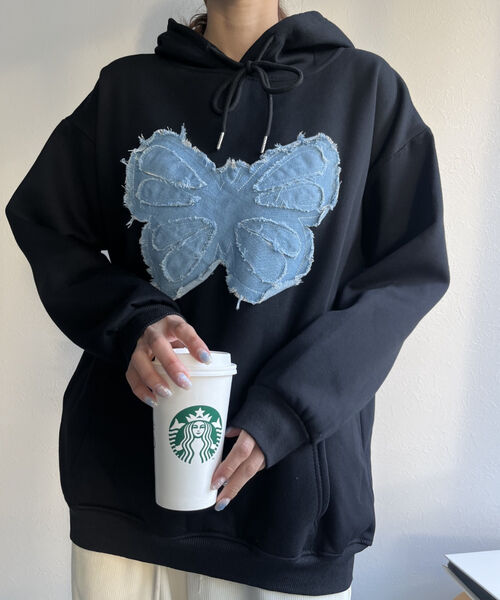 バタフライドッキング裏起毛フーディ/パーカー/スウェット