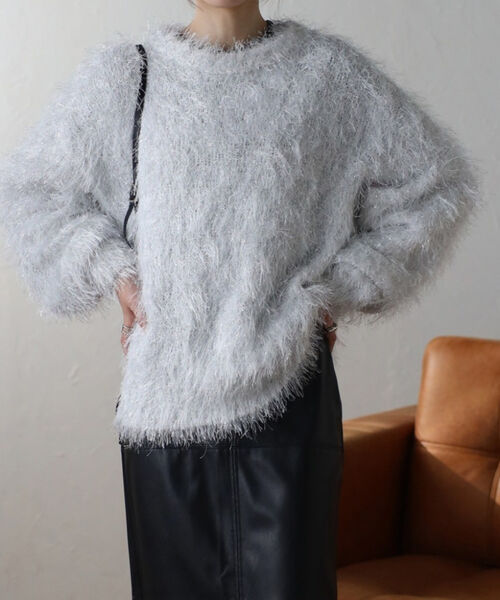 【ラメニット】【キラキラ/きらきら】 フェザークルーネックニットプルオーバー/TOPS