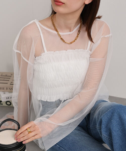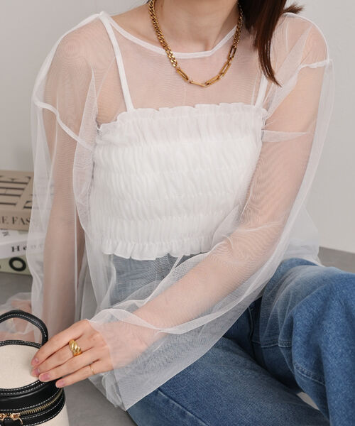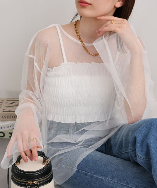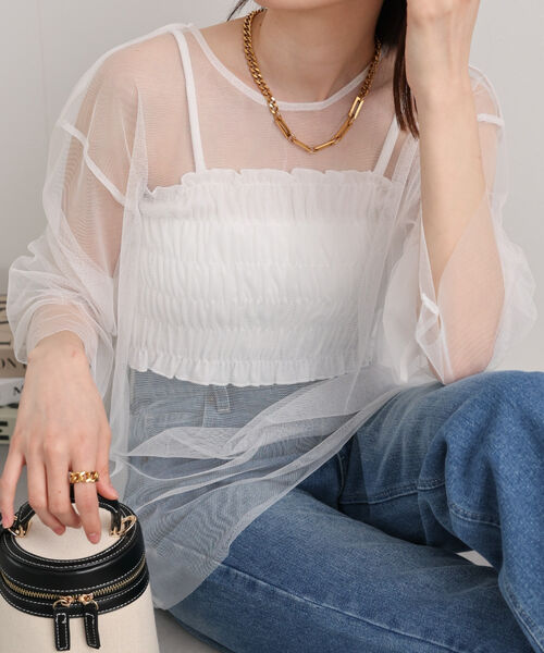 チュール / シアーブラウス / ビスチェ / シャーリング / 透け感 / アンサンブル