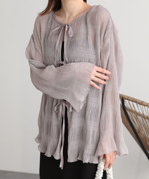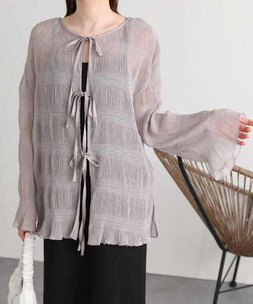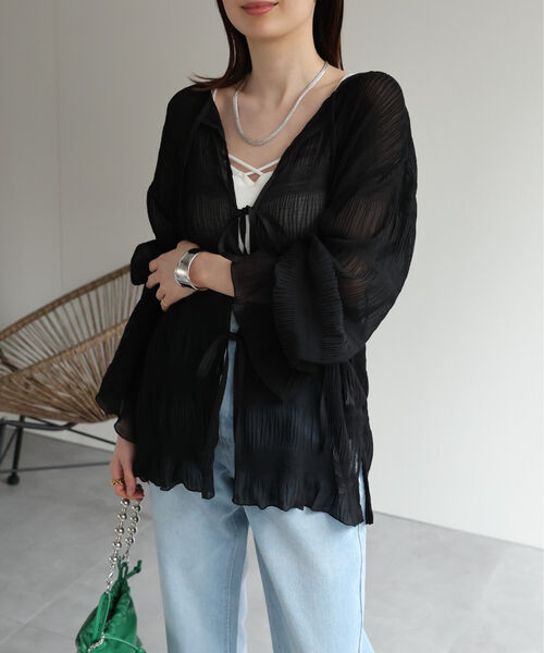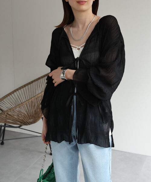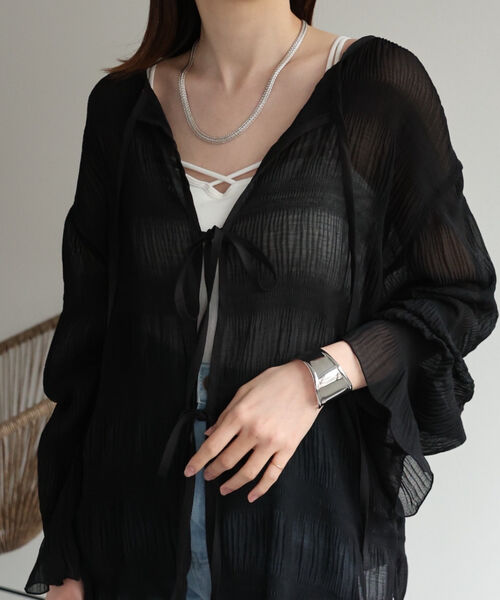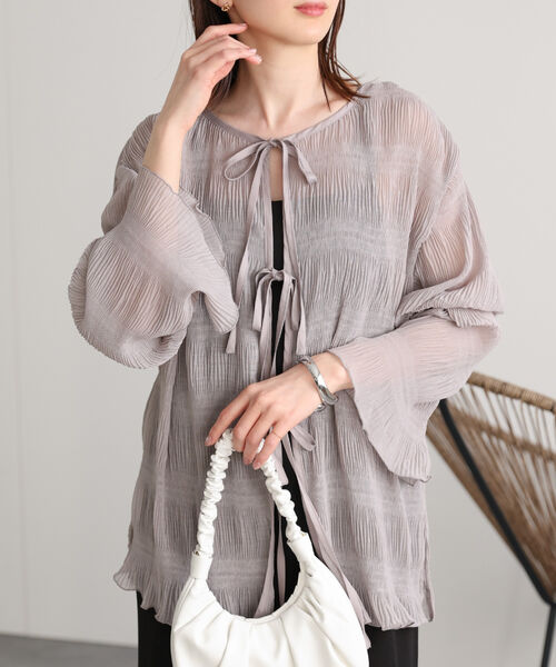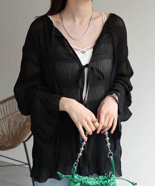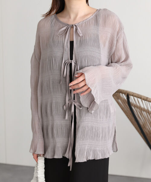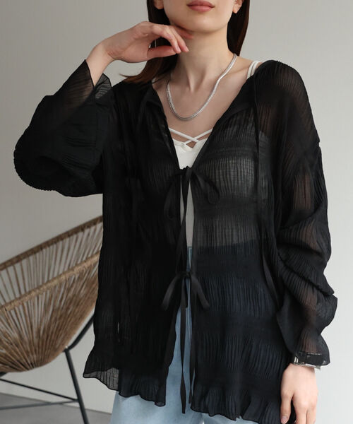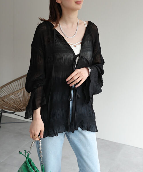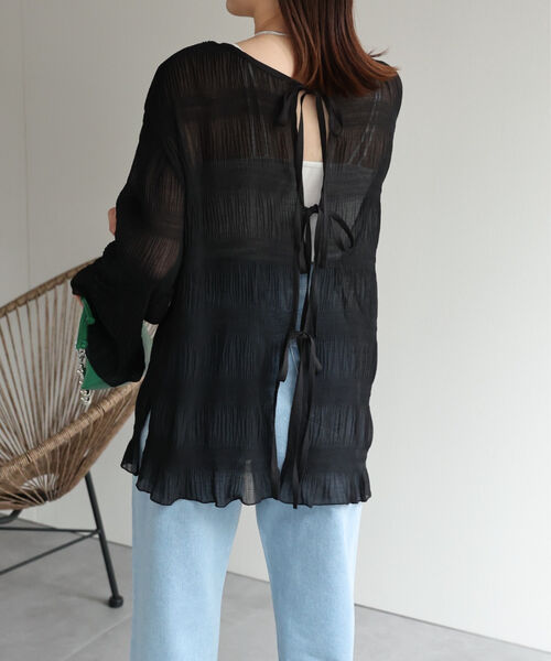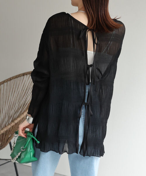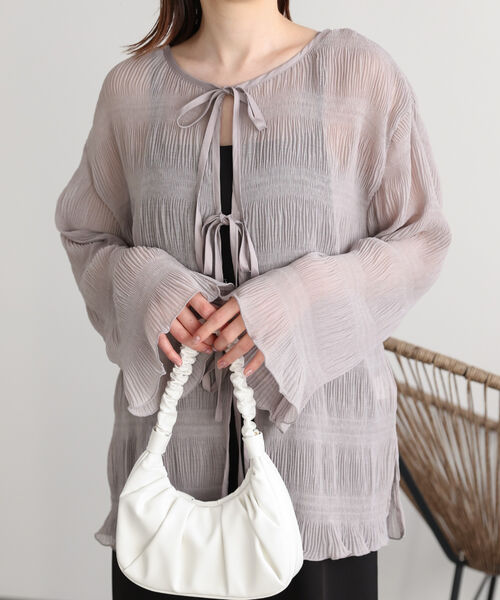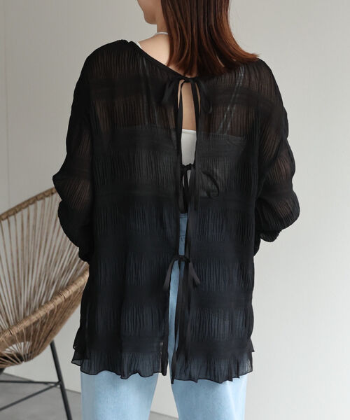 【前後2WAY】 シアーブラウス/ シャーリング / リボン / バレエコア