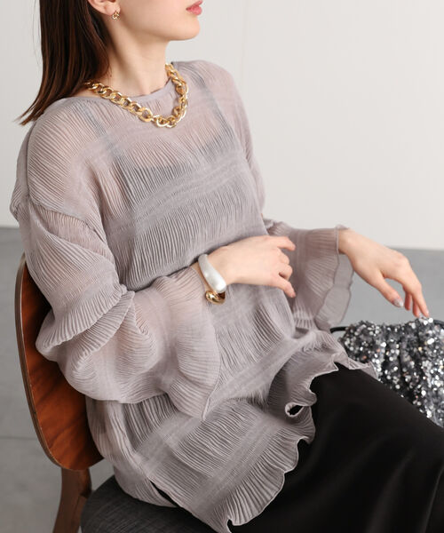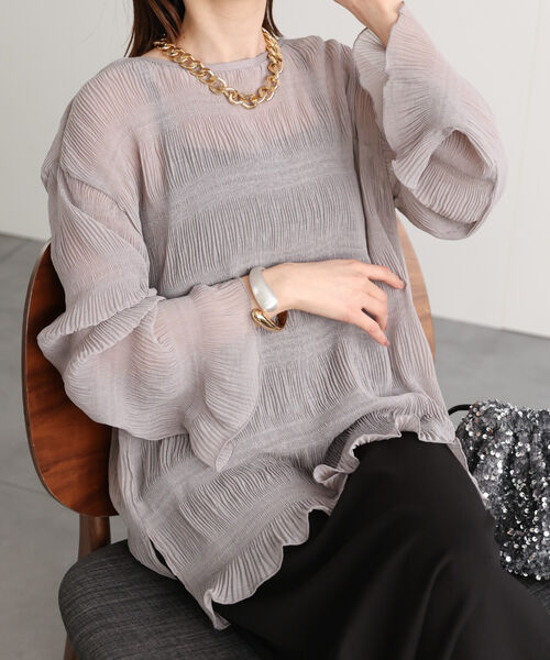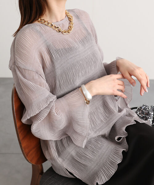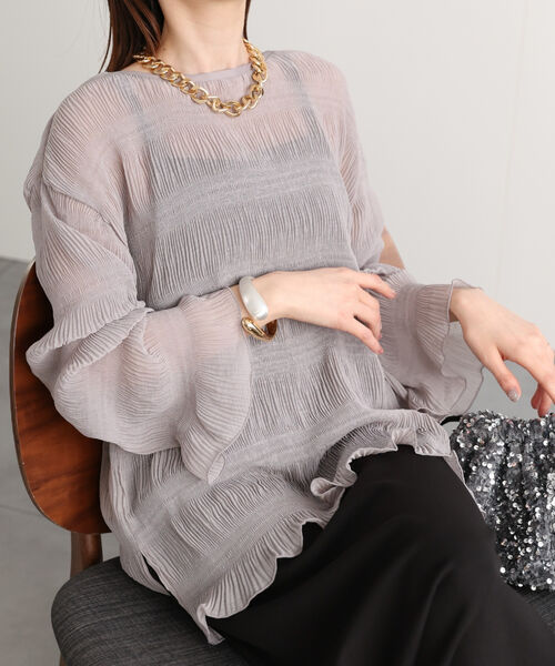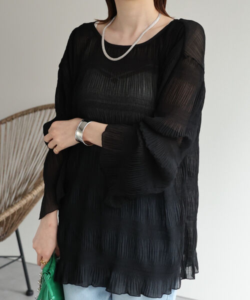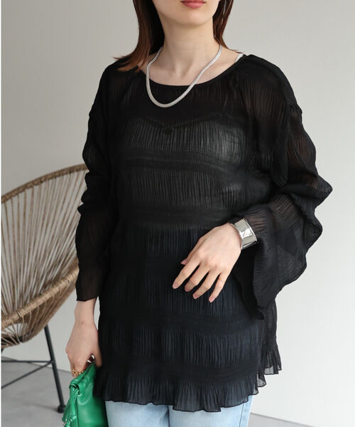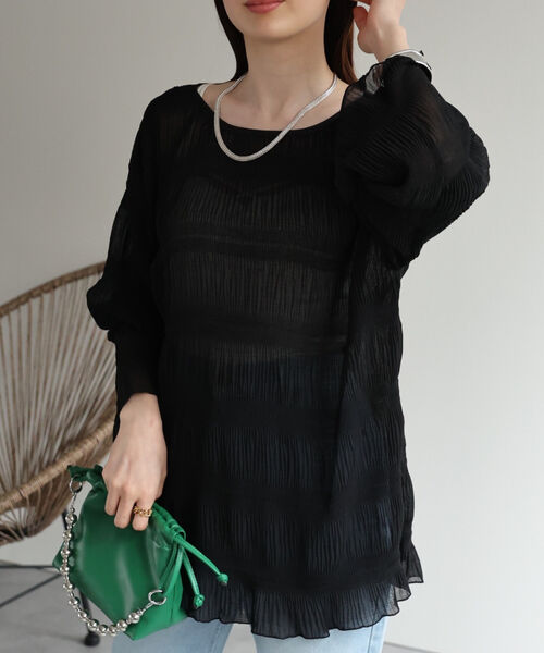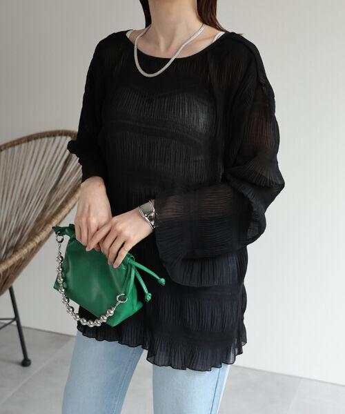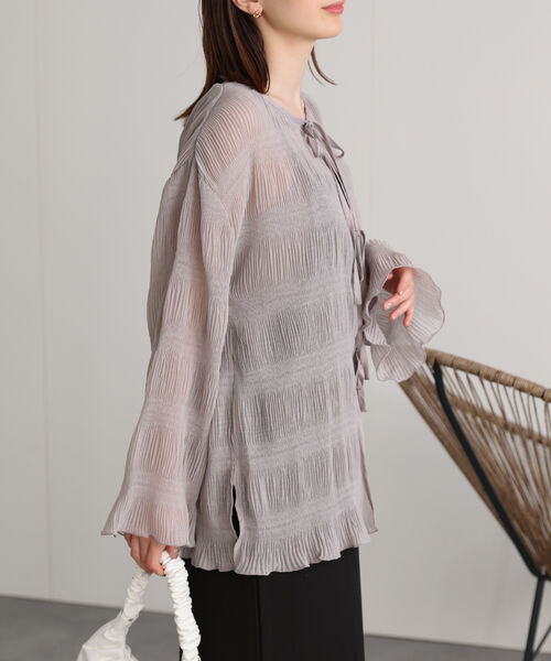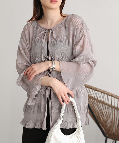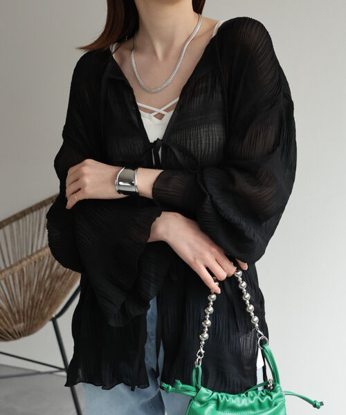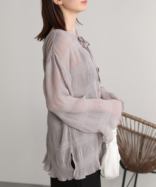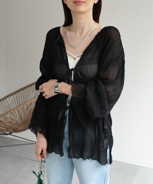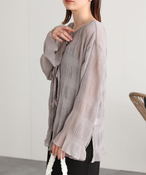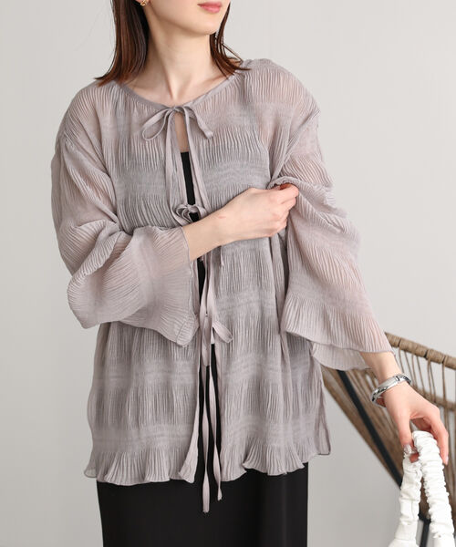 【前後2WAY】 シアーブラウス/ シャーリング / リボン / バレエコア