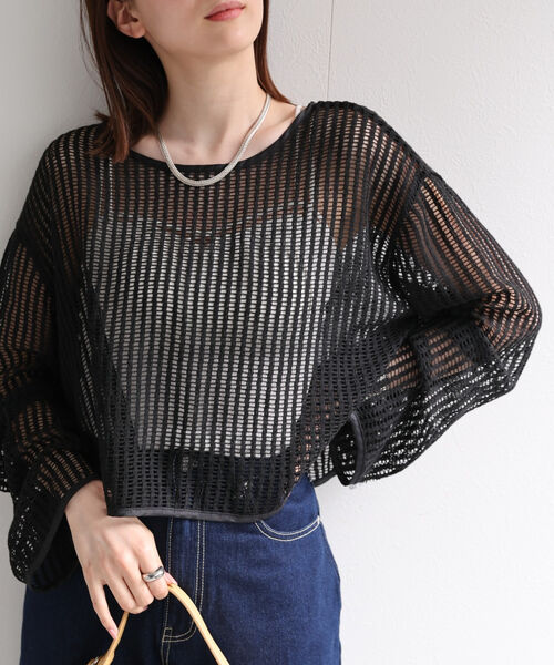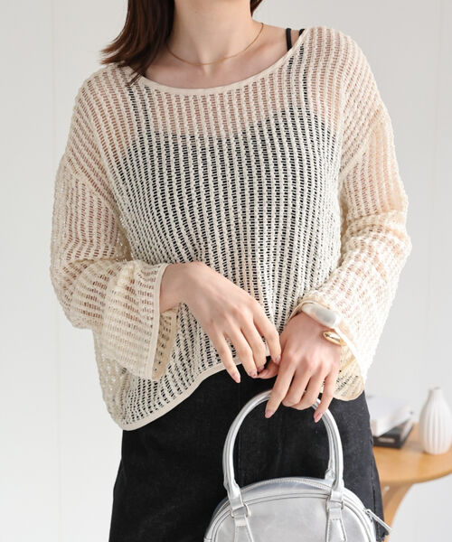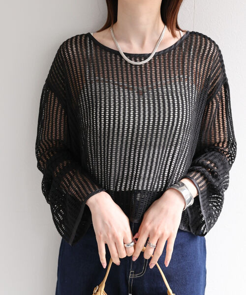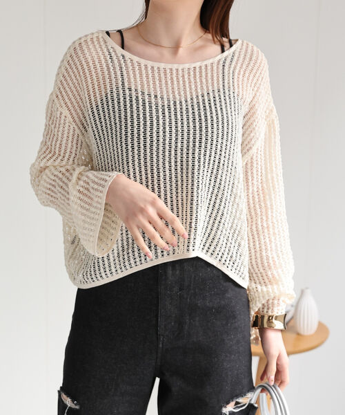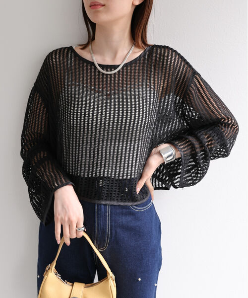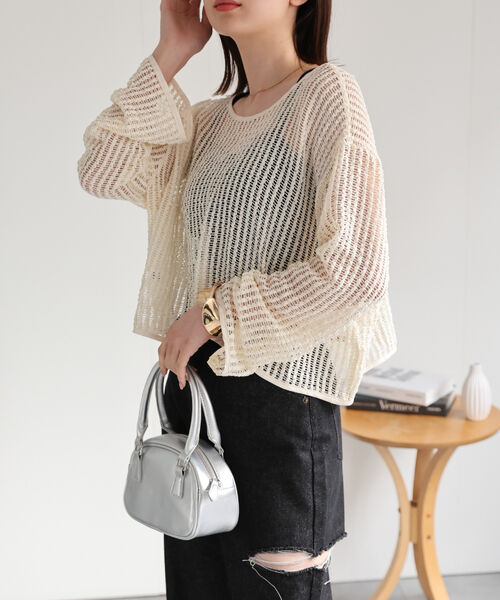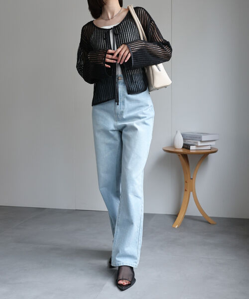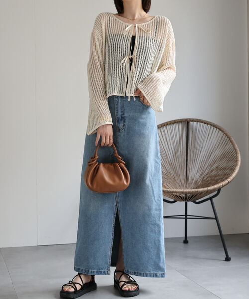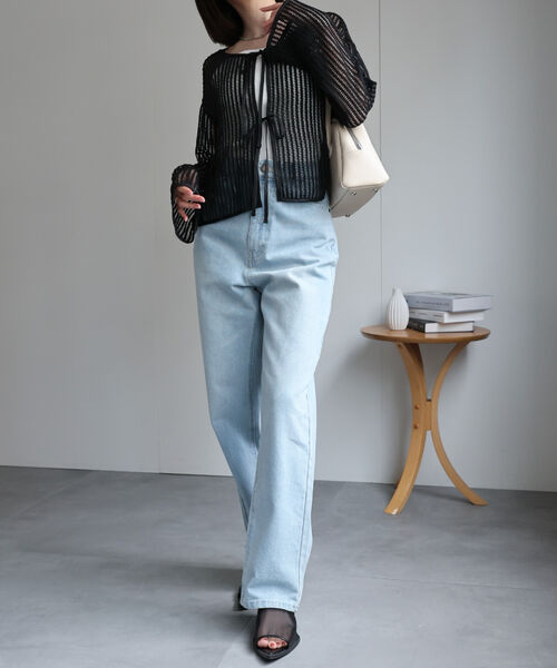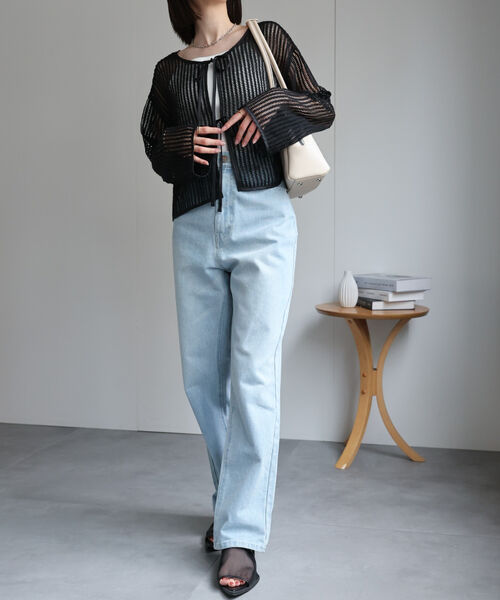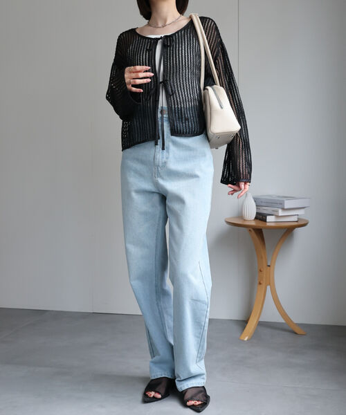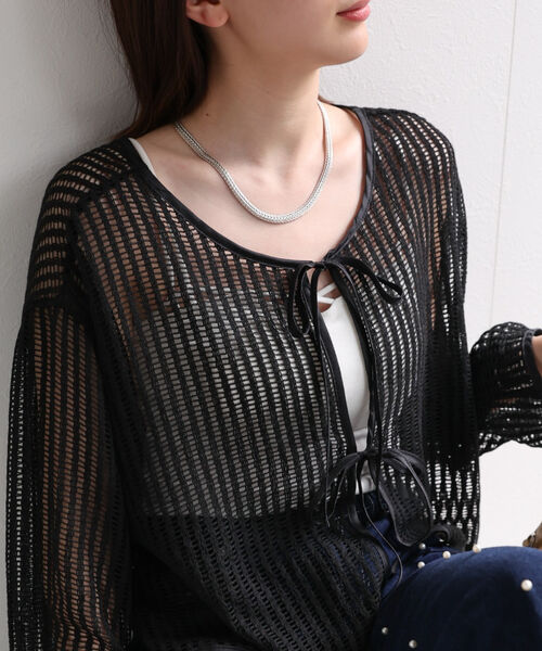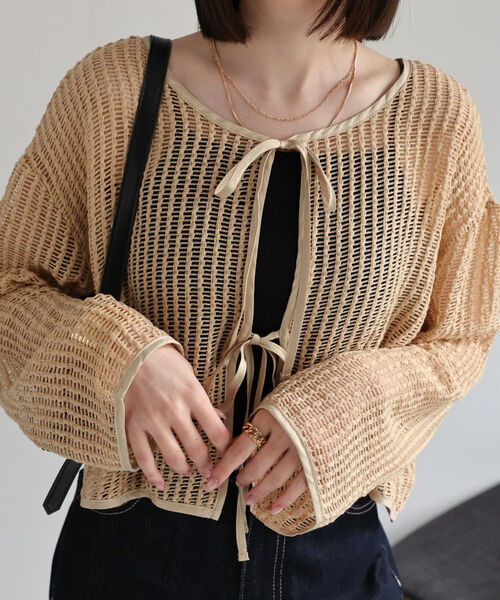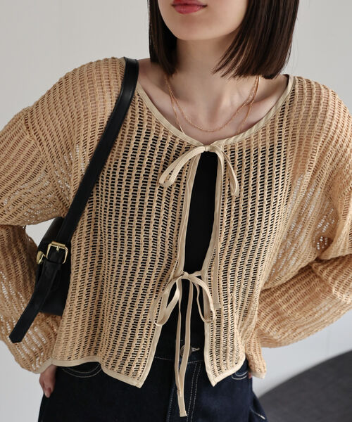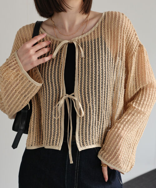 【前後2WAY】透かし/メッシュレース リボン付き ショートカーディガン