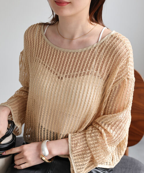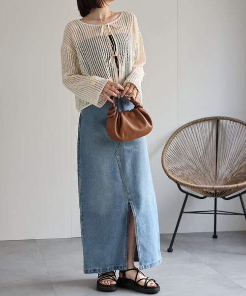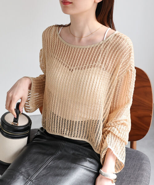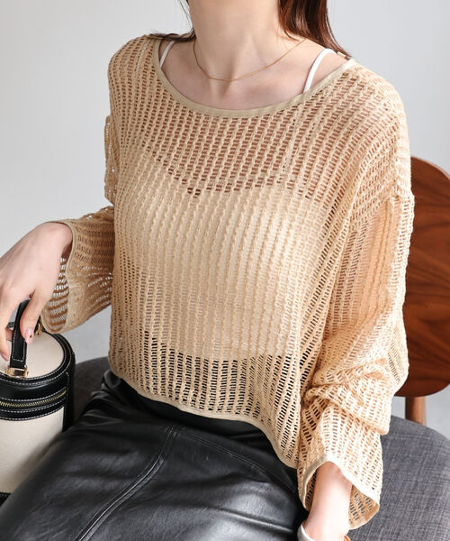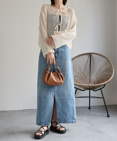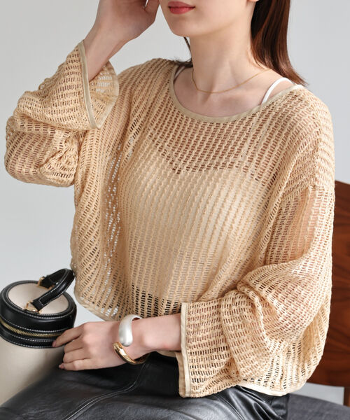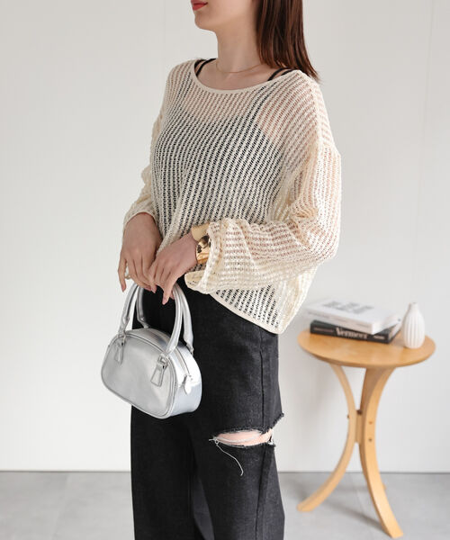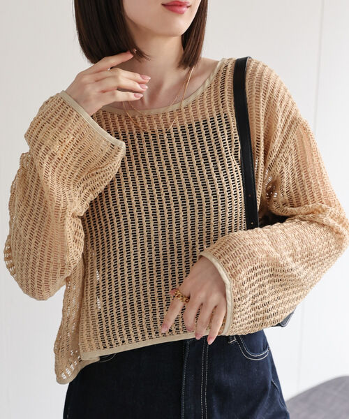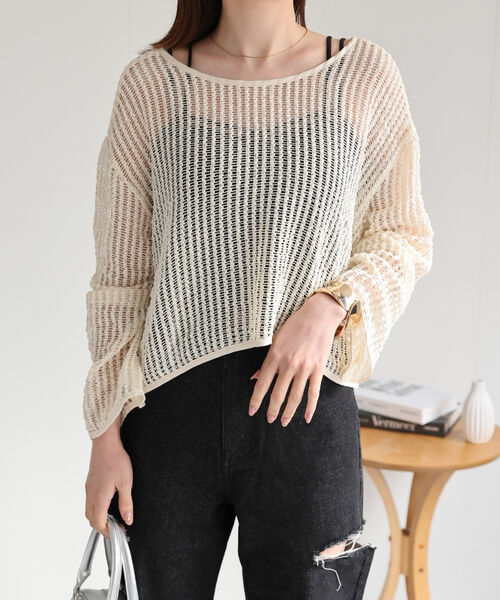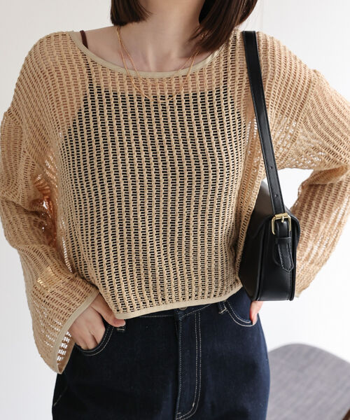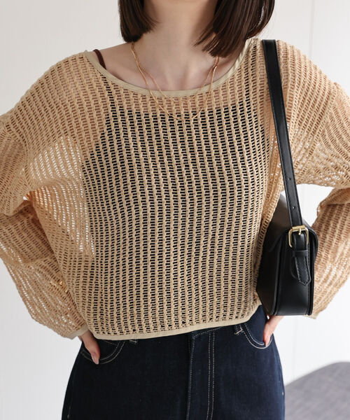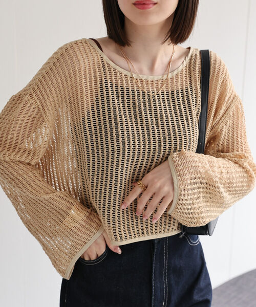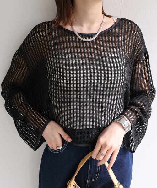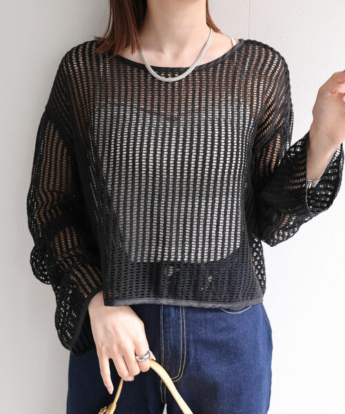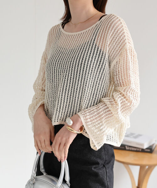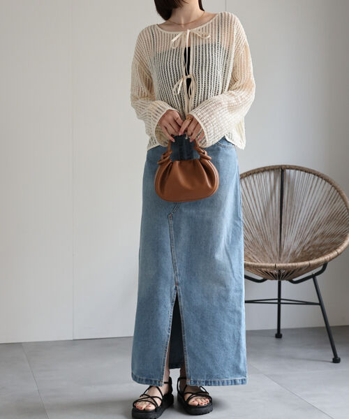 【前後2WAY】透かし/メッシュレース リボン付き ショートカーディガン