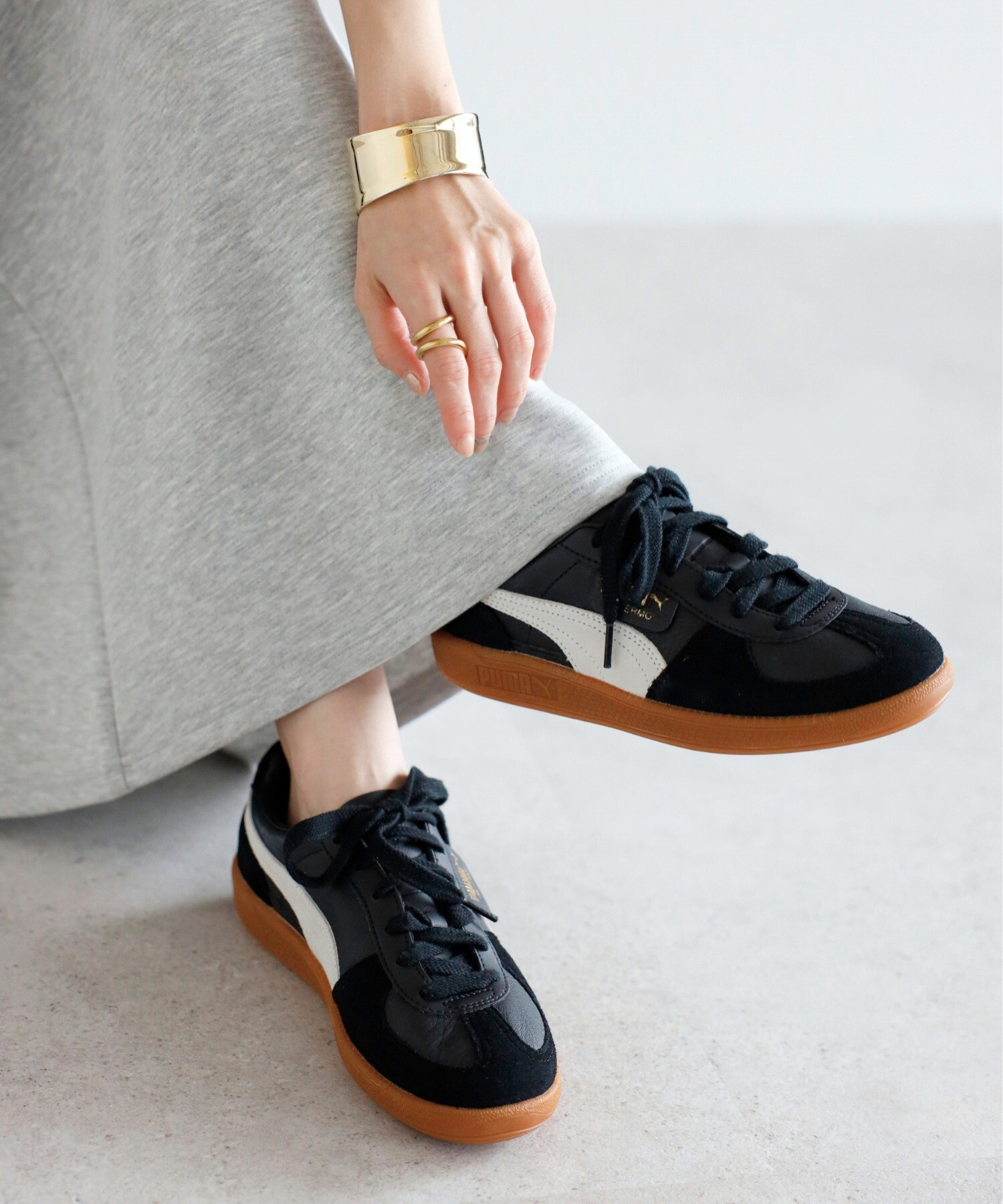 ブラックを基調にした配色で足元を引き締め、すっきりとした印象に導きます。