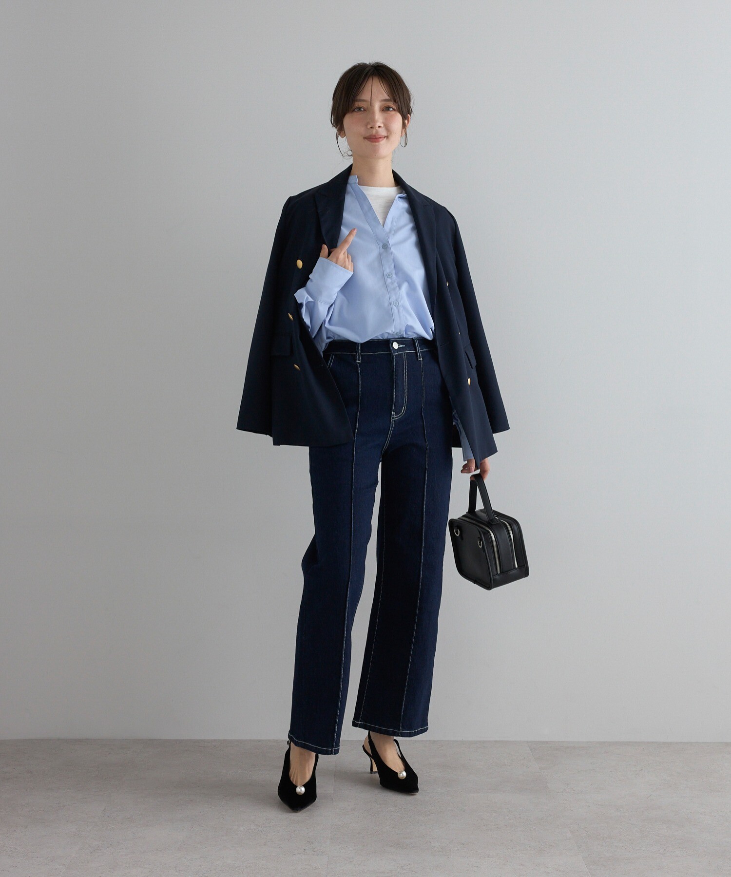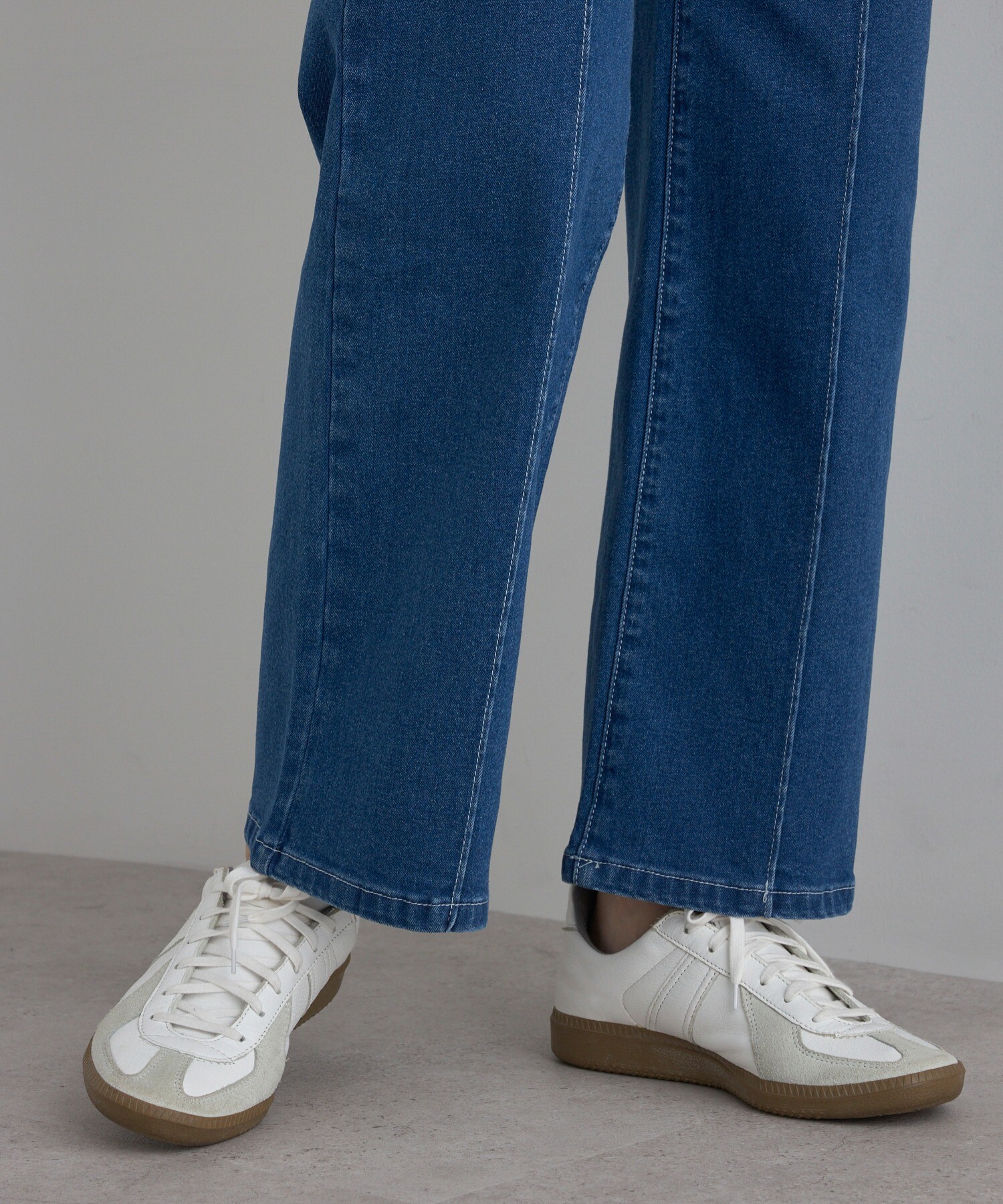 ラフな日も、脚はきれいに見せたい。 スウェット合わせでも、デニムのセンターシームが縦ラインを作り、骨格ストレートが苦手なラフ感・カジュアルを上品に整えます。もっと商品をみる