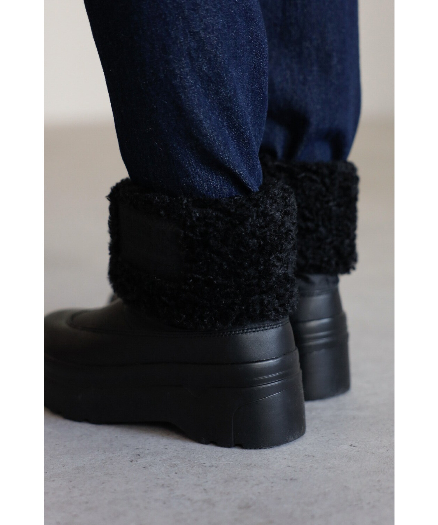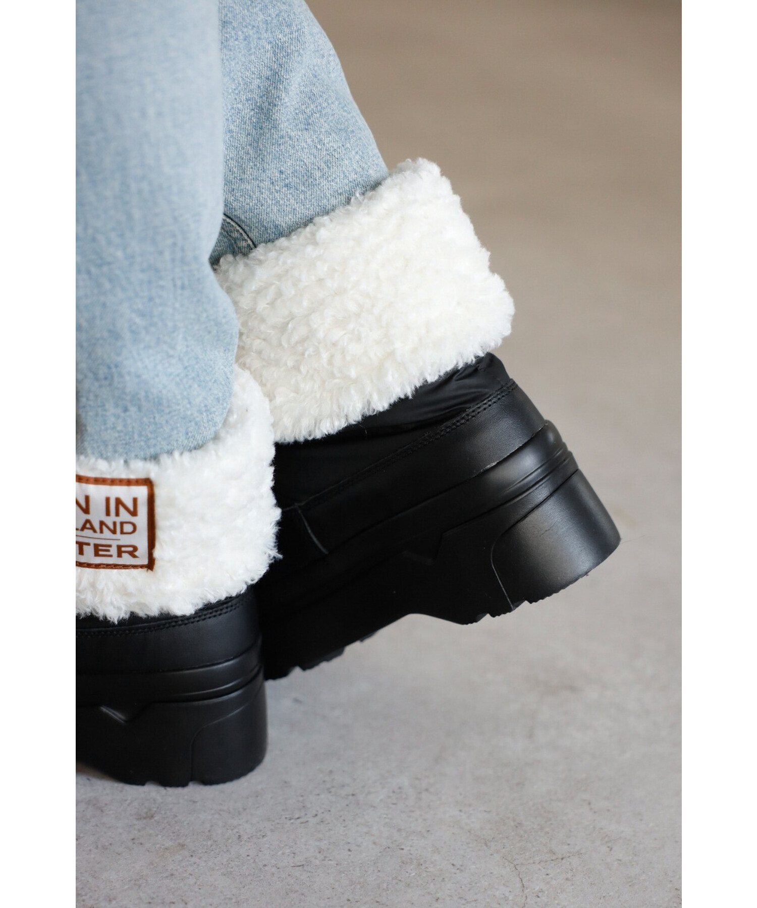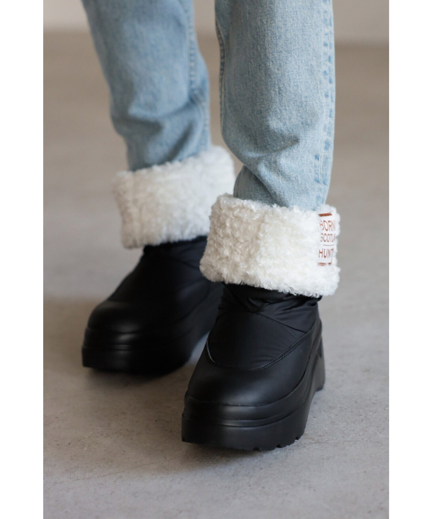 履き口にふんわりとしたブークレ素材をあしらい、シーズンらしい表情をプラス。