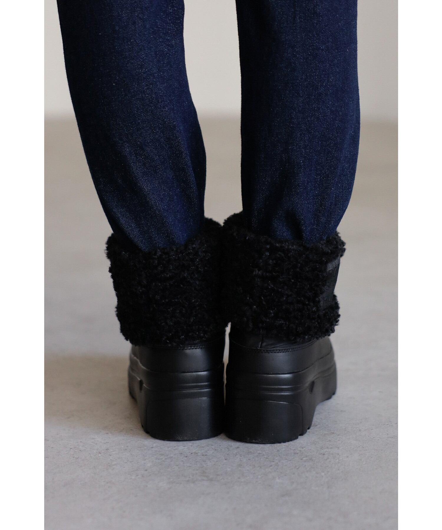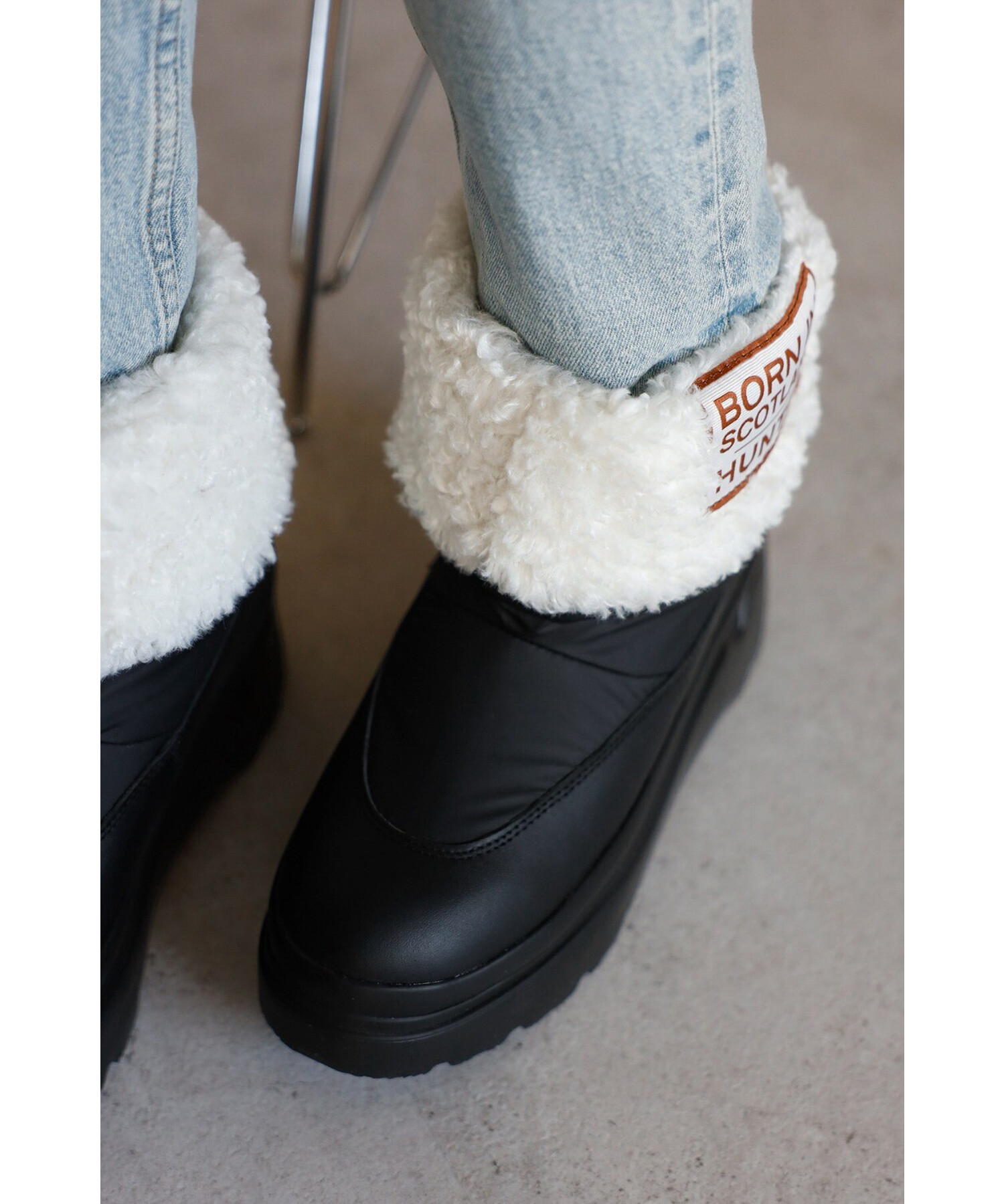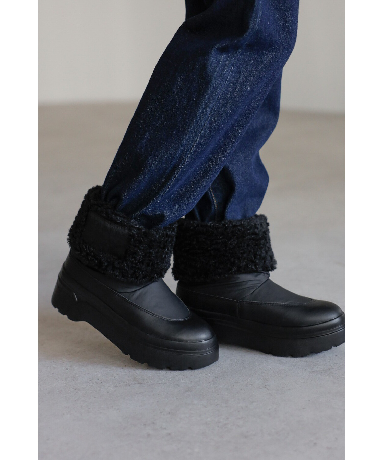 履き口にふんわりとしたブークレ素材をあしらい、シーズンらしい表情をプラス。