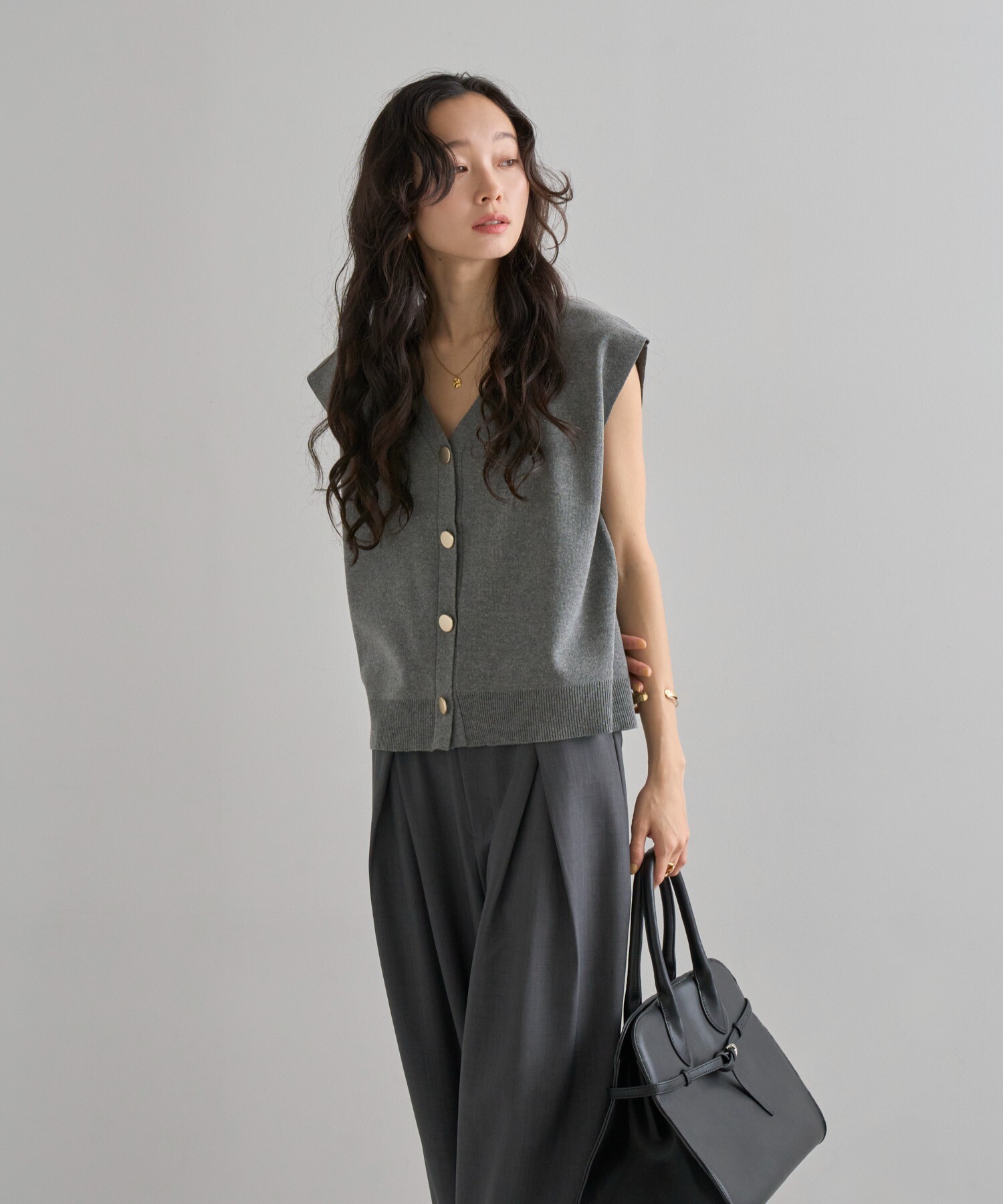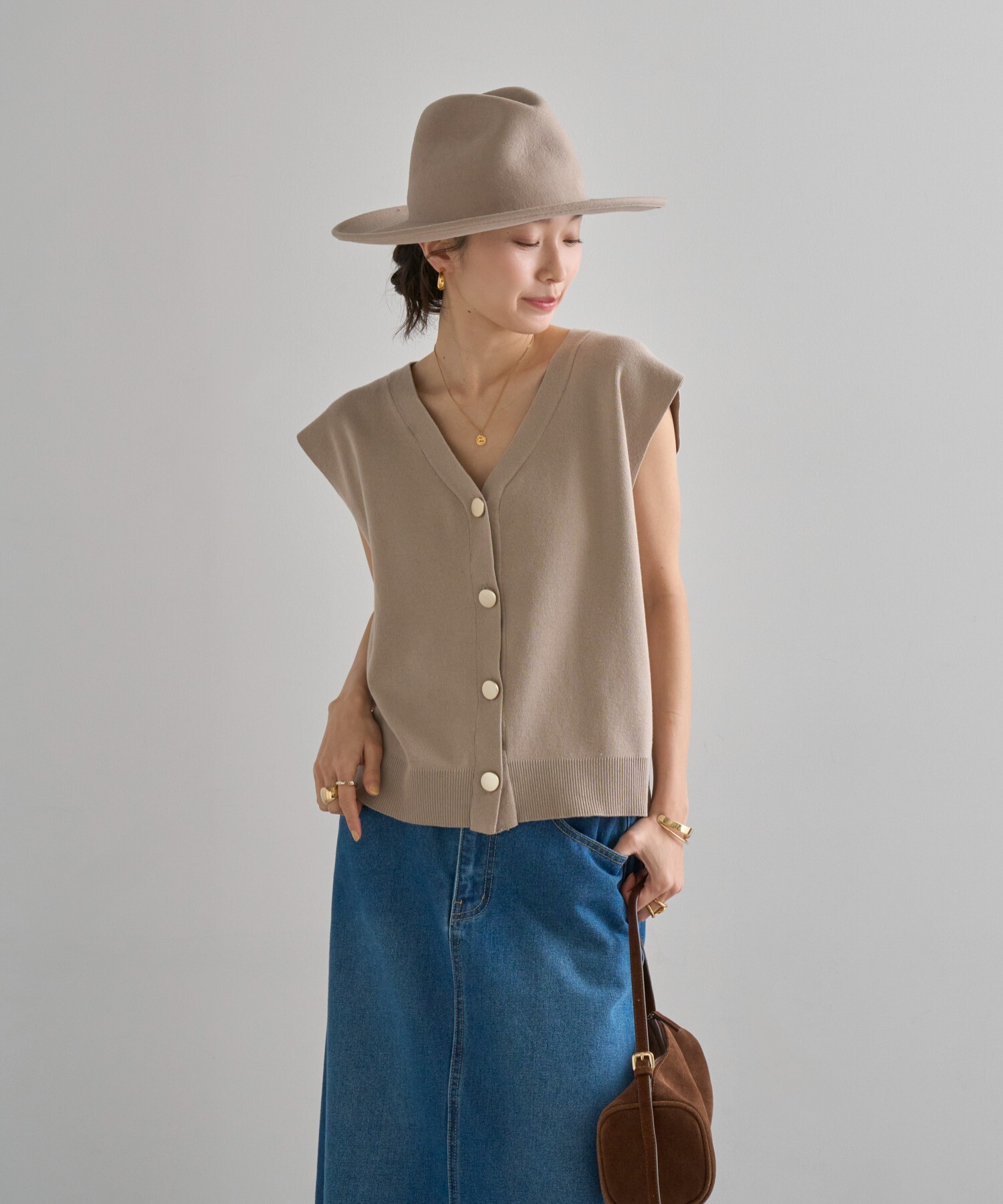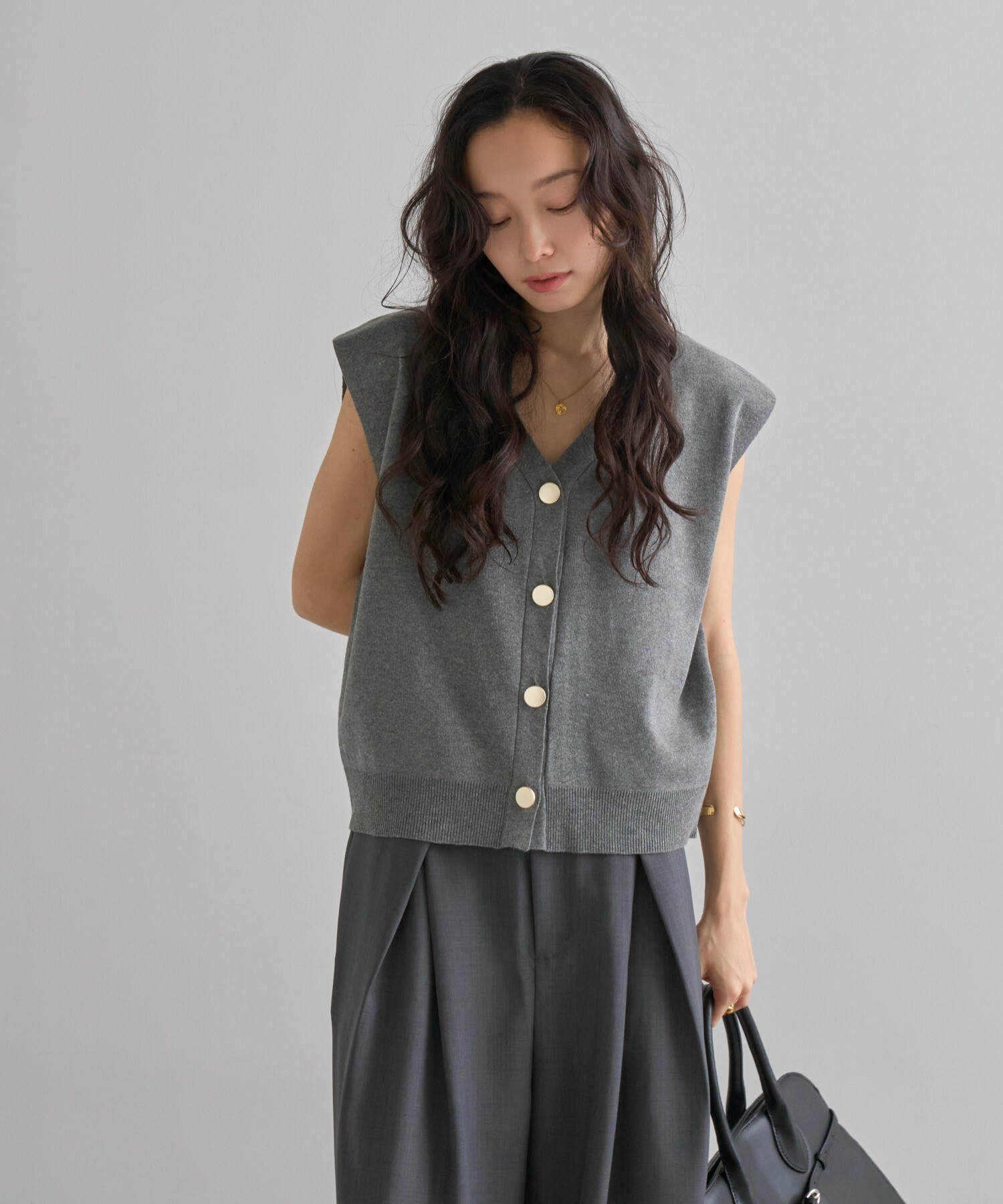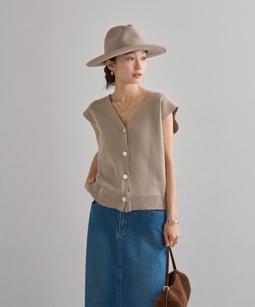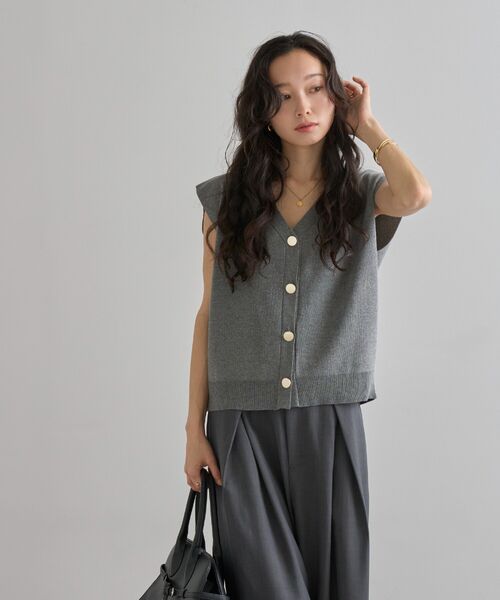 絶妙なサイジングのボクシーシルエットで体型カバーが叶うニットベスト。