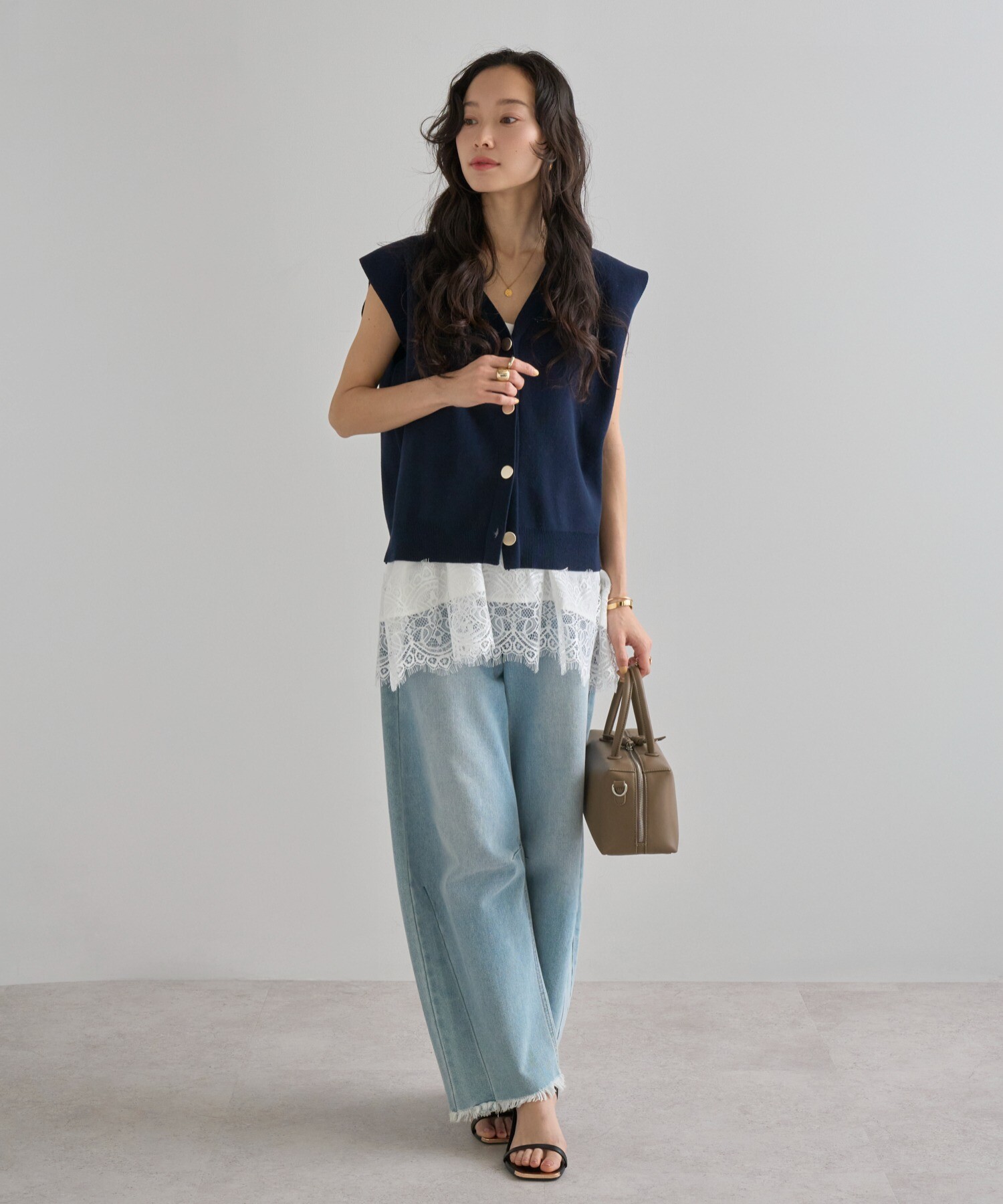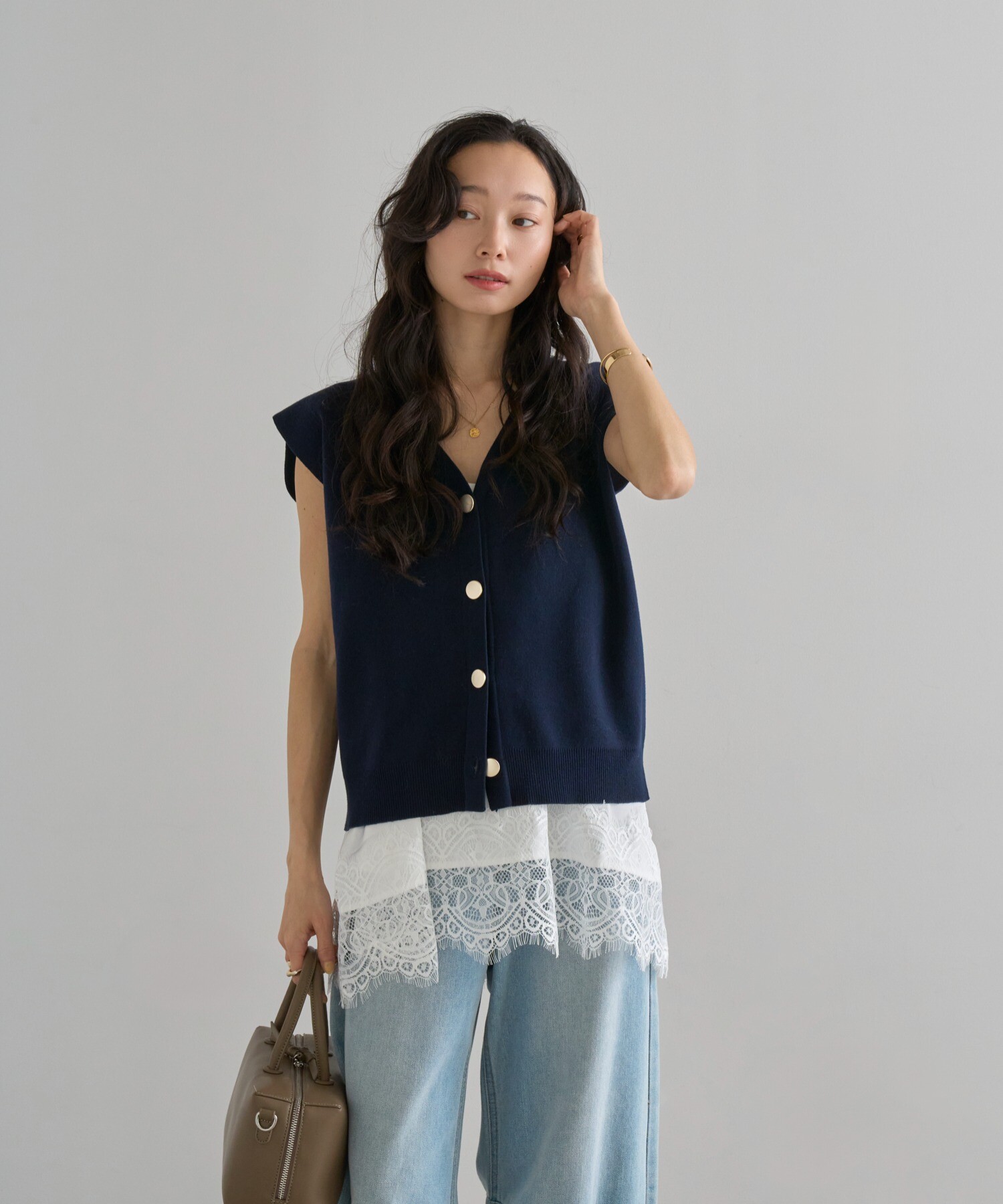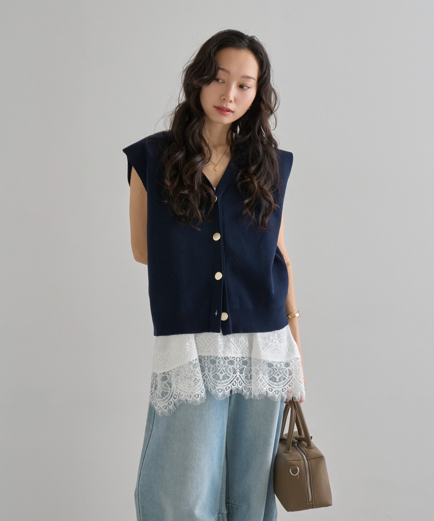絶妙なサイジングのボクシーシルエットで体型カバーが叶うニットベスト。