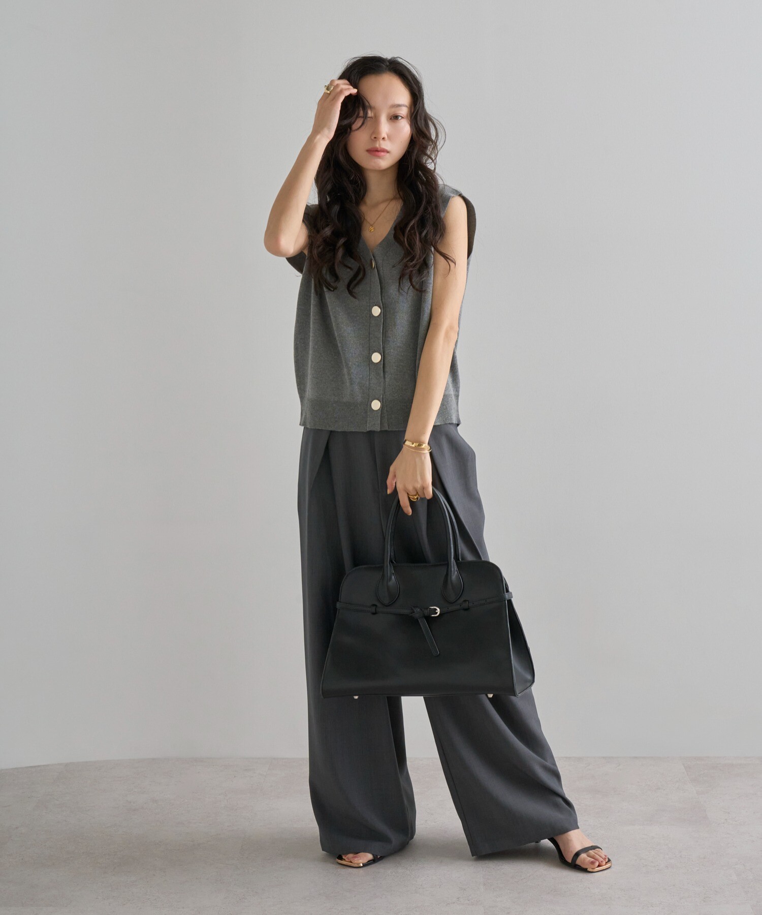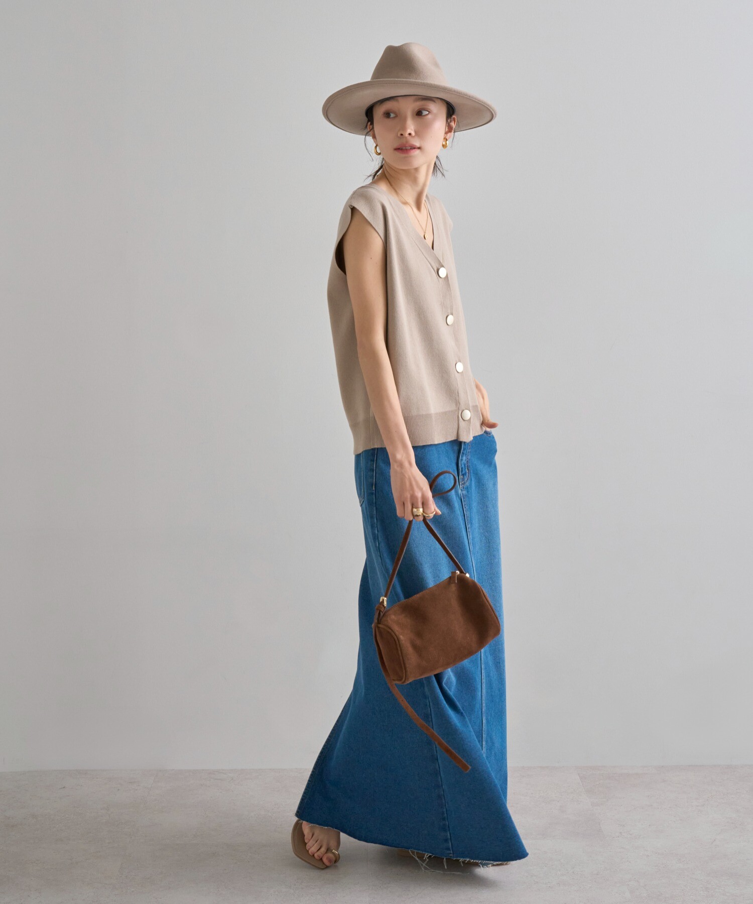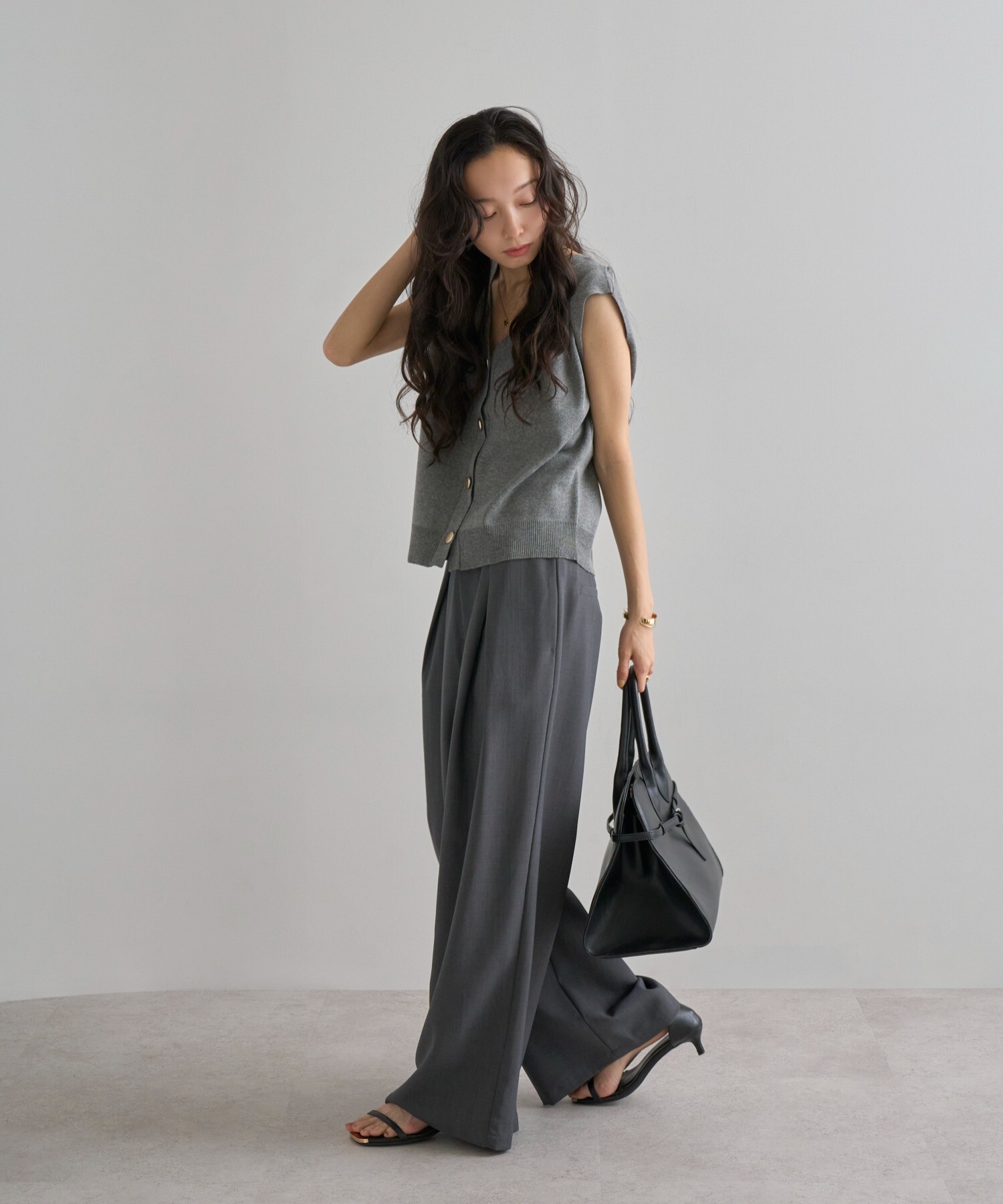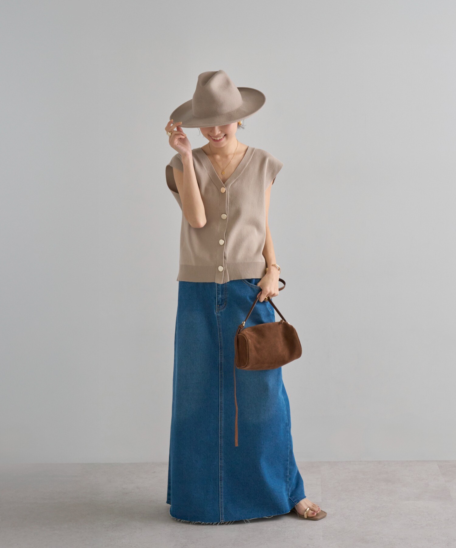 絶妙なサイジングのボクシーシルエットで体型カバーが叶うニットベスト。