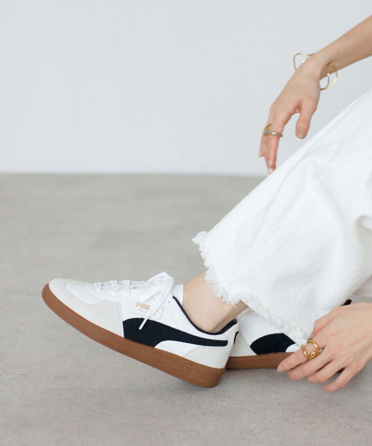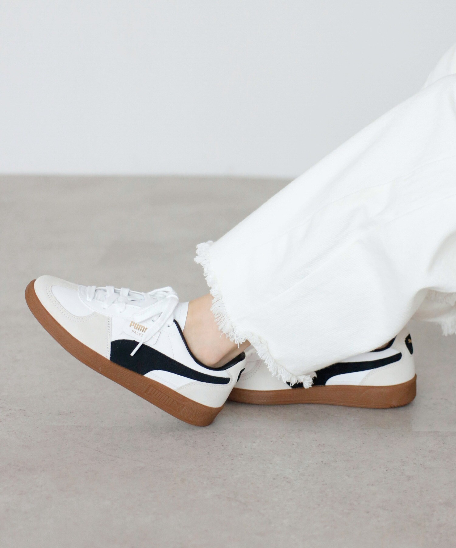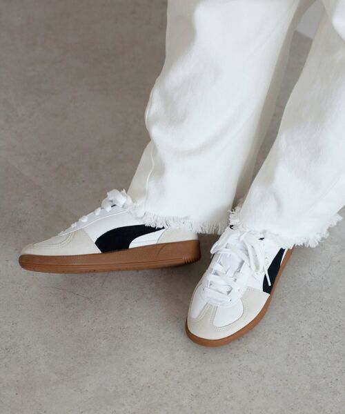 ホワイトレザー×ブラックスエードの配色が映える、上品なローカットスニーカー。