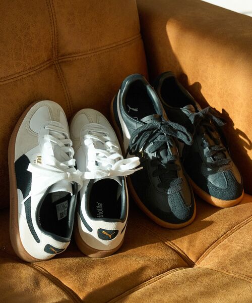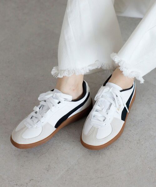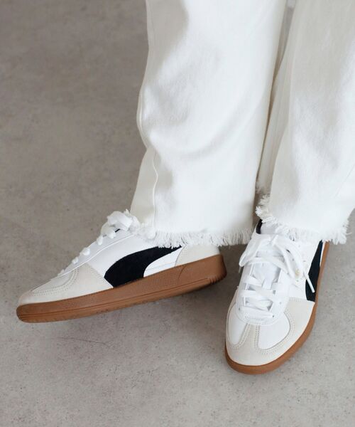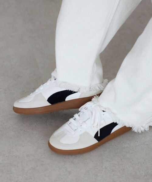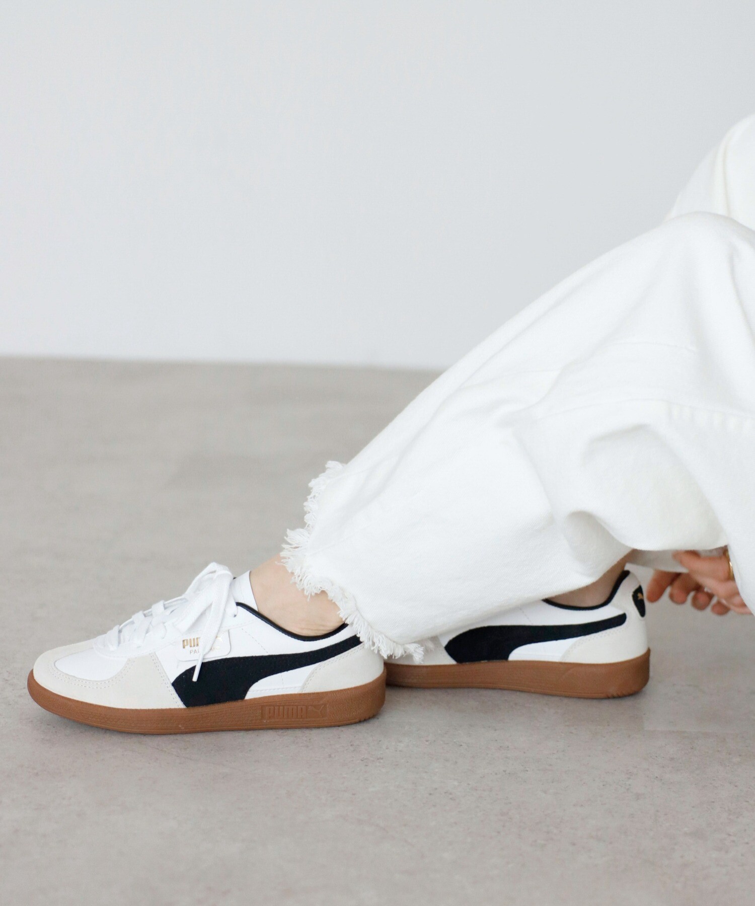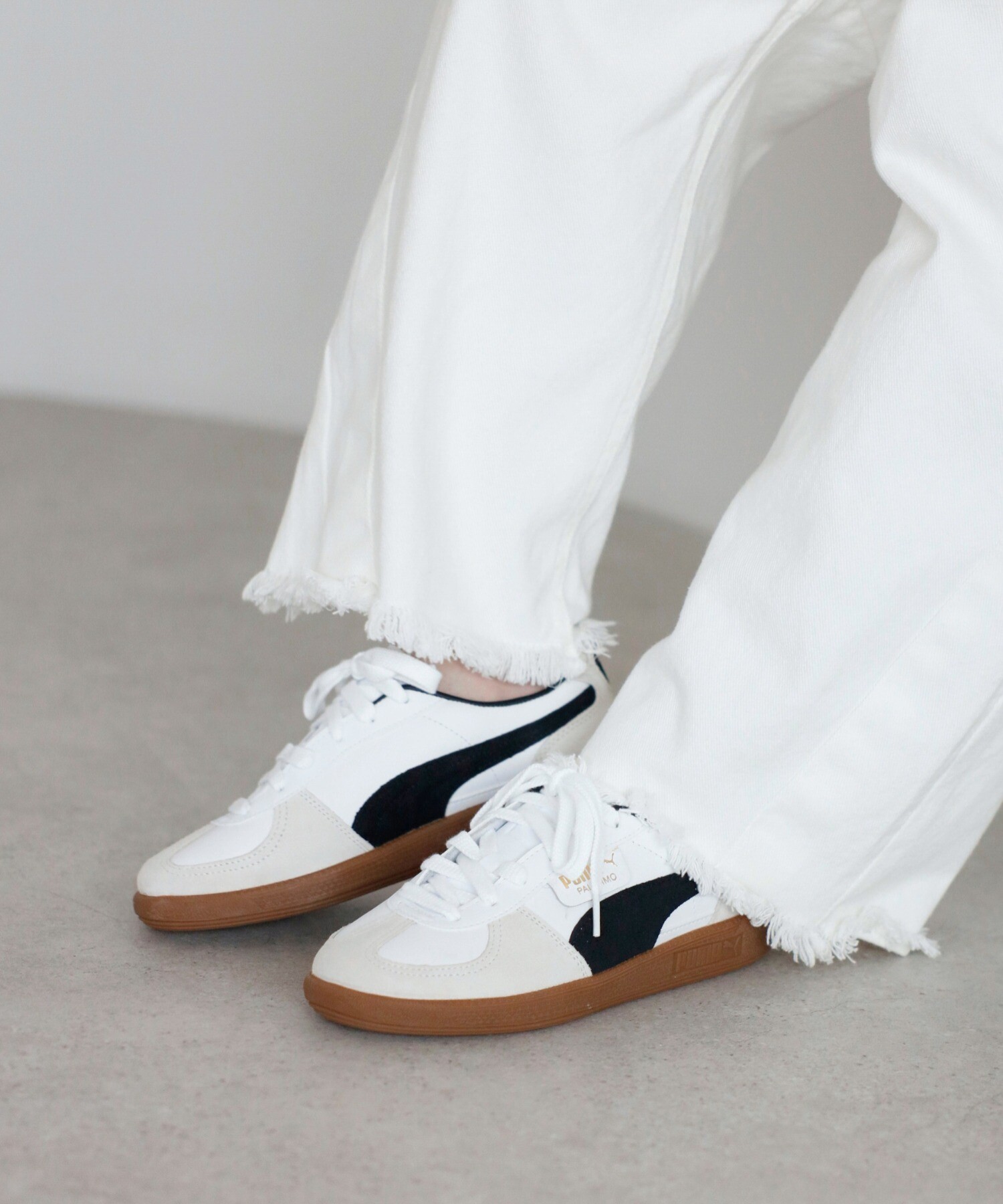 ホワイトレザー×ブラックスエードの配色が映える、上品なローカットスニーカー。