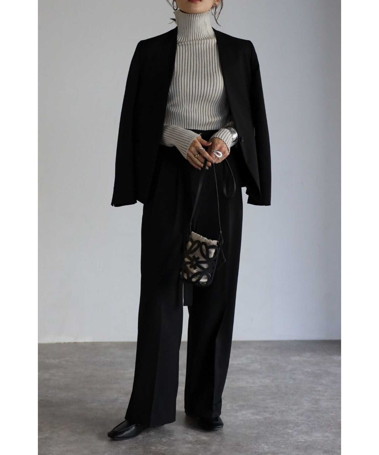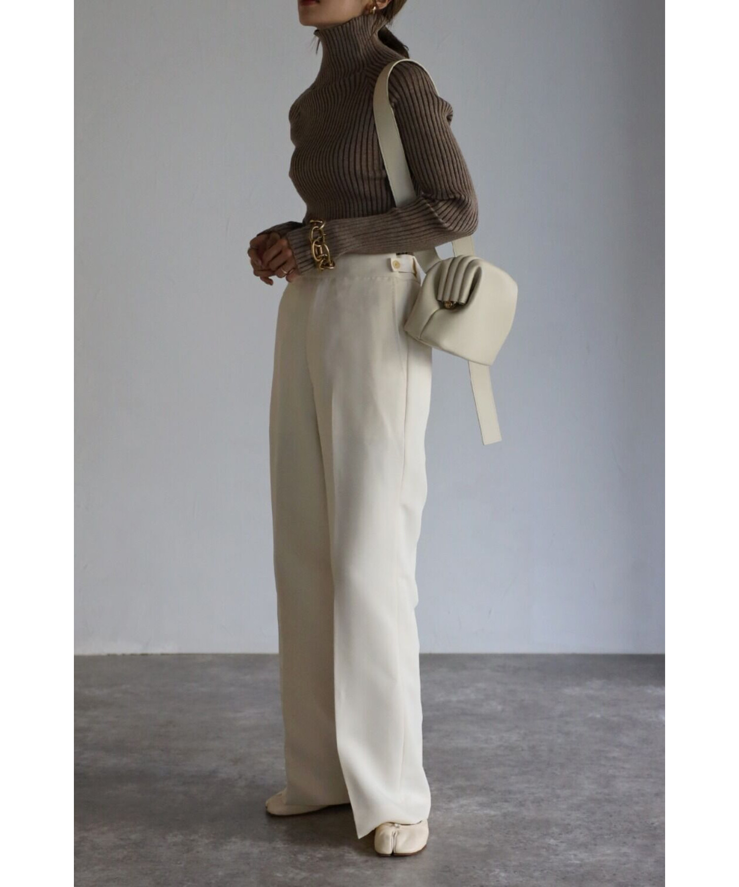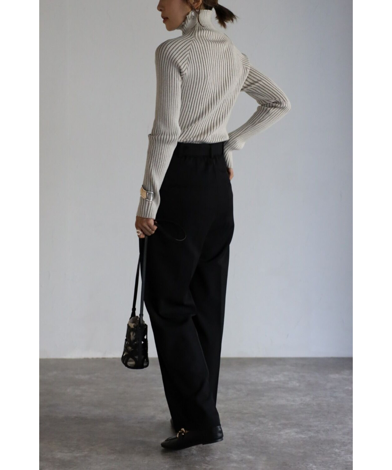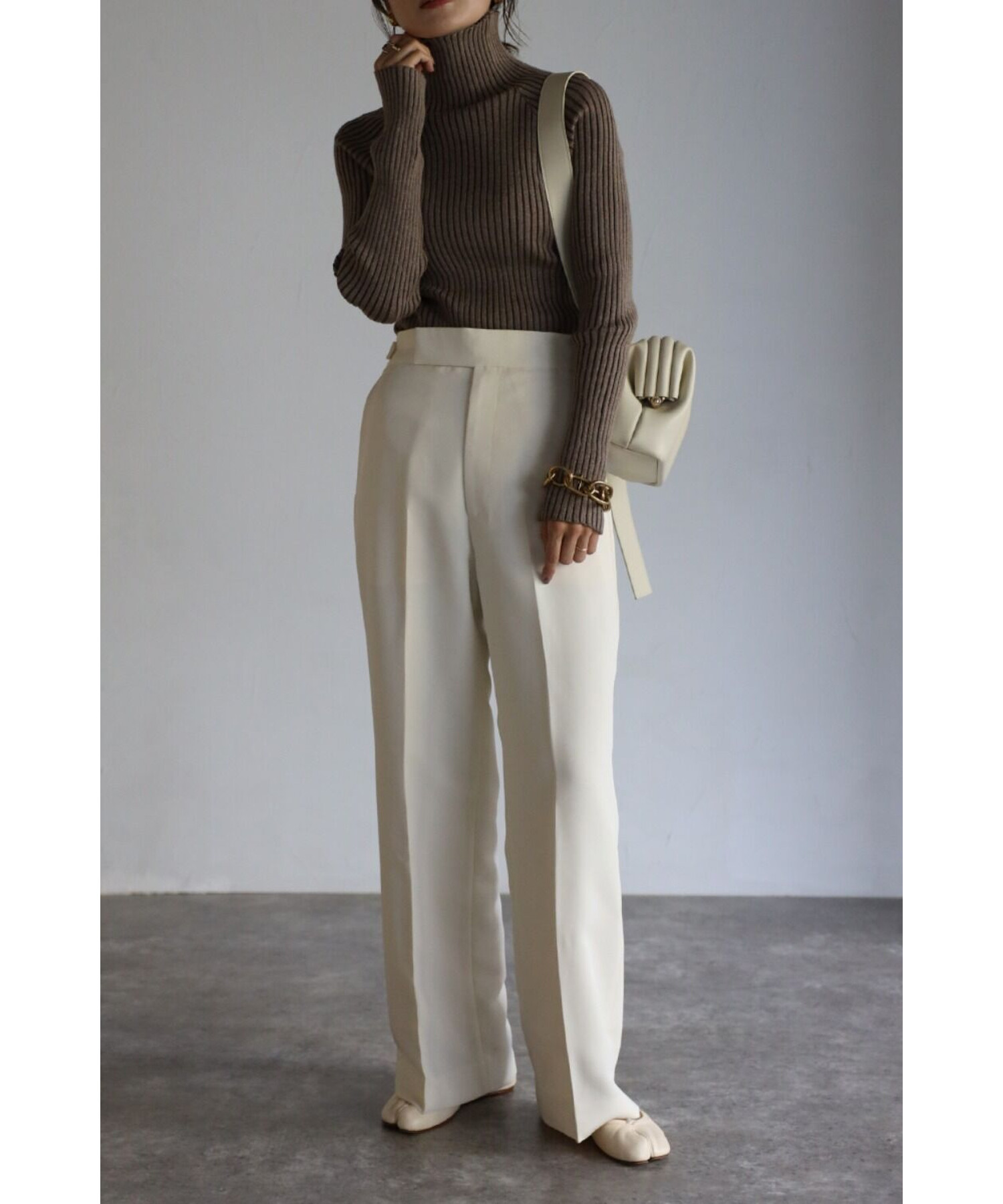 スラックスなどタックパンツと合わせることで、ウエスト周りもすっきりとした印象に。