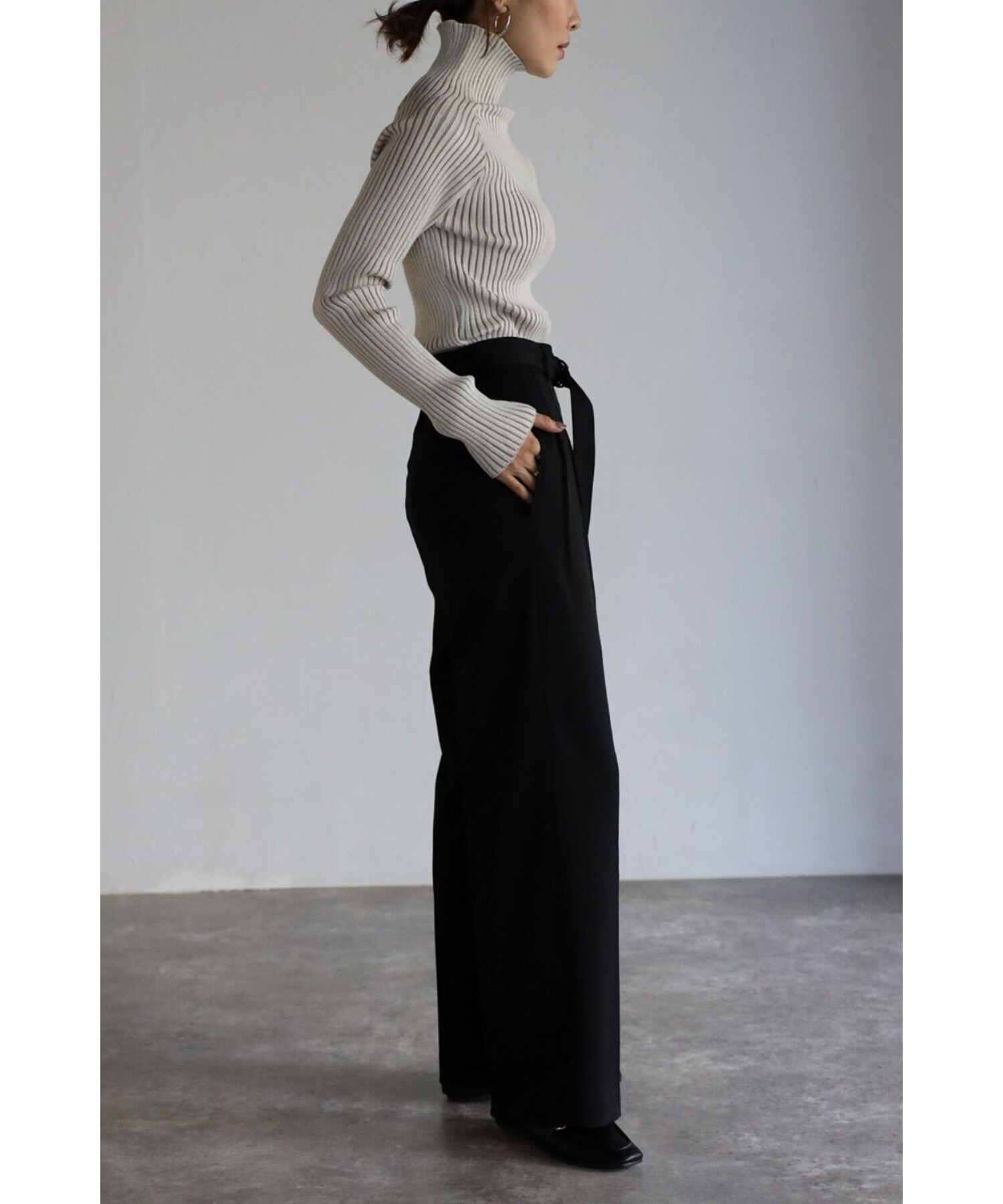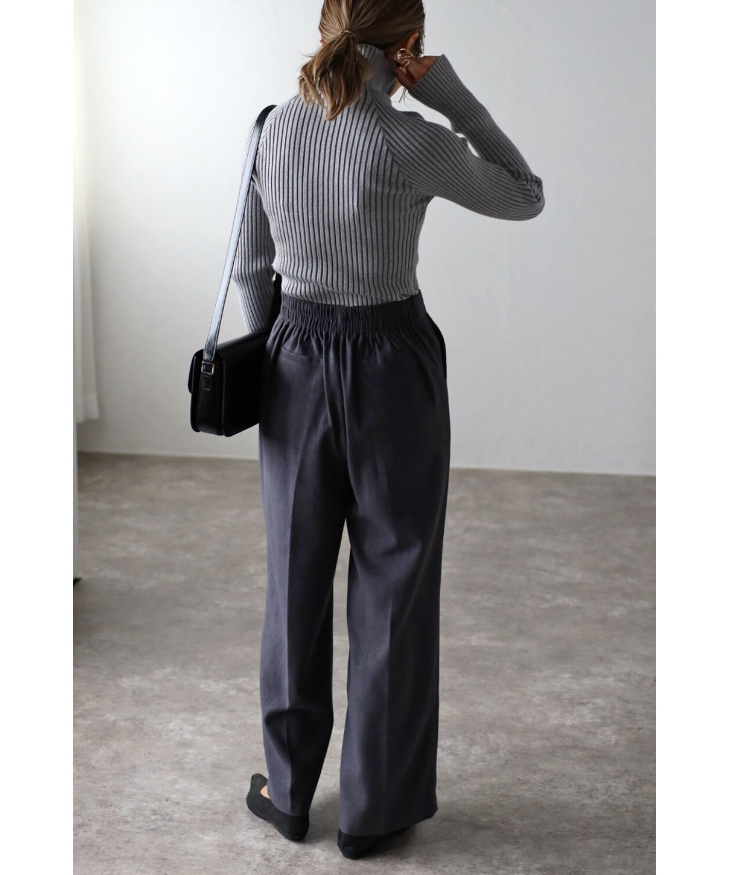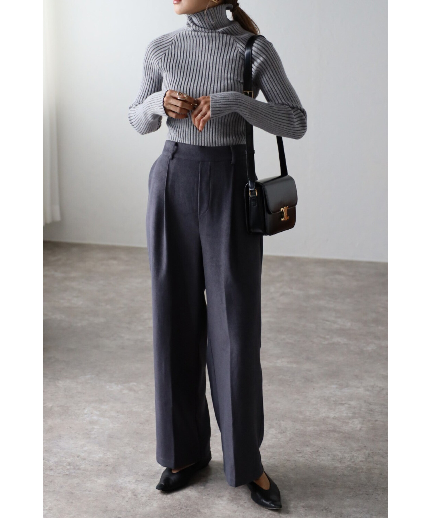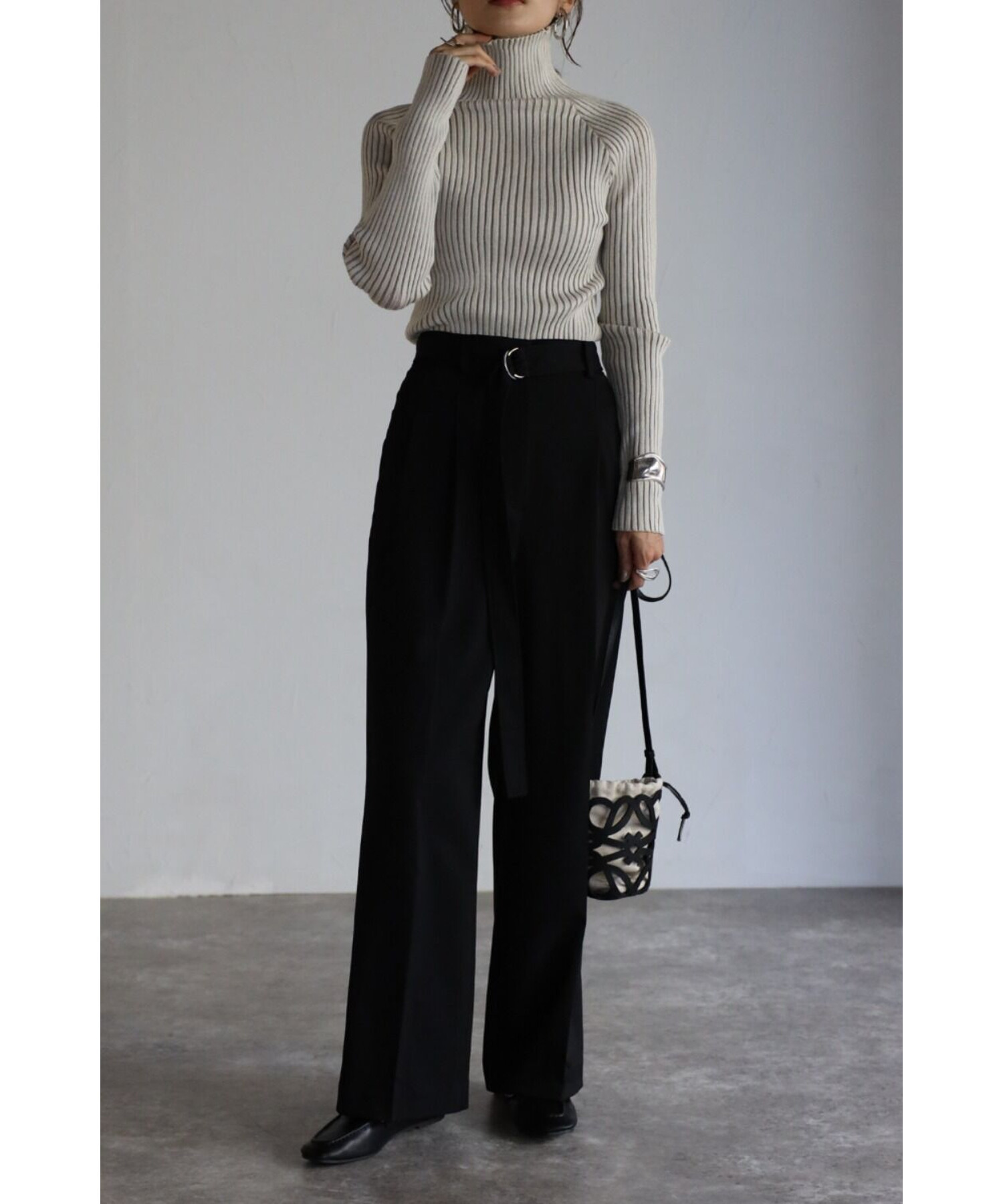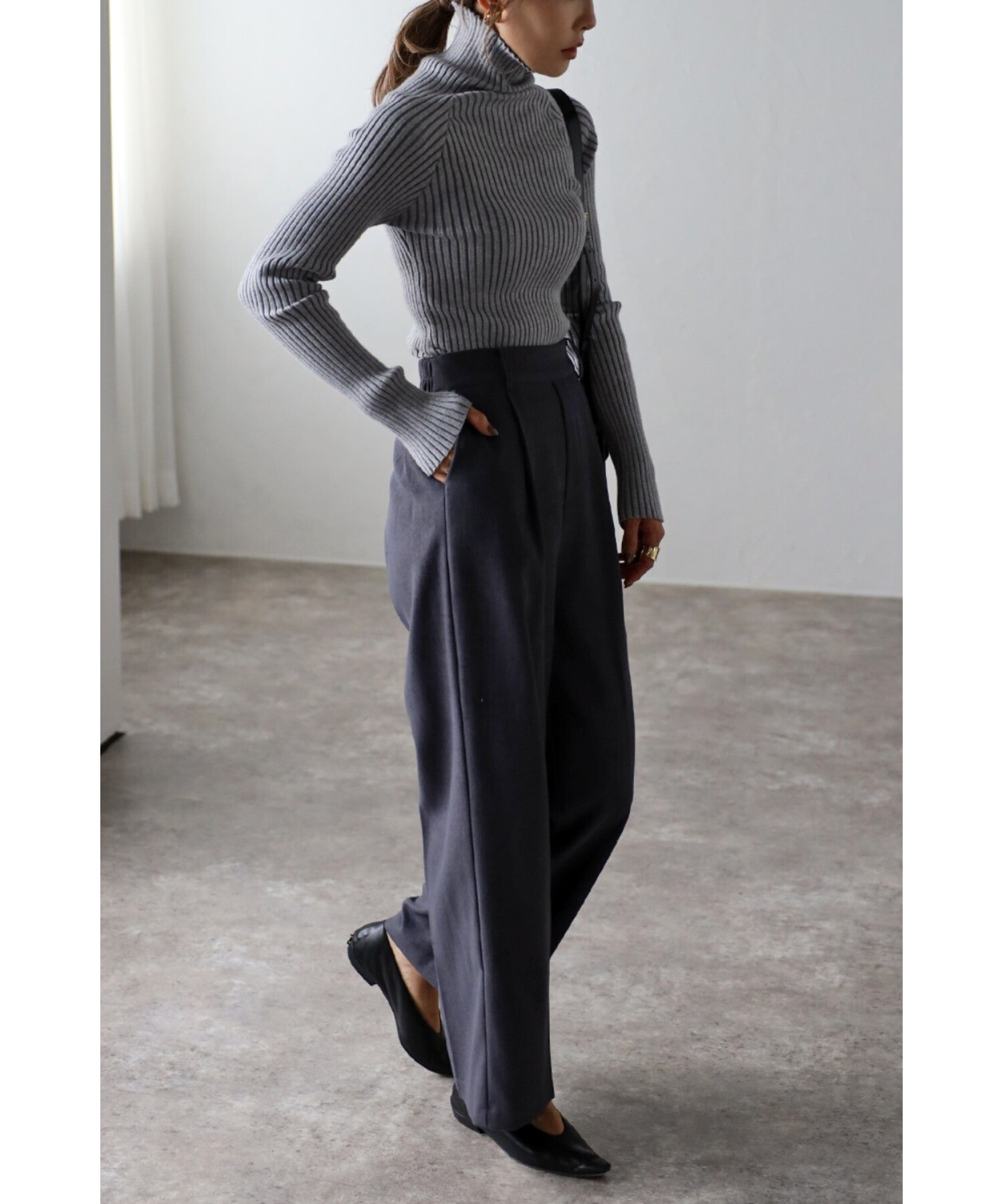 スラックスなどタックパンツと合わせることで、ウエスト周りもすっきりとした印象に。
