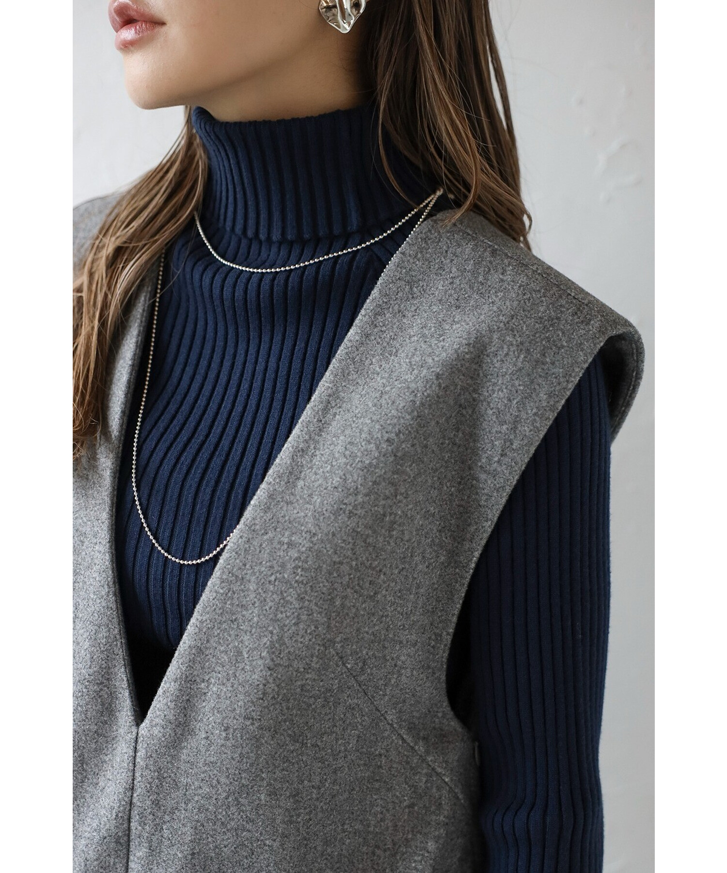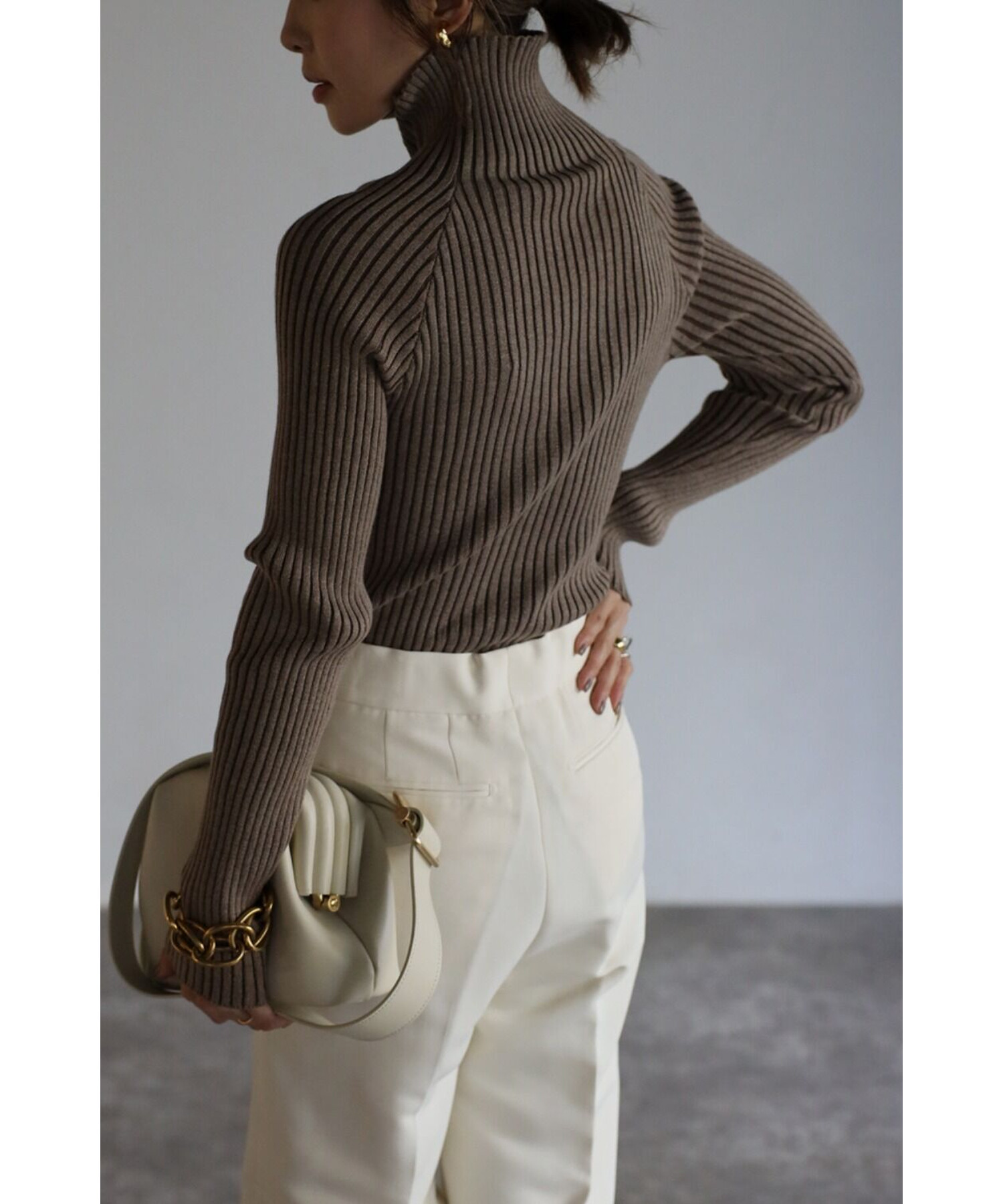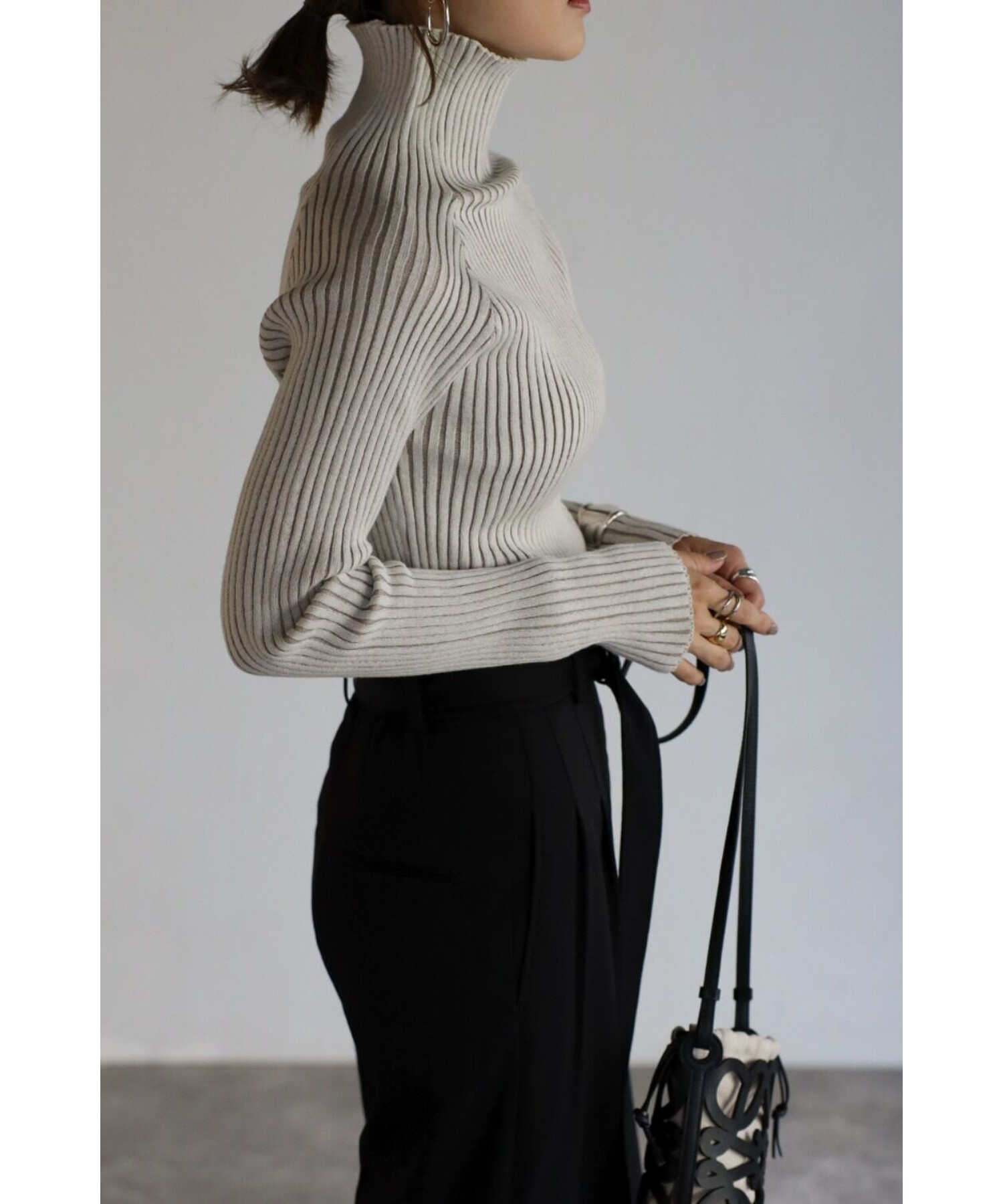 ハイネックデザインなので、ノーカラーのアウターとも相性抜群です。