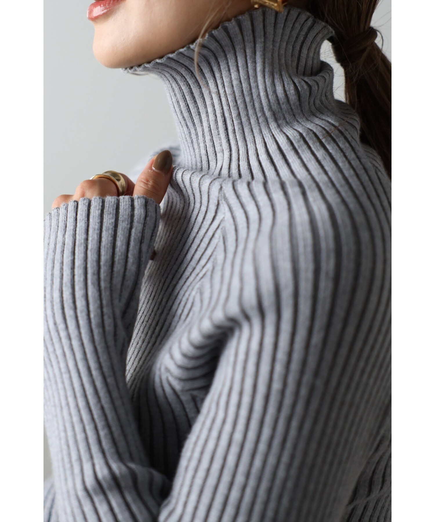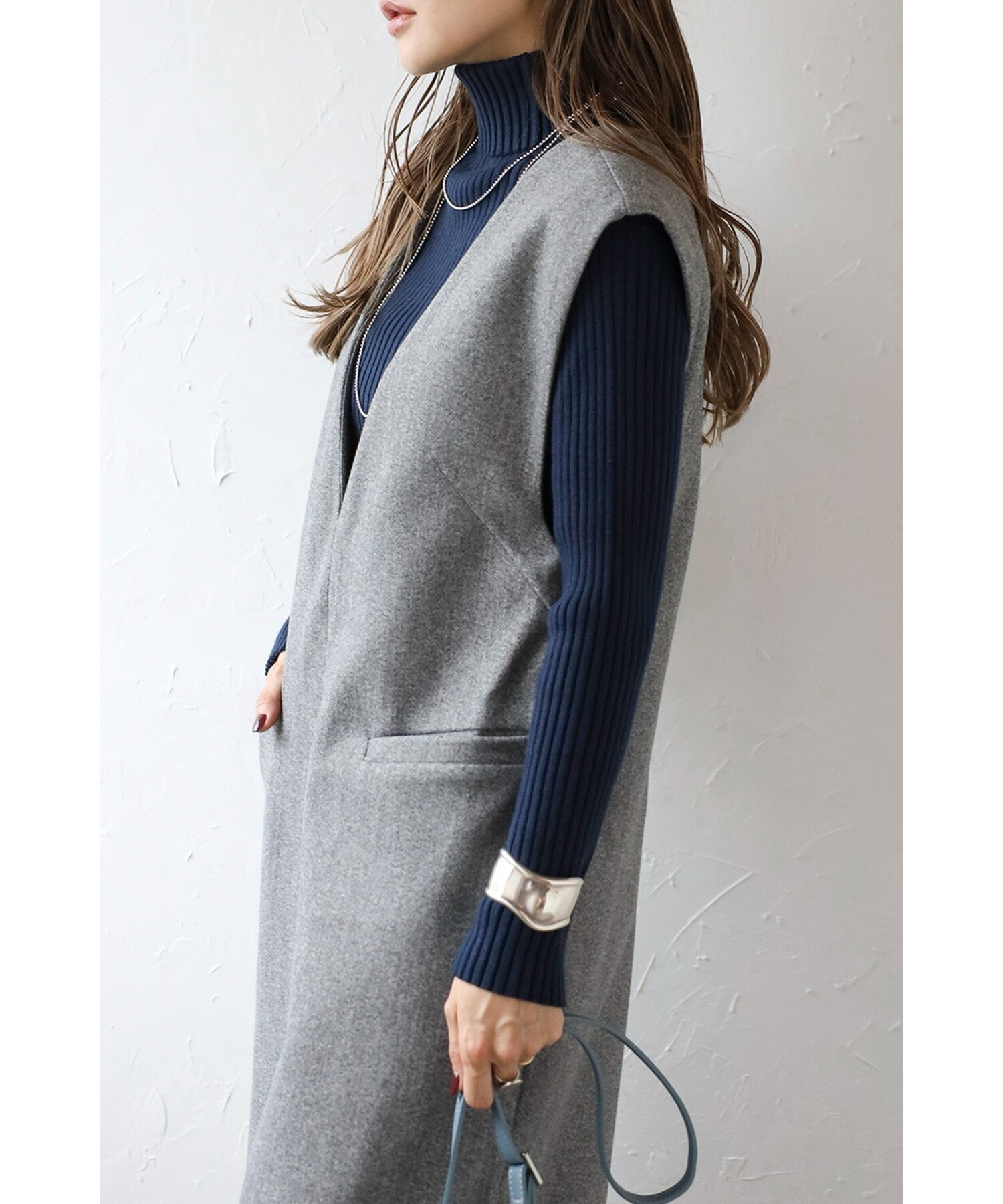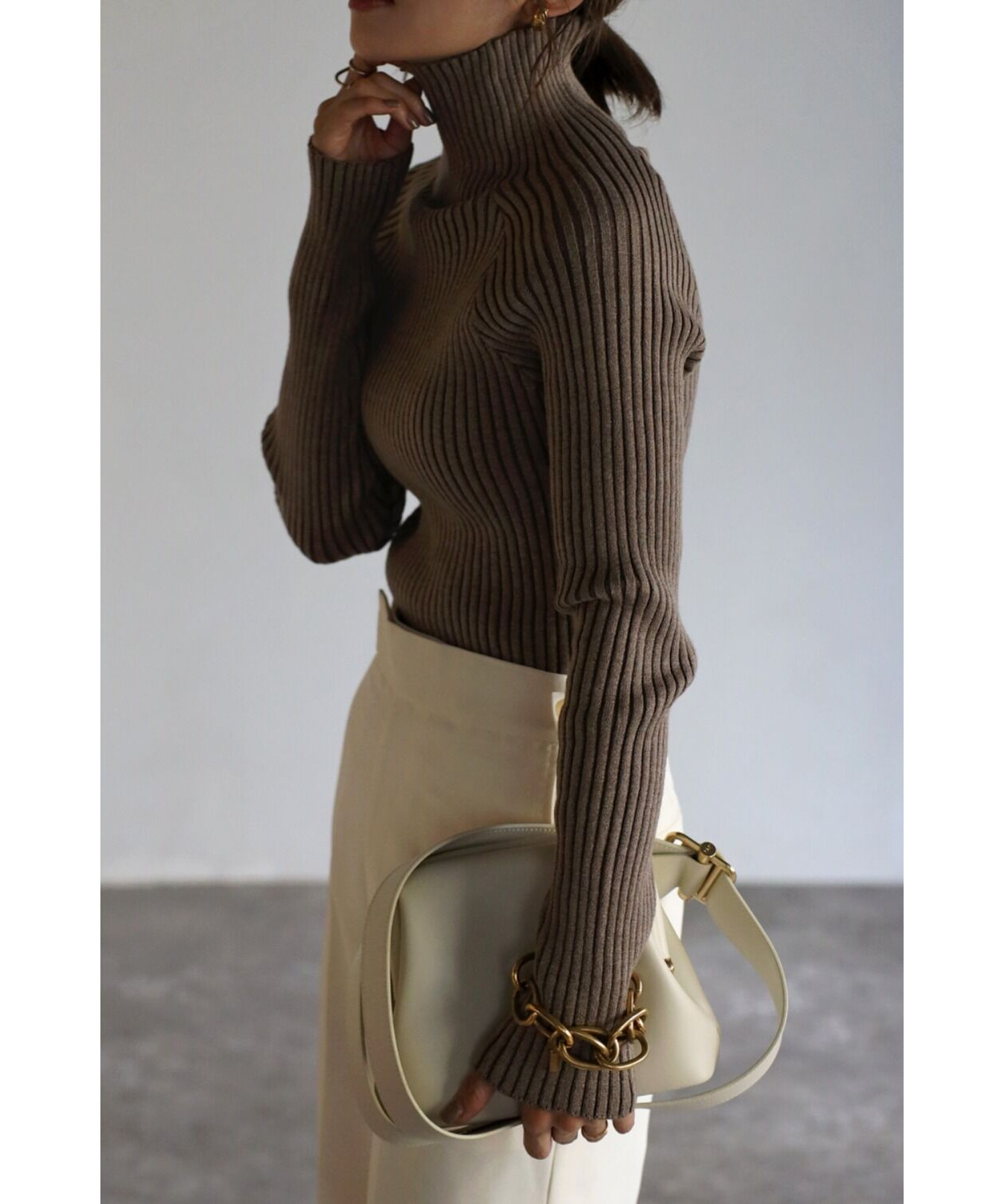 ハイネックデザインなので、ノーカラーのアウターとも相性抜群です。