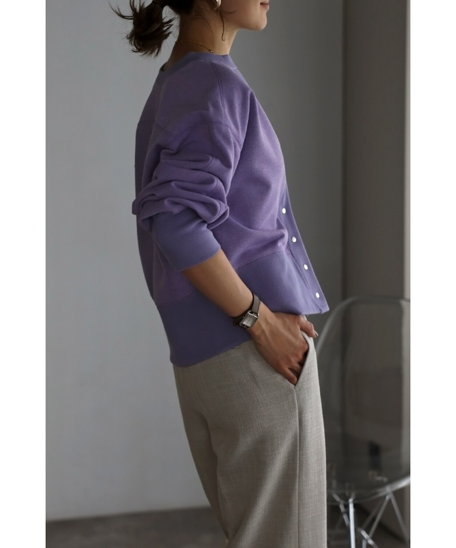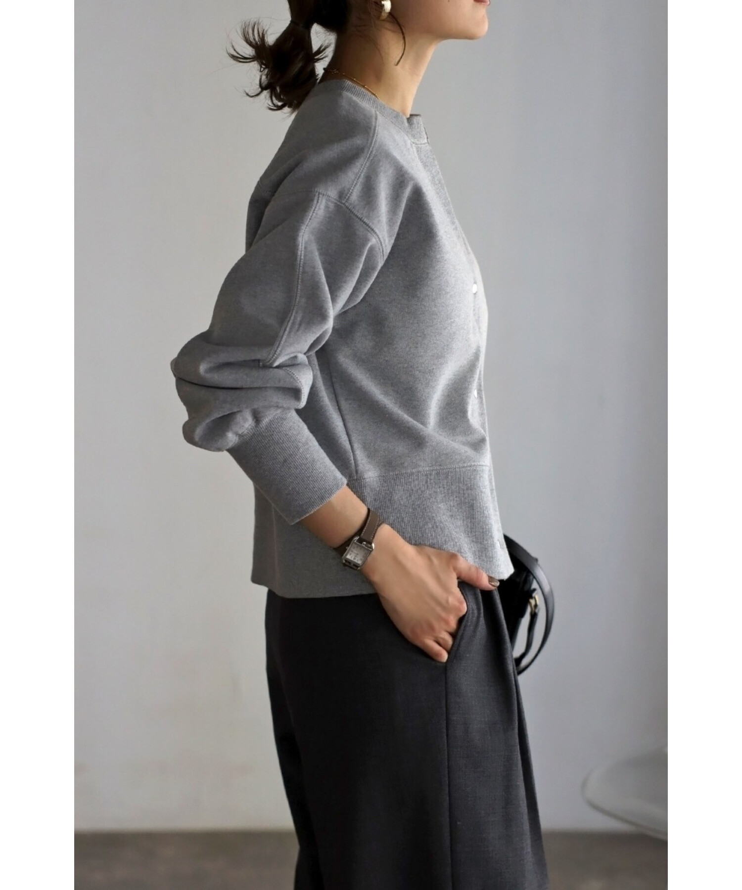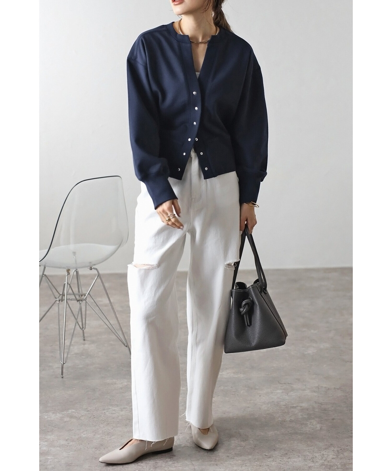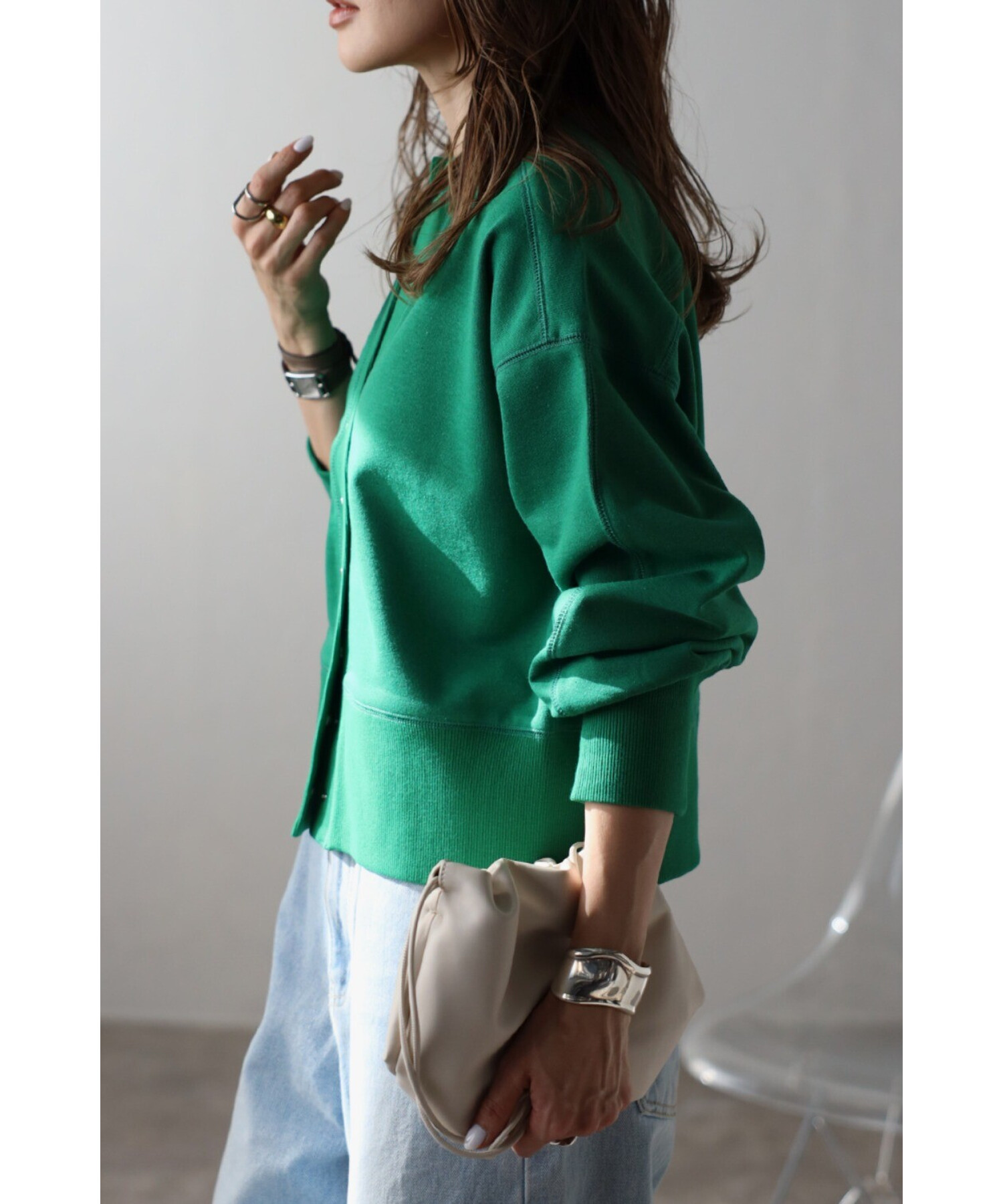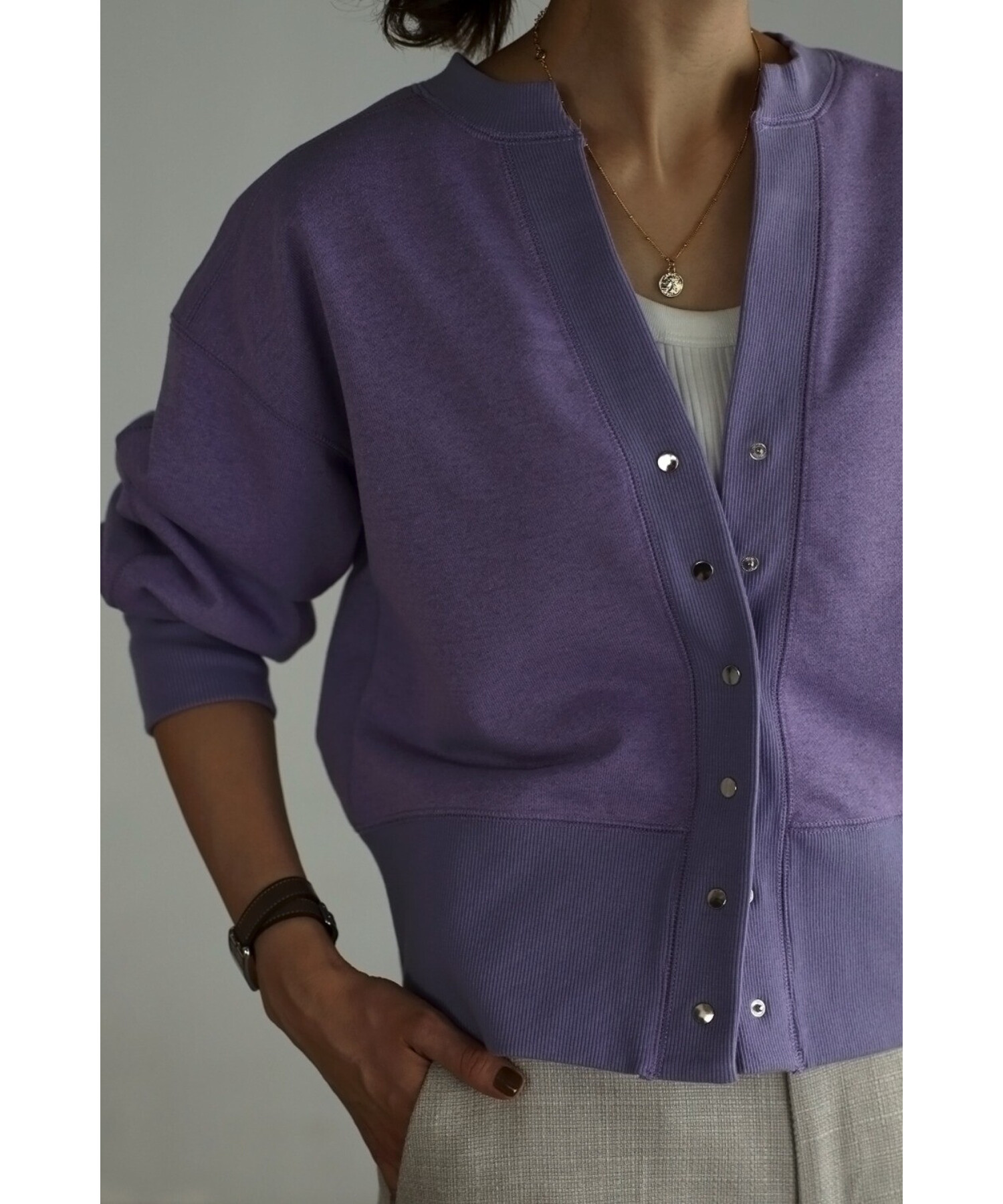 ワンピースに羽織ったり、ボタンを閉めてプルオーバー風に着用するのもおすすめです。