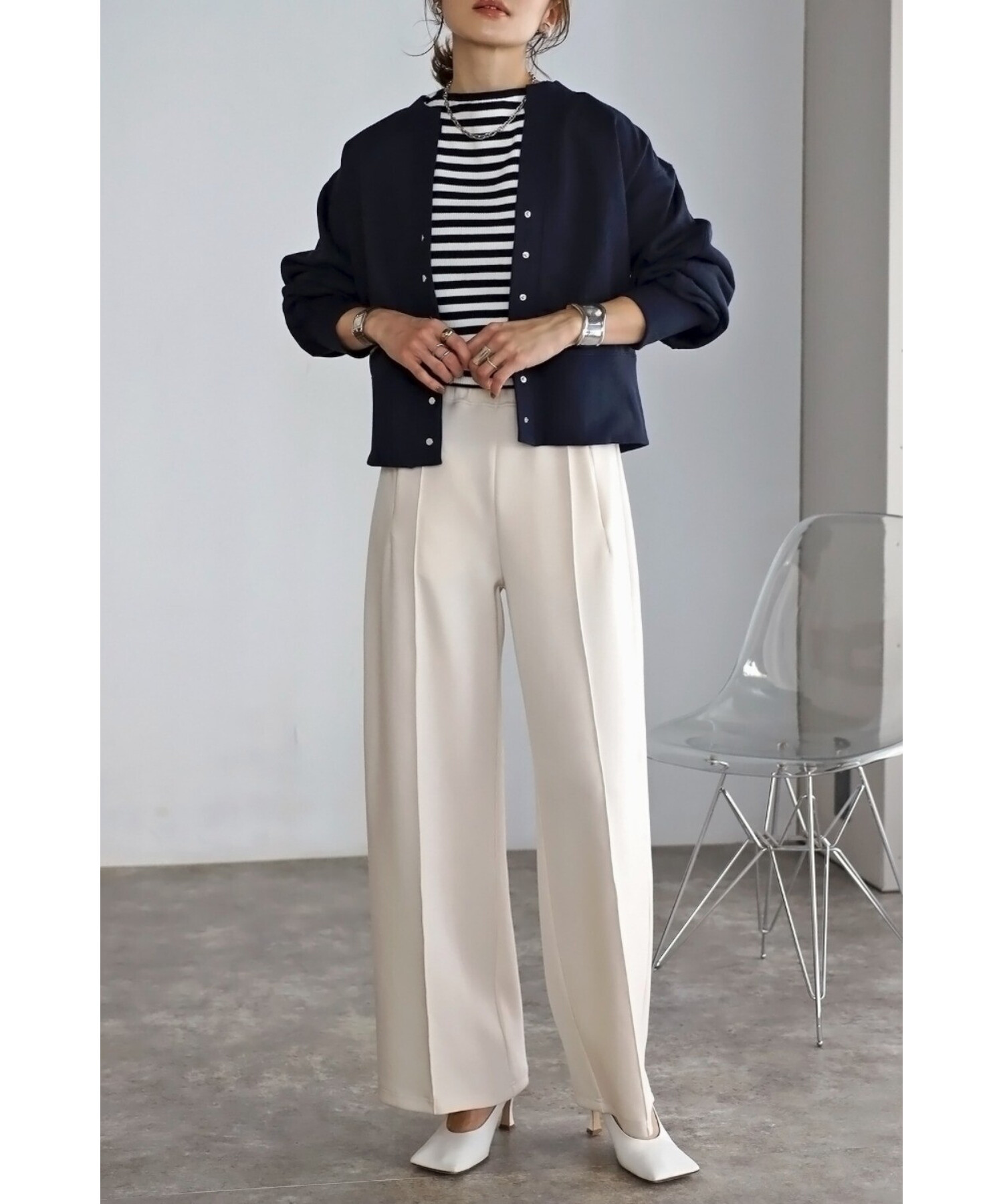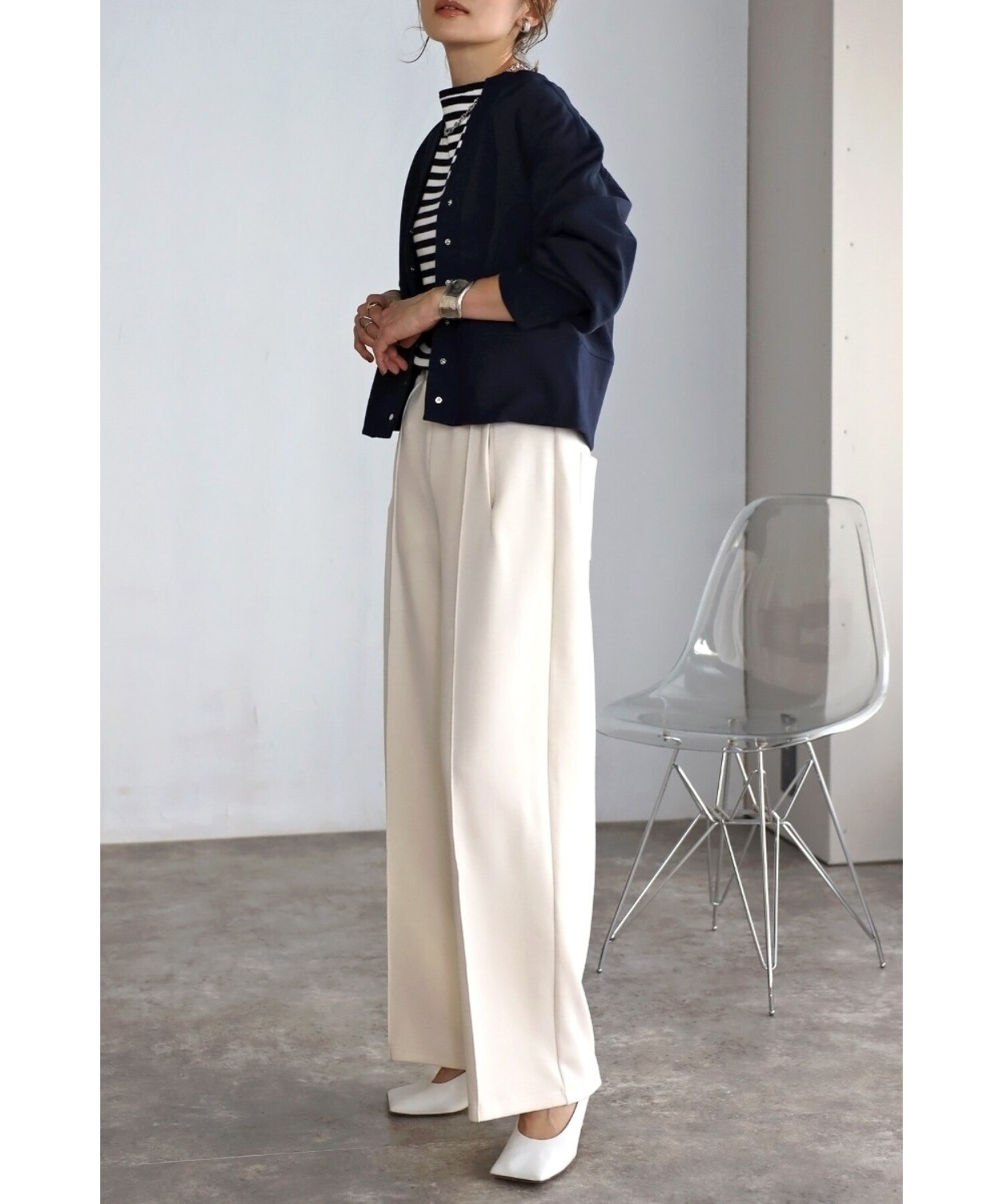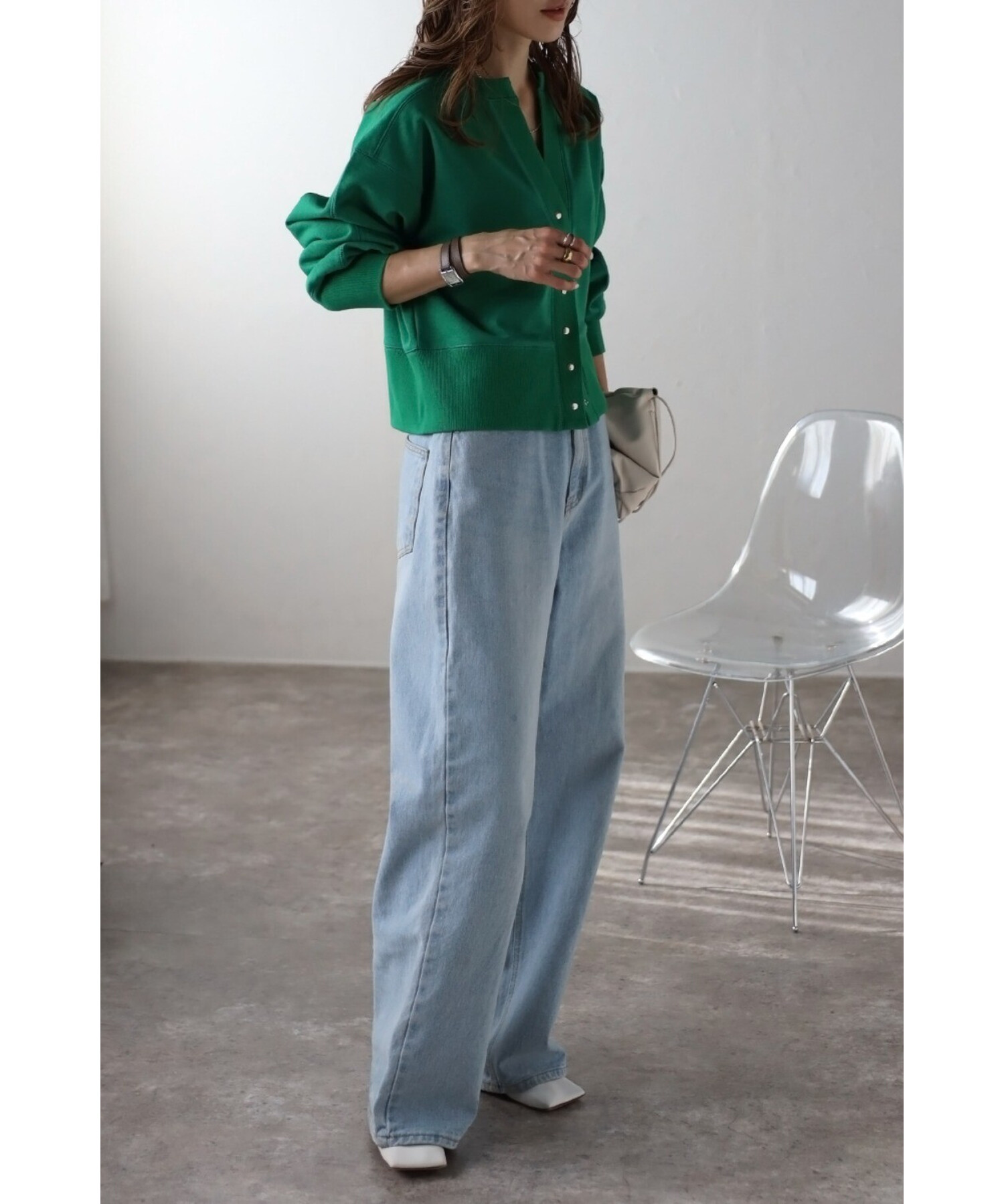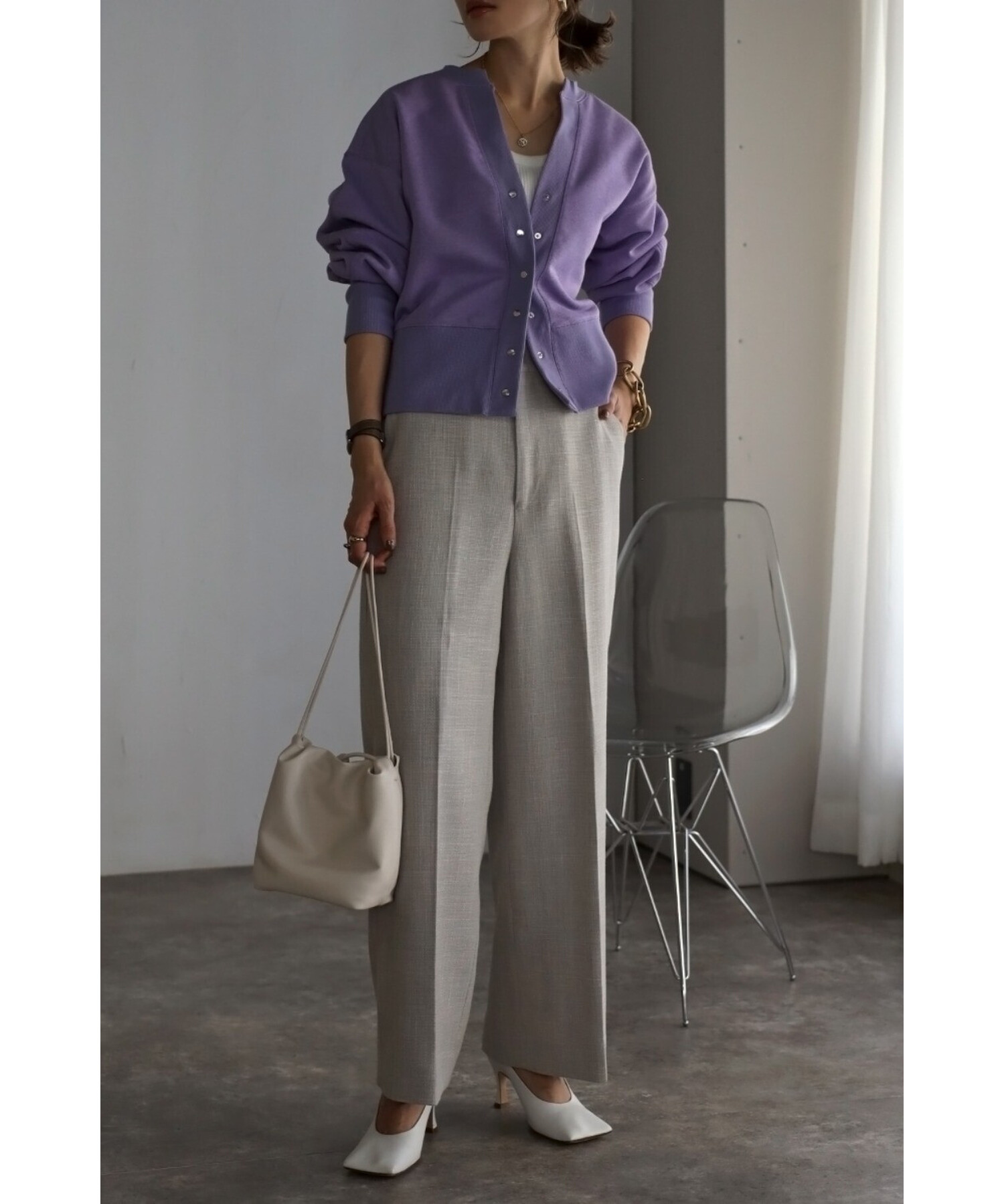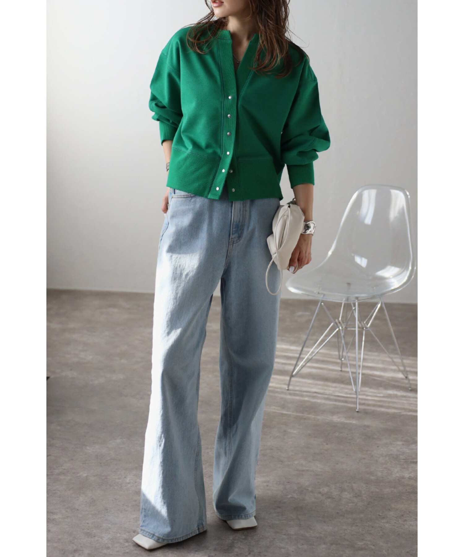 ワンピースに羽織ったり、ボタンを閉めてプルオーバー風に着用するのもおすすめです。