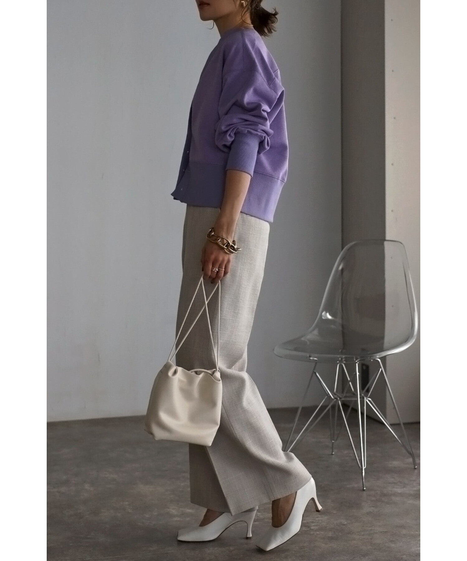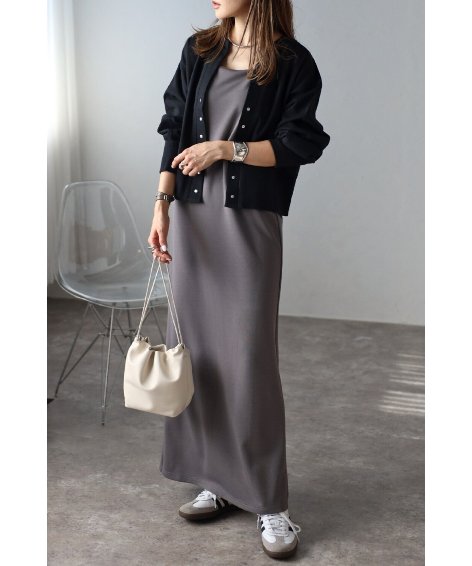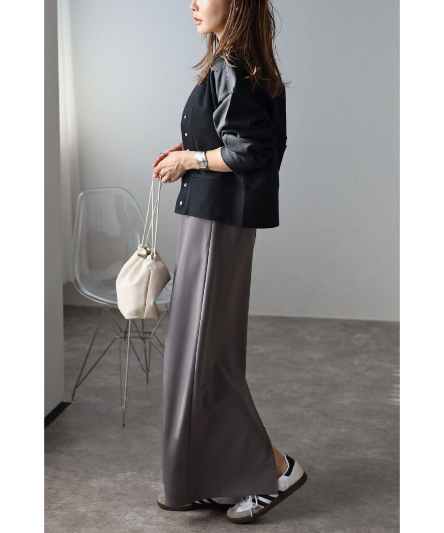Noriko【165cm】ライトグレー、ブラック、グリーン、ネイビー、ラベンダー着用