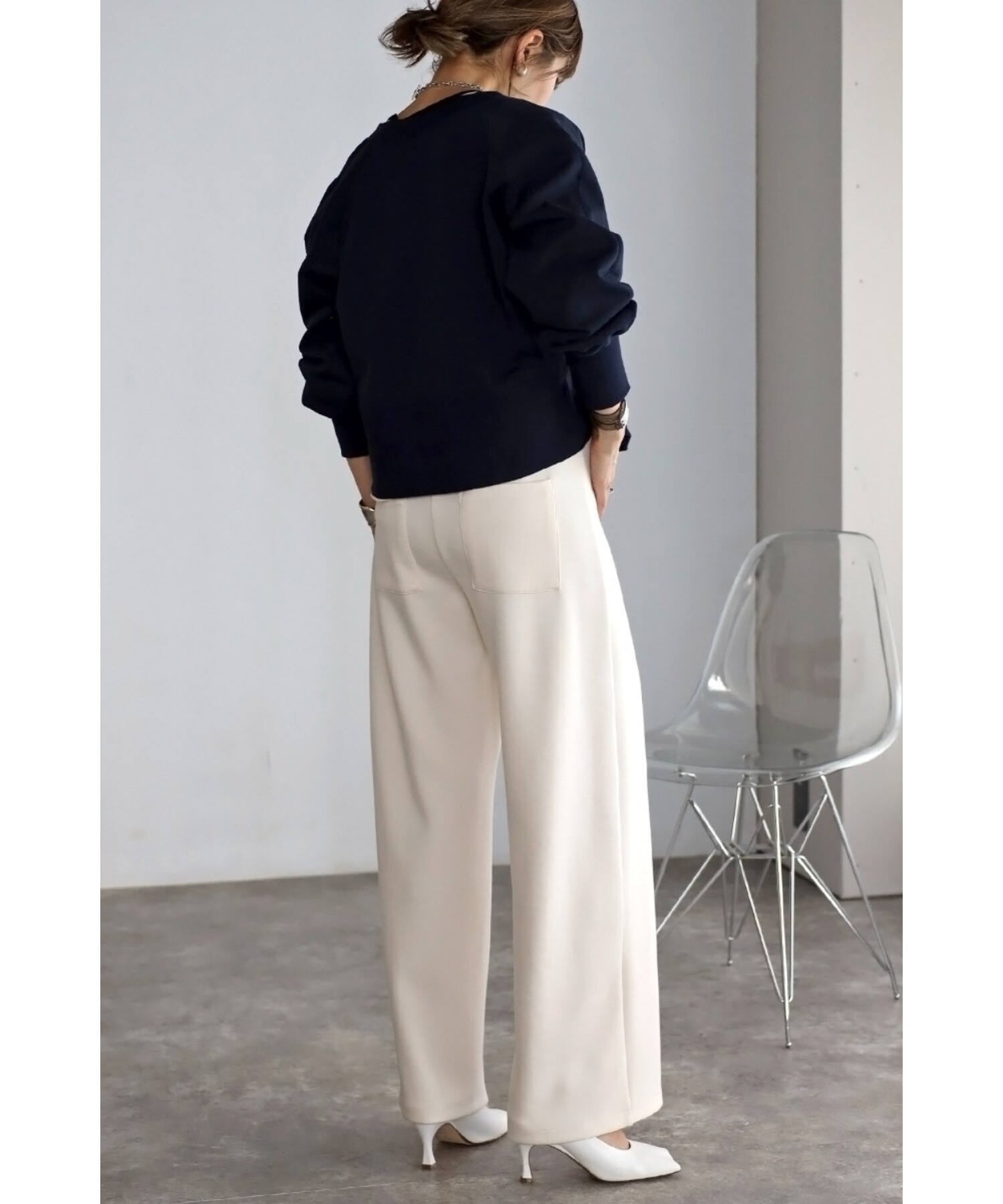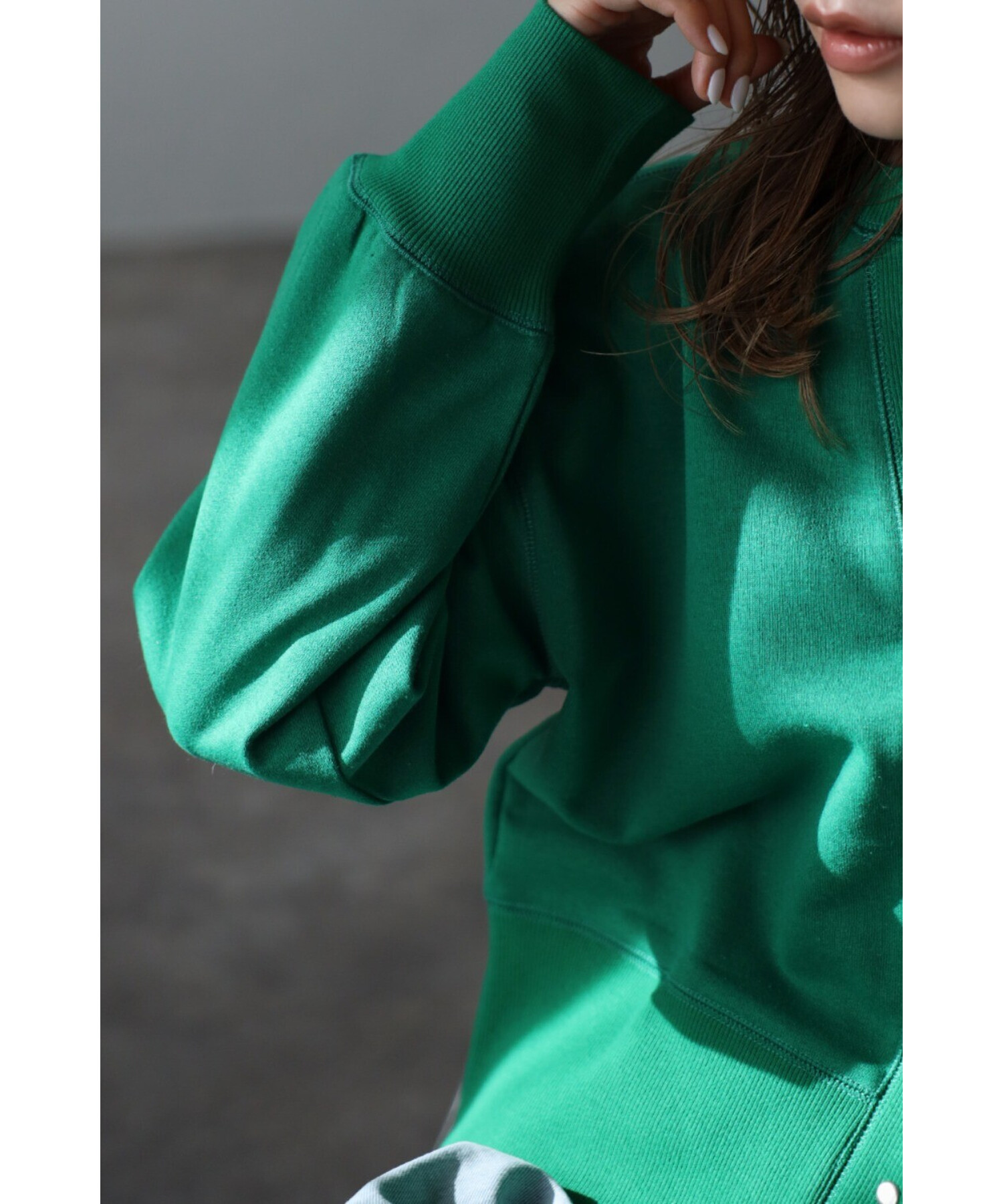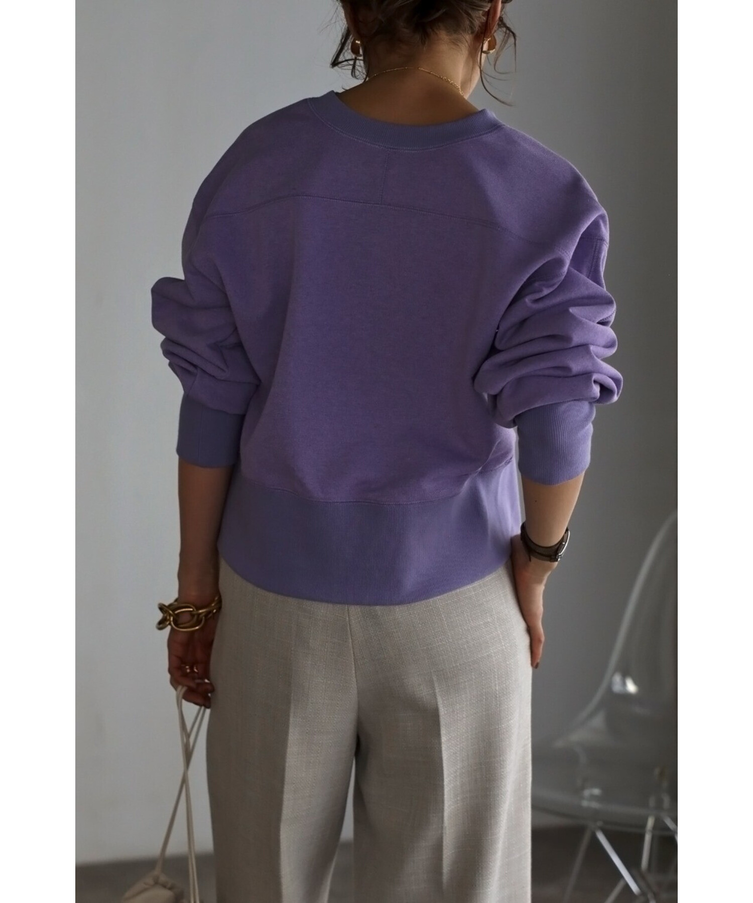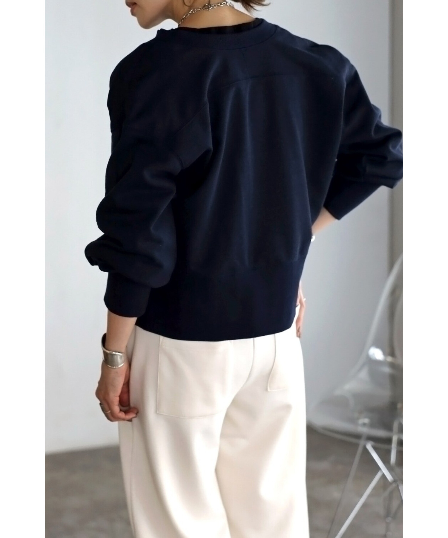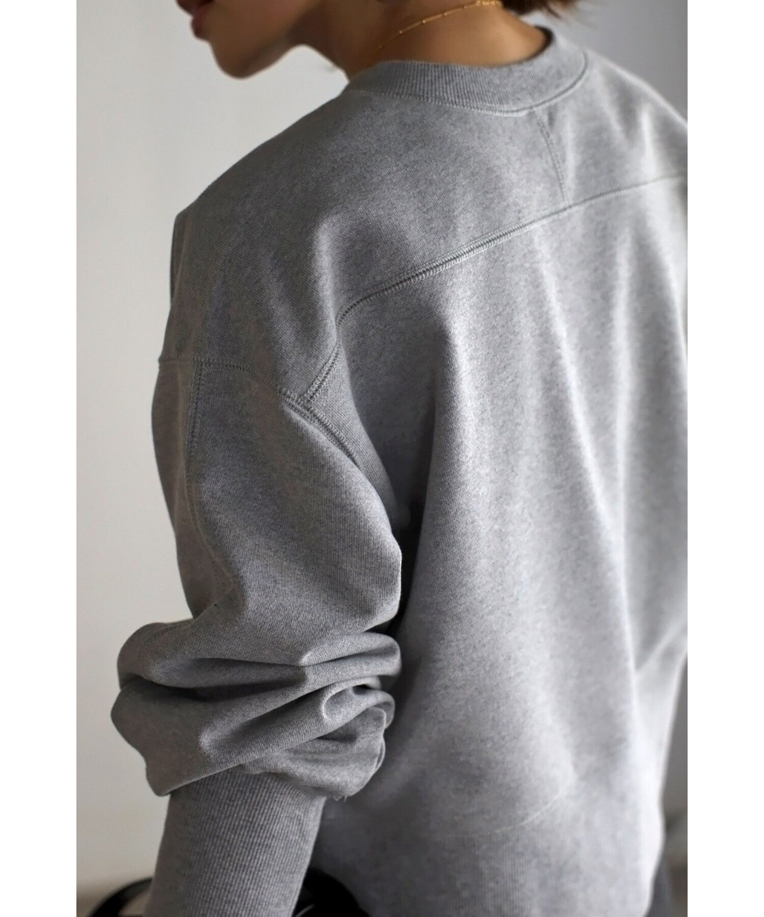 袖口と裾の太めリブや、肩やバックに施されたステッチデザインもほど良いアクセントに。