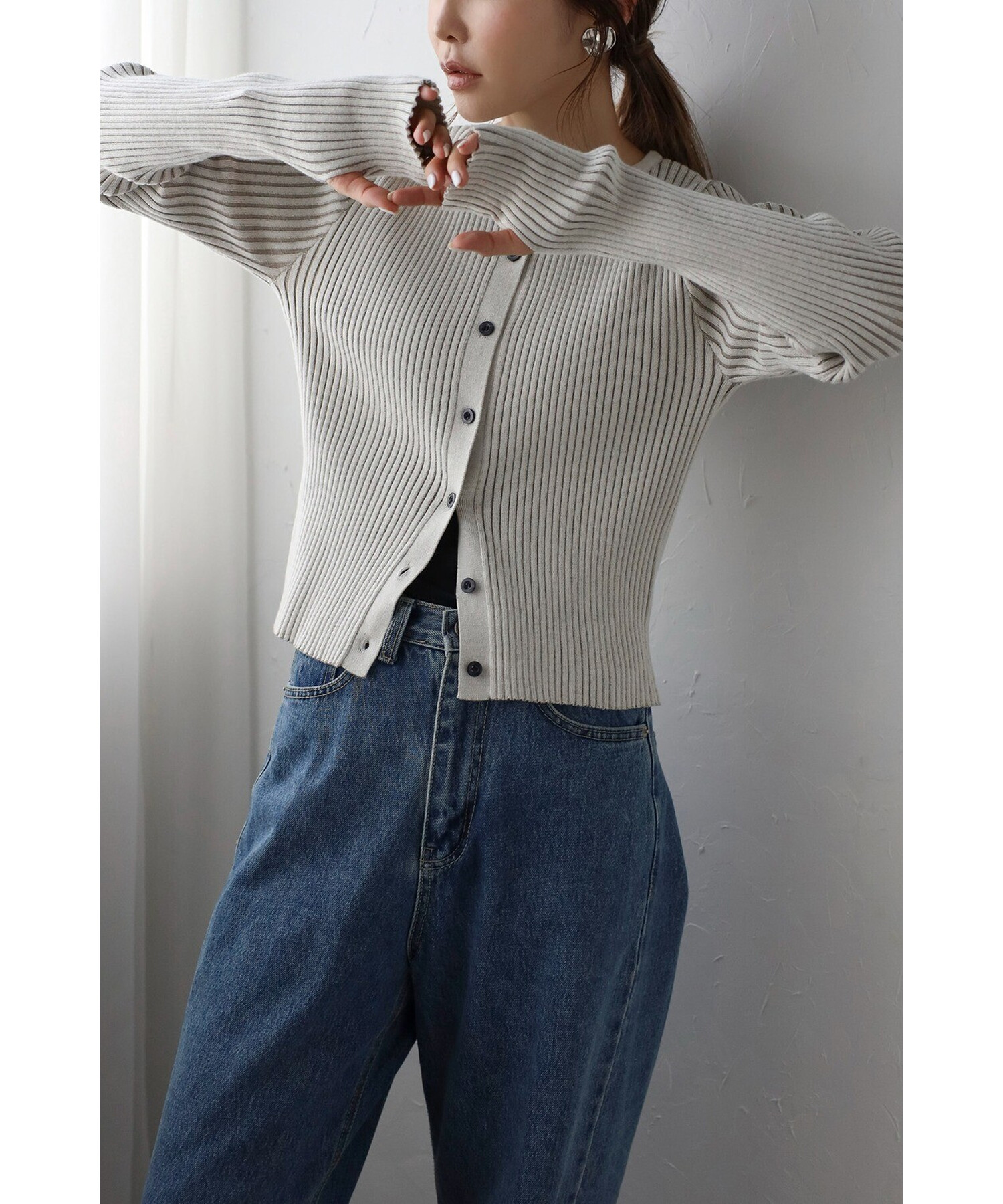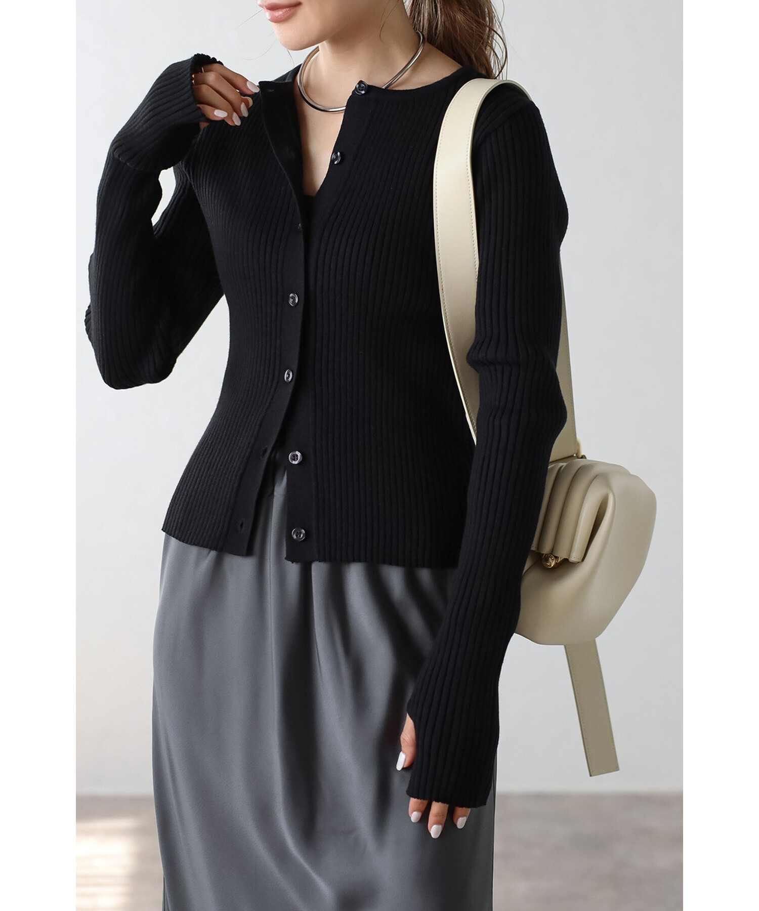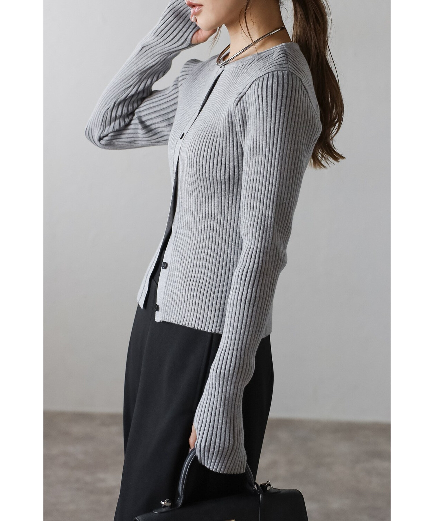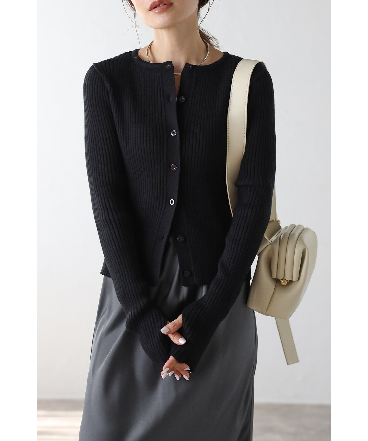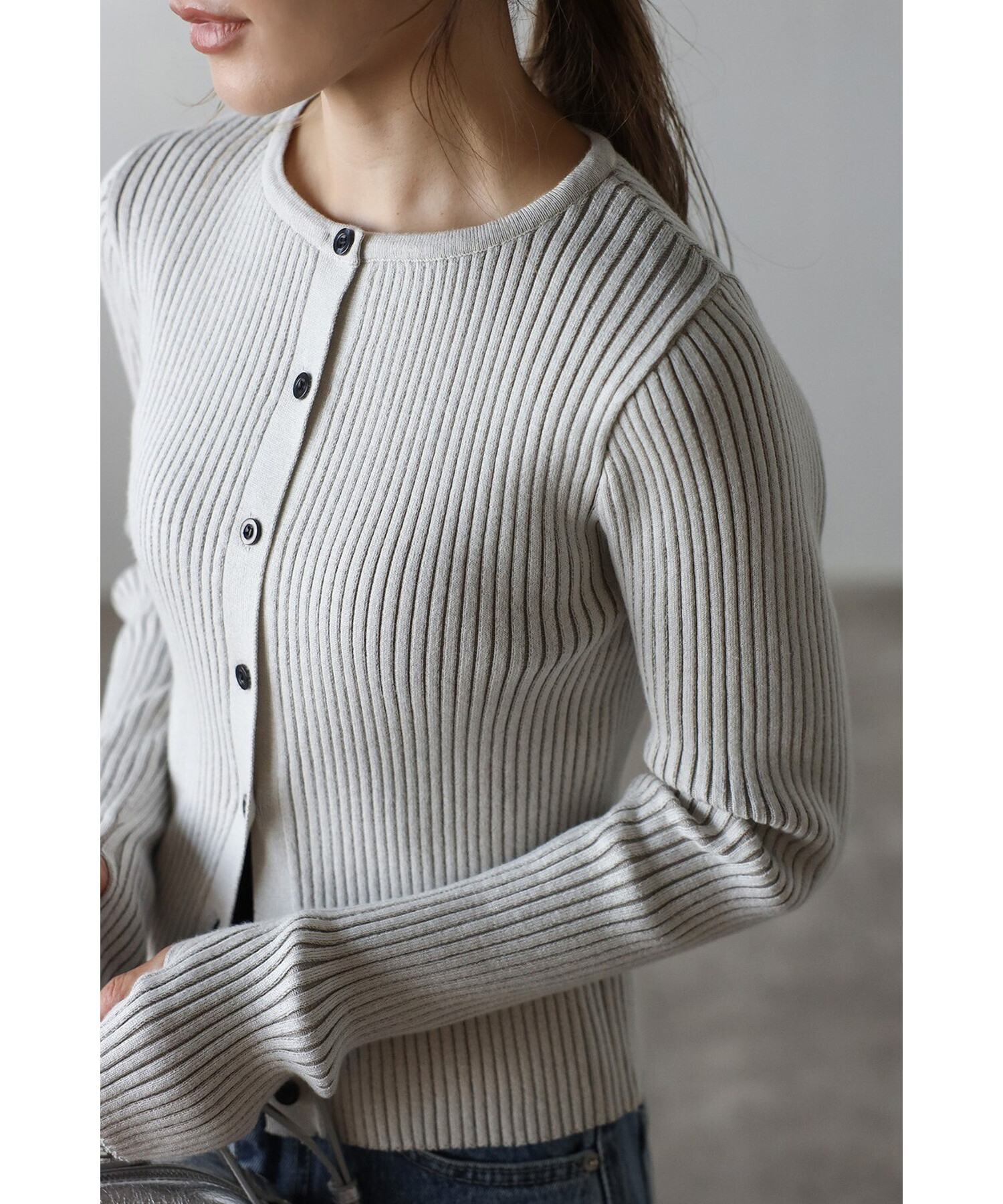ミニマルシックを纏う。リブ編みクルーネックカーディガン