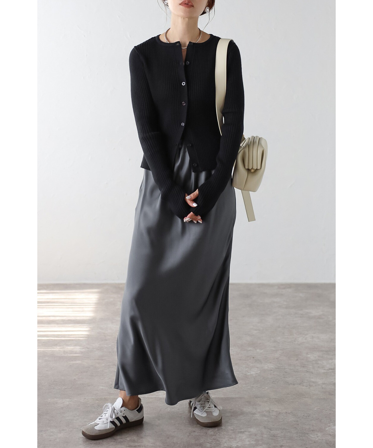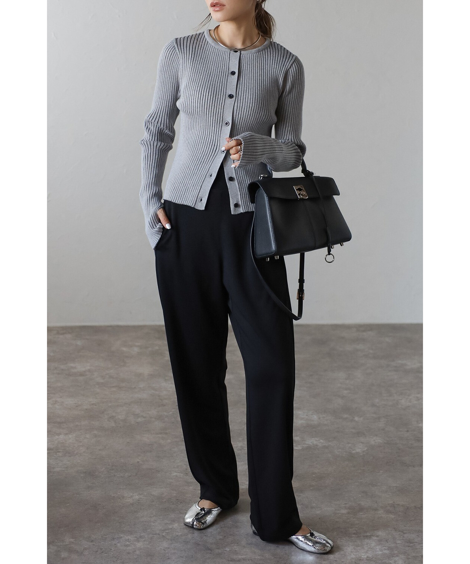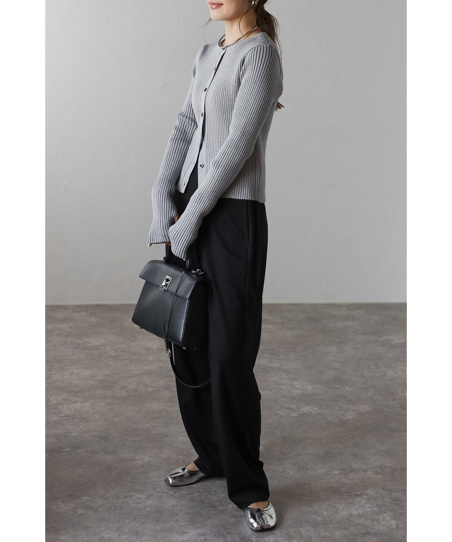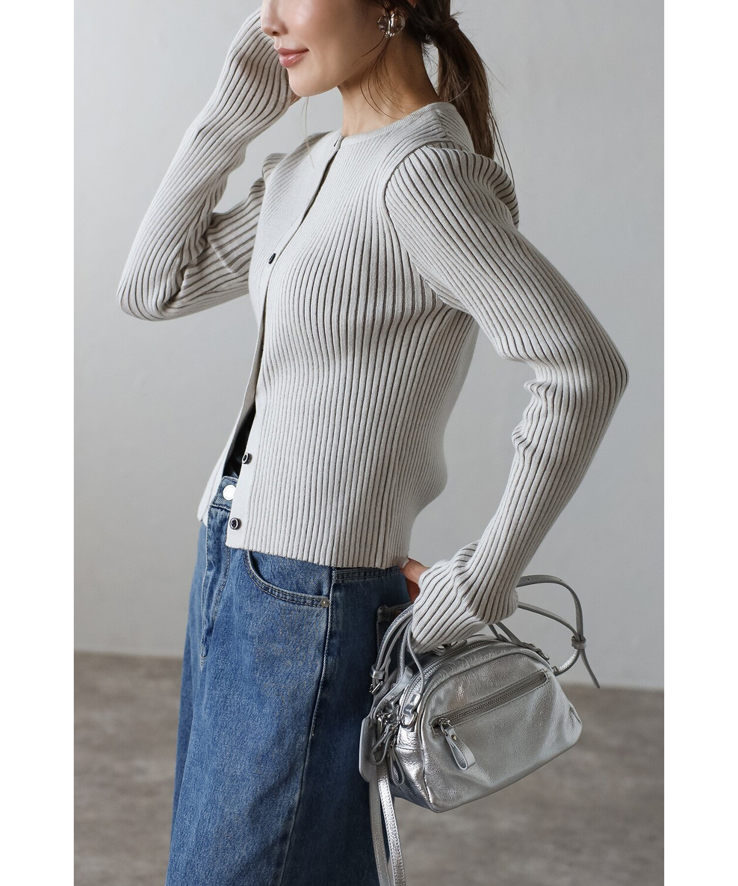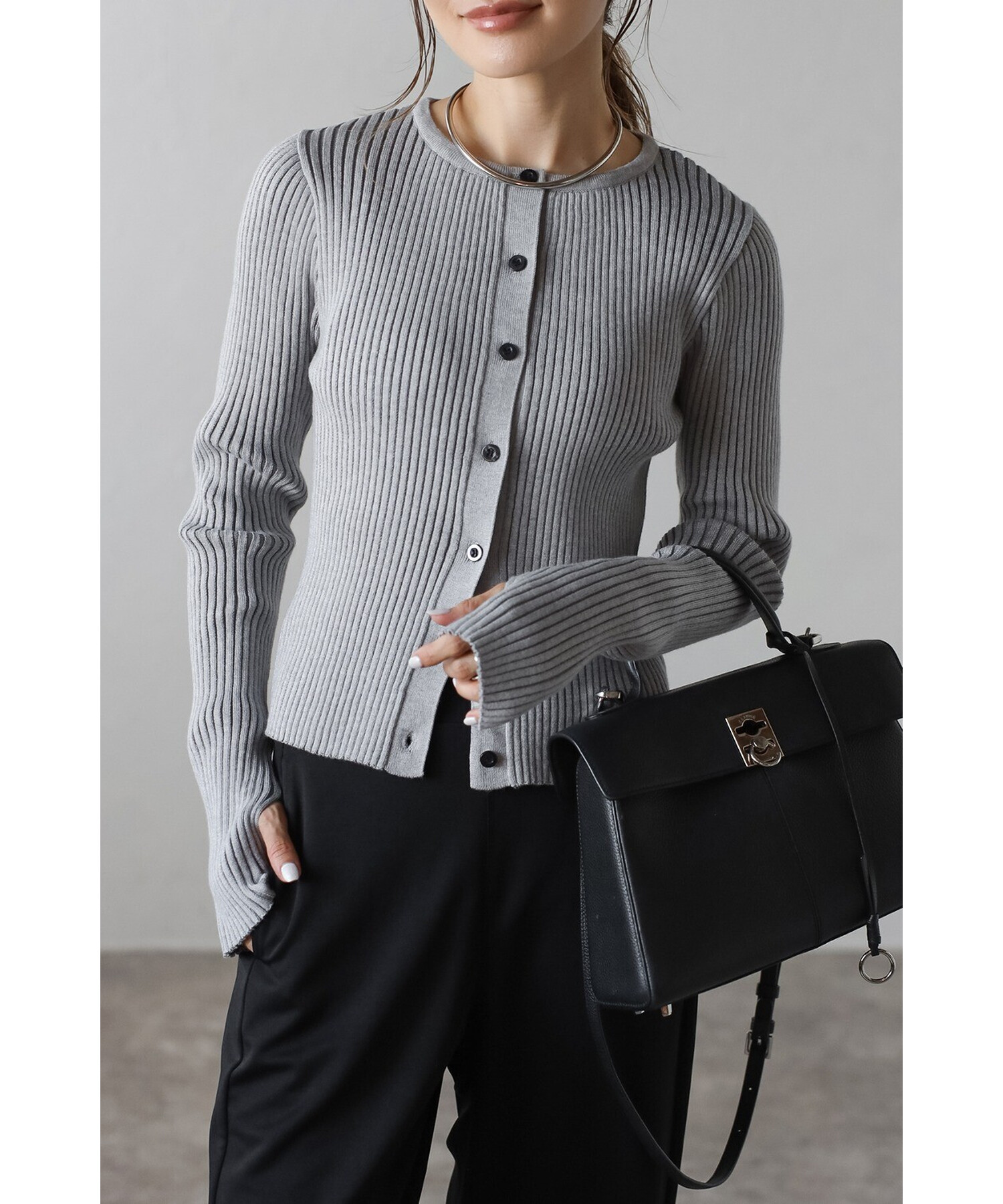 ミニマルシックを纏う。リブ編みクルーネックカーディガン