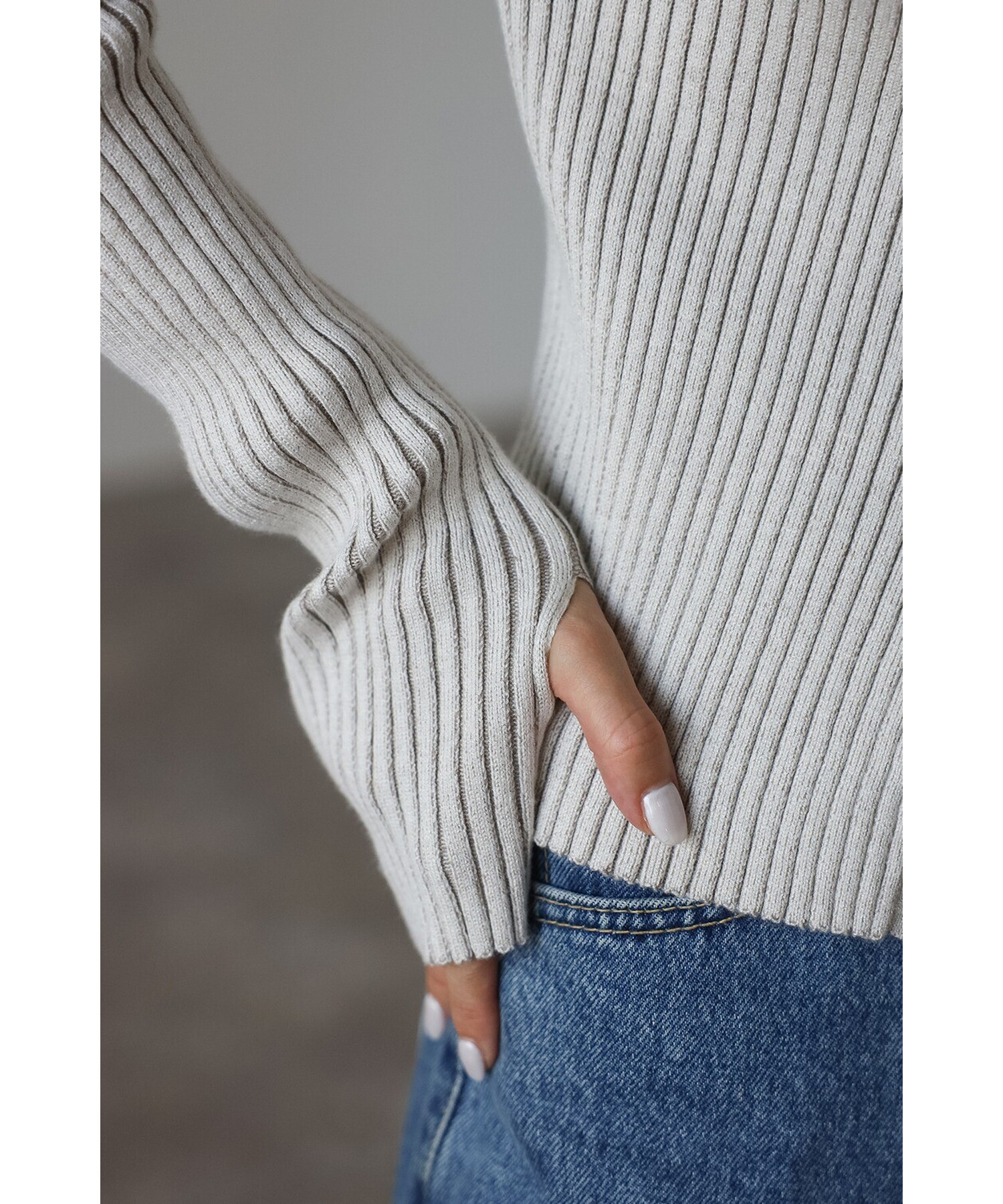 ソフトなテクスチャーと柔軟性のあるリブ編みが快適な着心地を提供し、体のラインに優しくとフィットします。