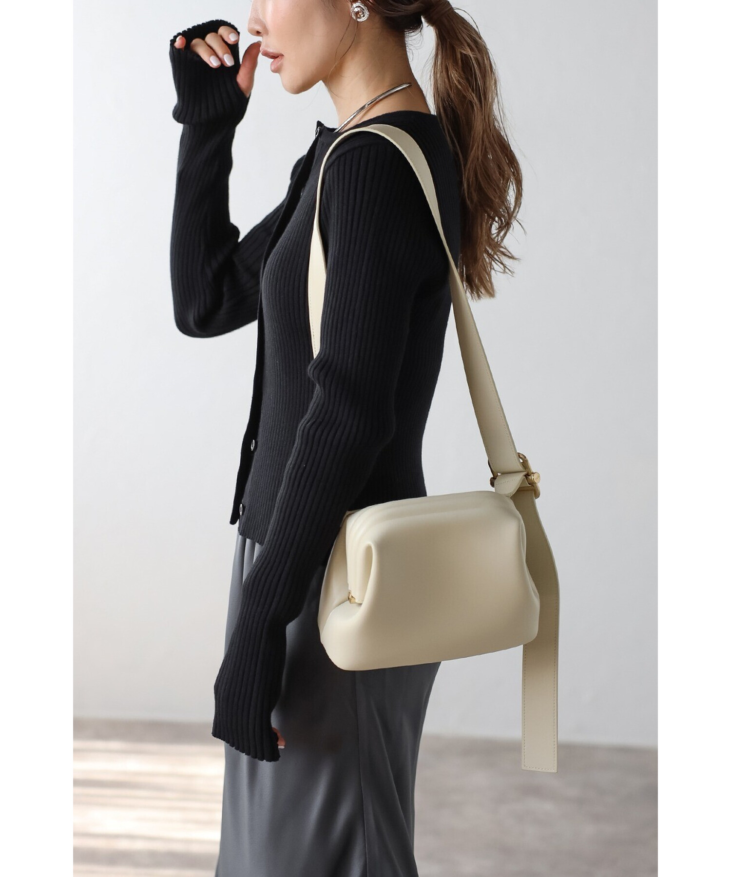 どんなスタイリングにもマッチするシルエットで、洗練された雰囲気を演出。