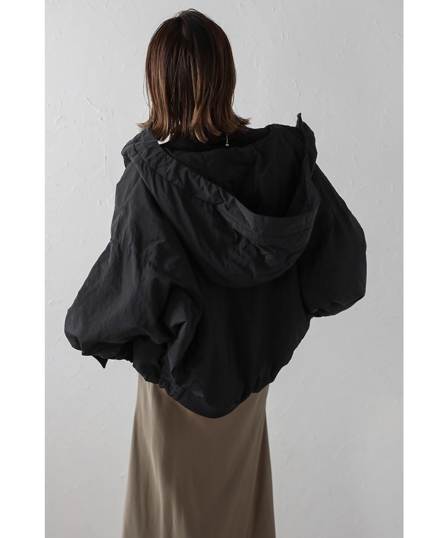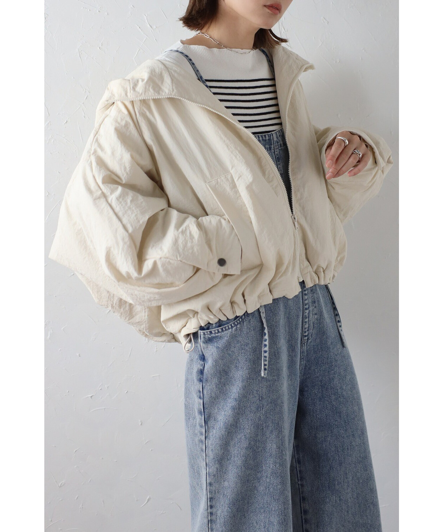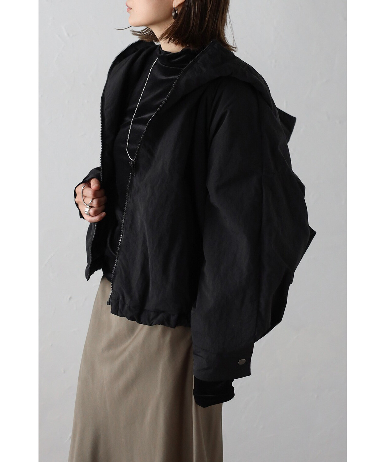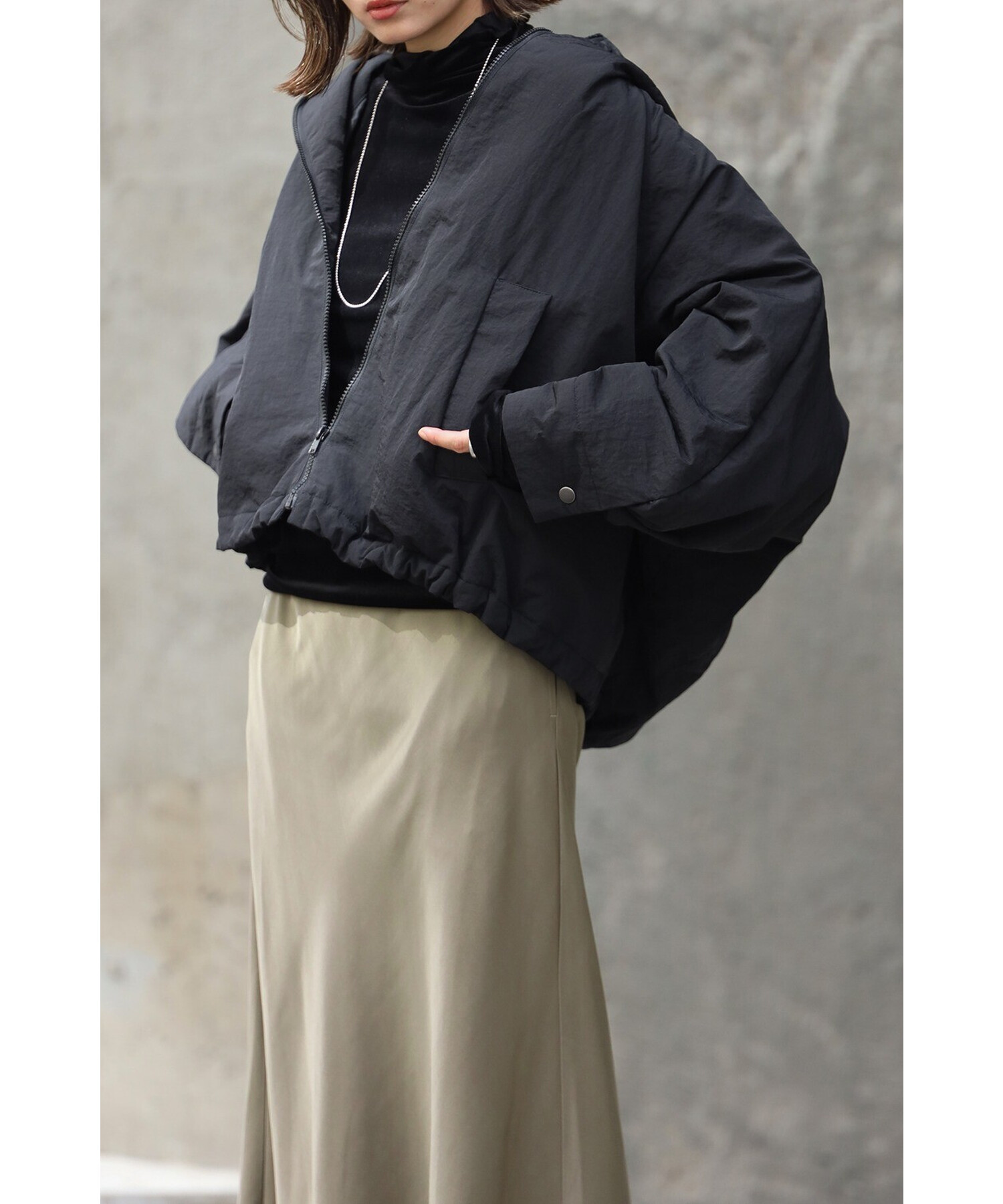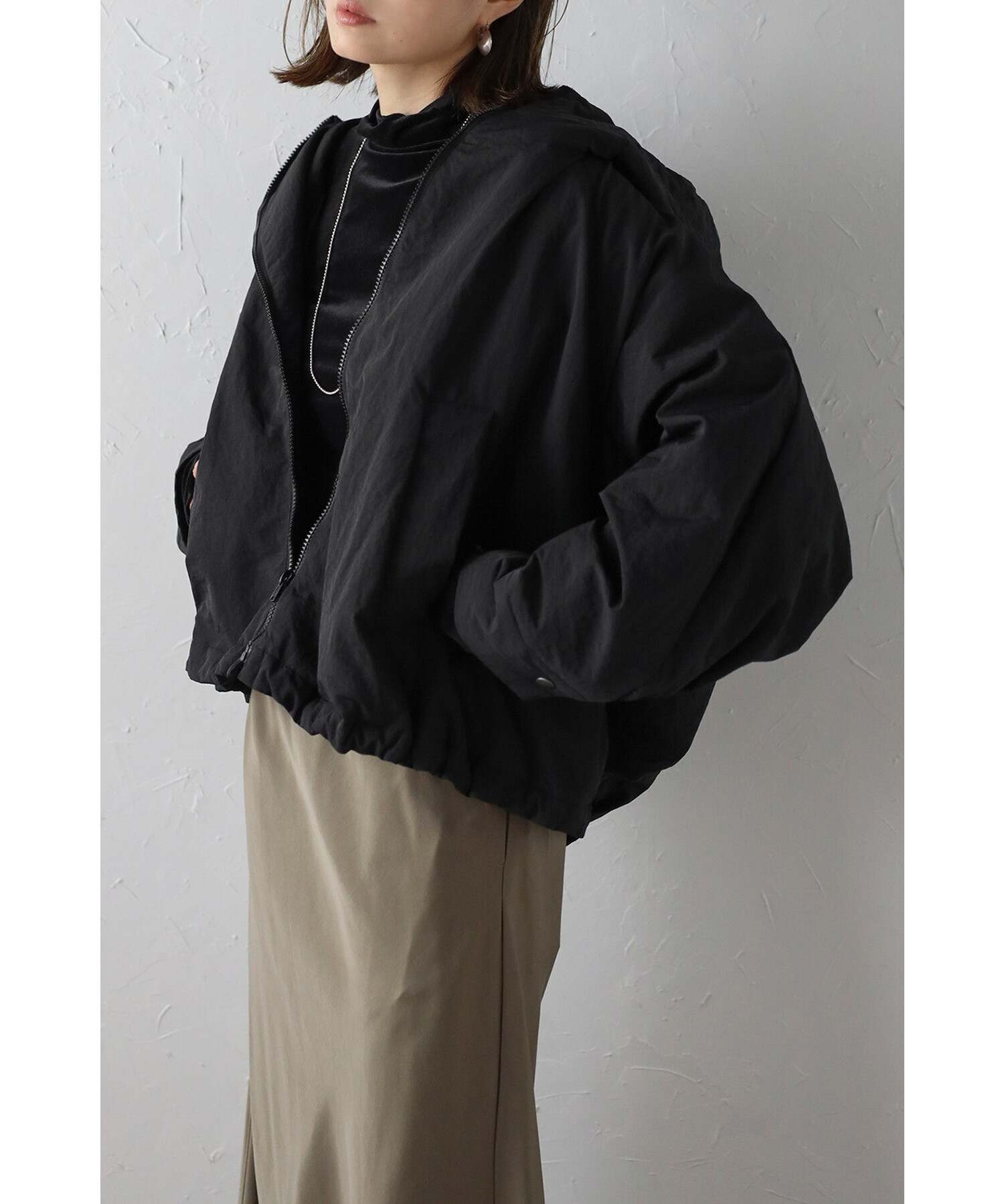 スタイリッシュに羽織る、軽やかなドルマンブルゾン