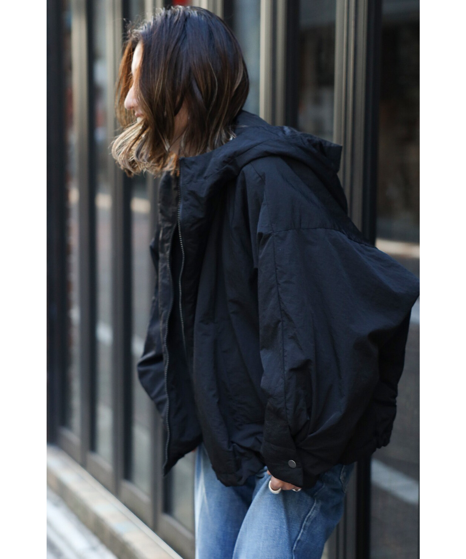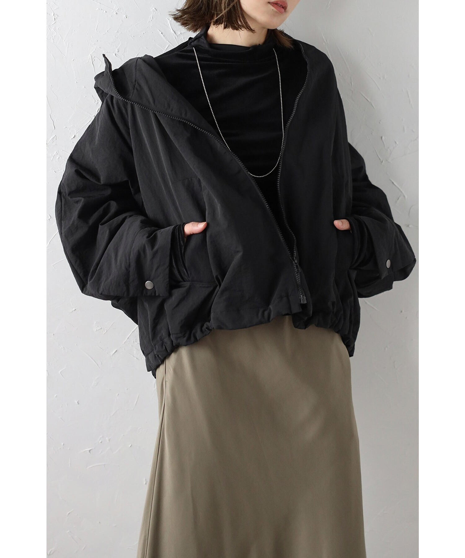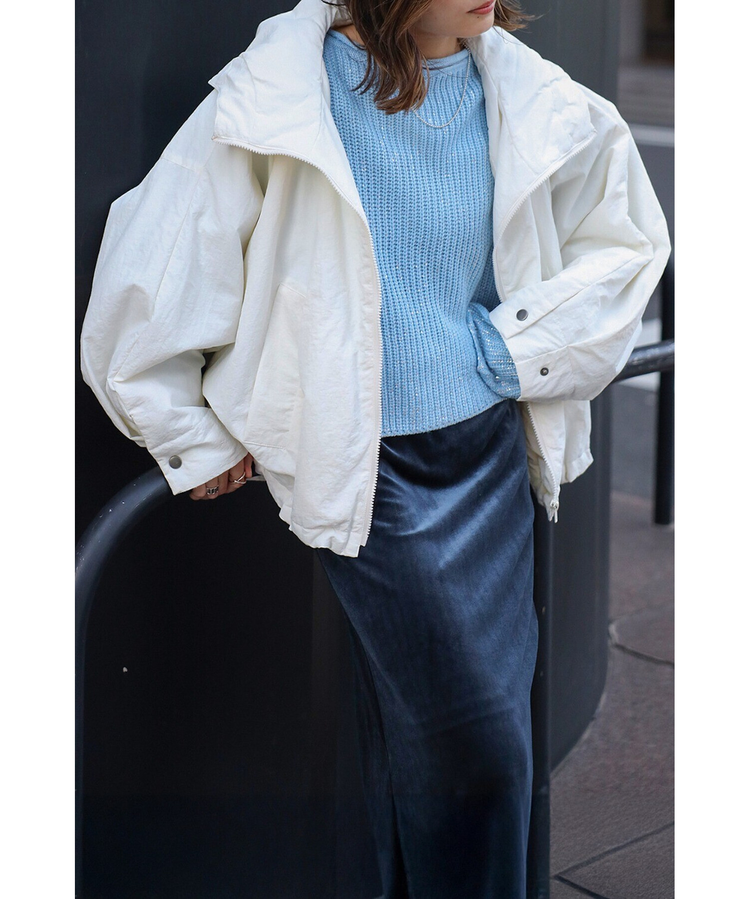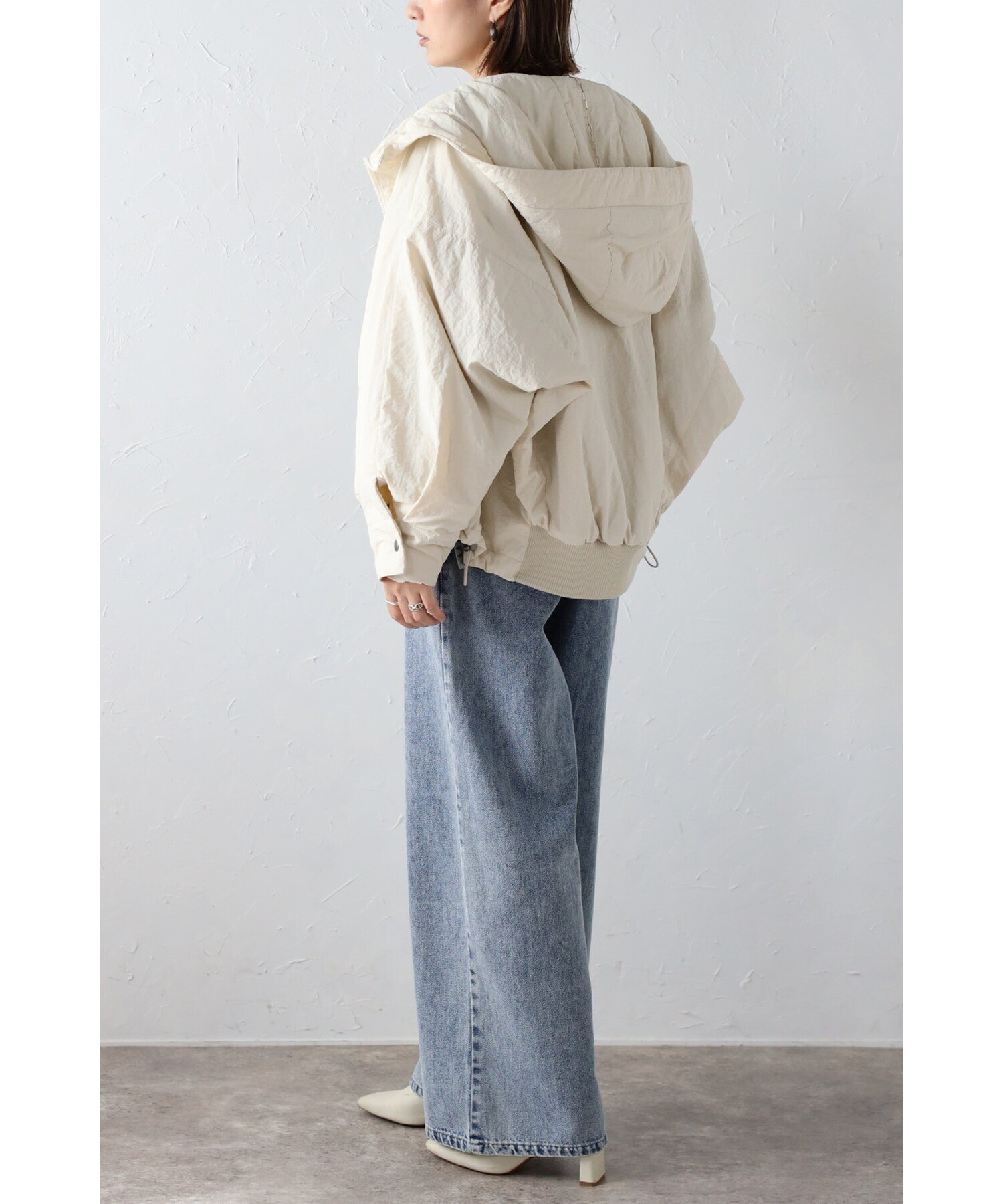 スタイリッシュに羽織る、軽やかなドルマンブルゾン