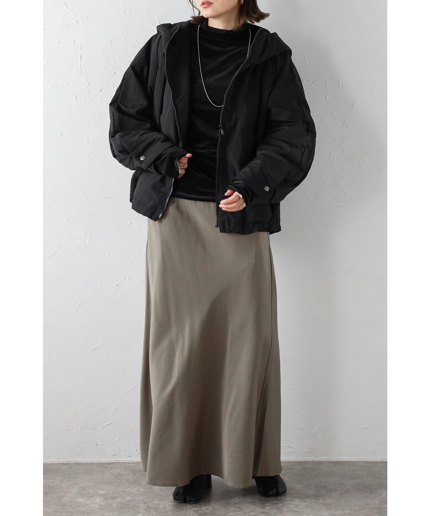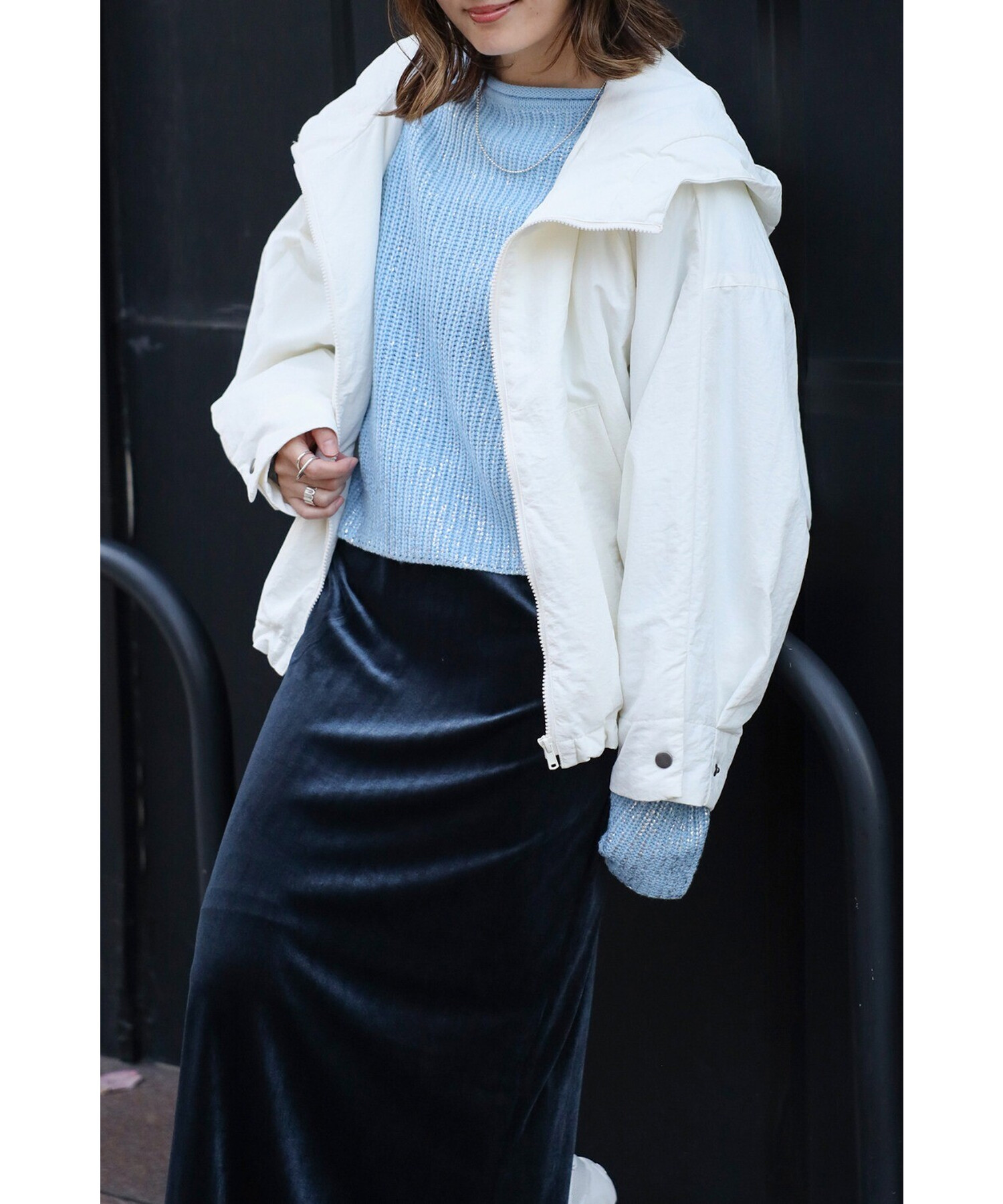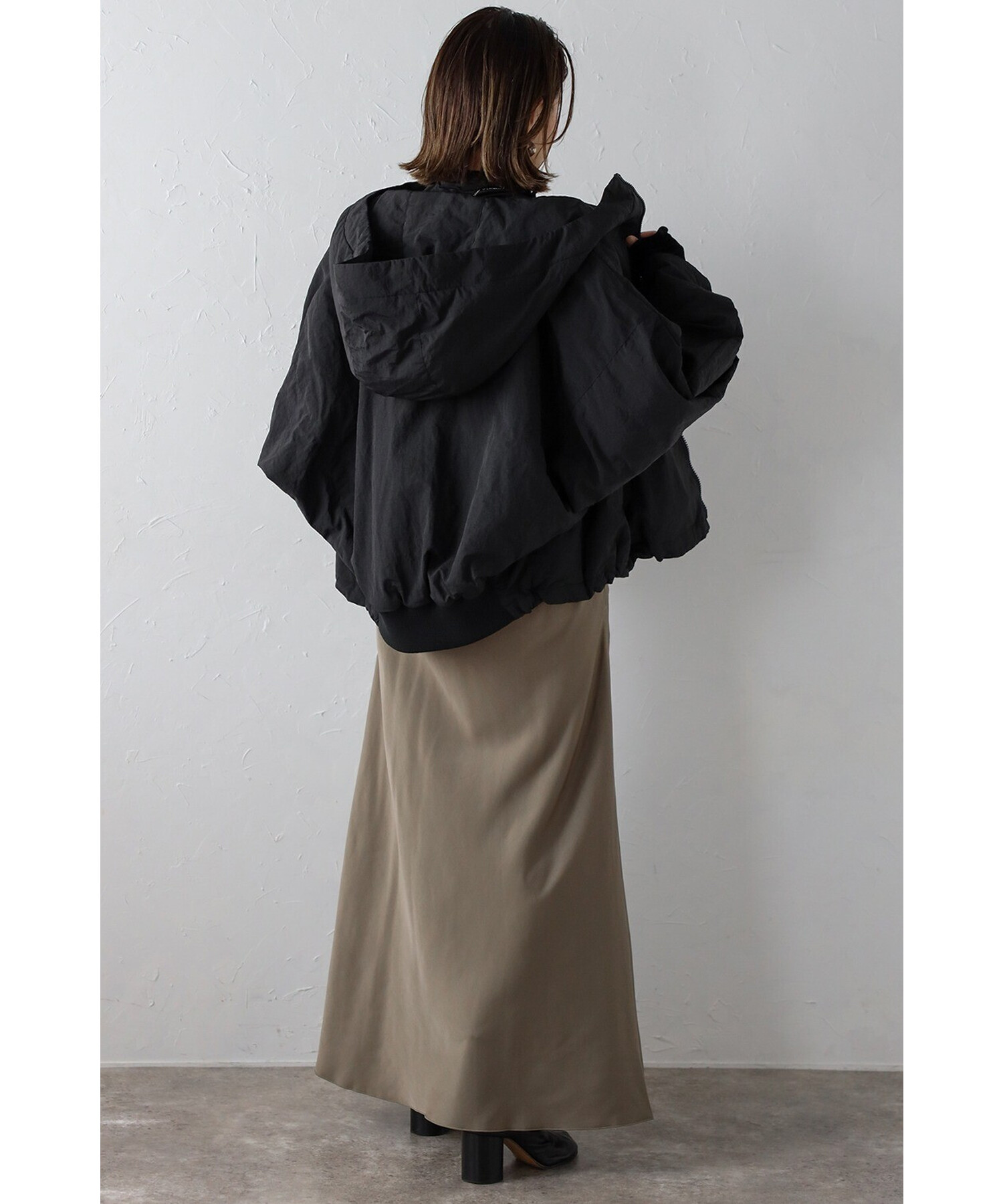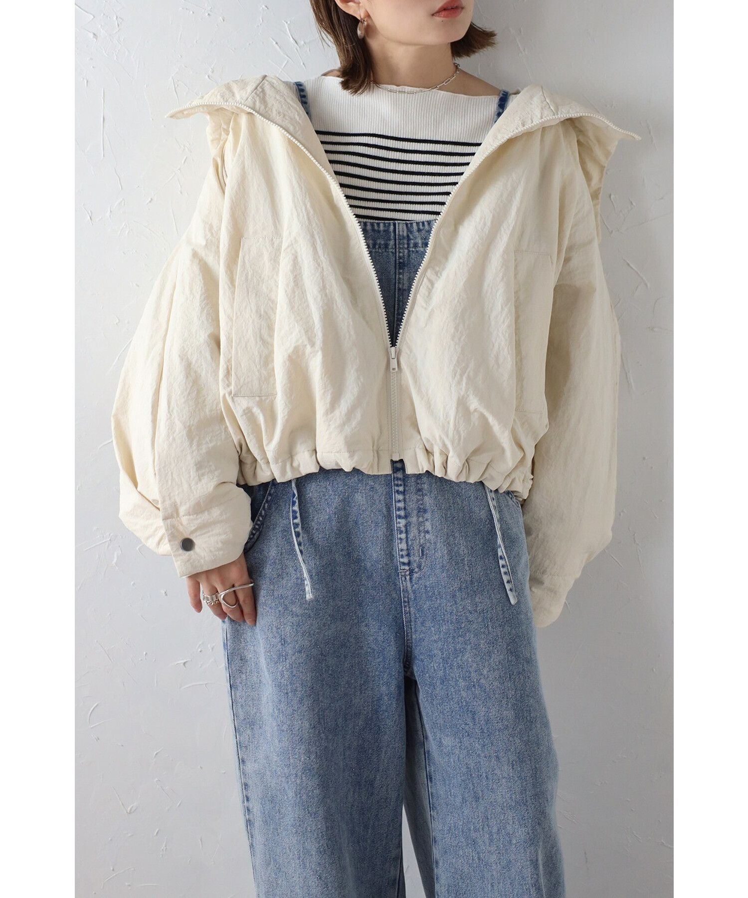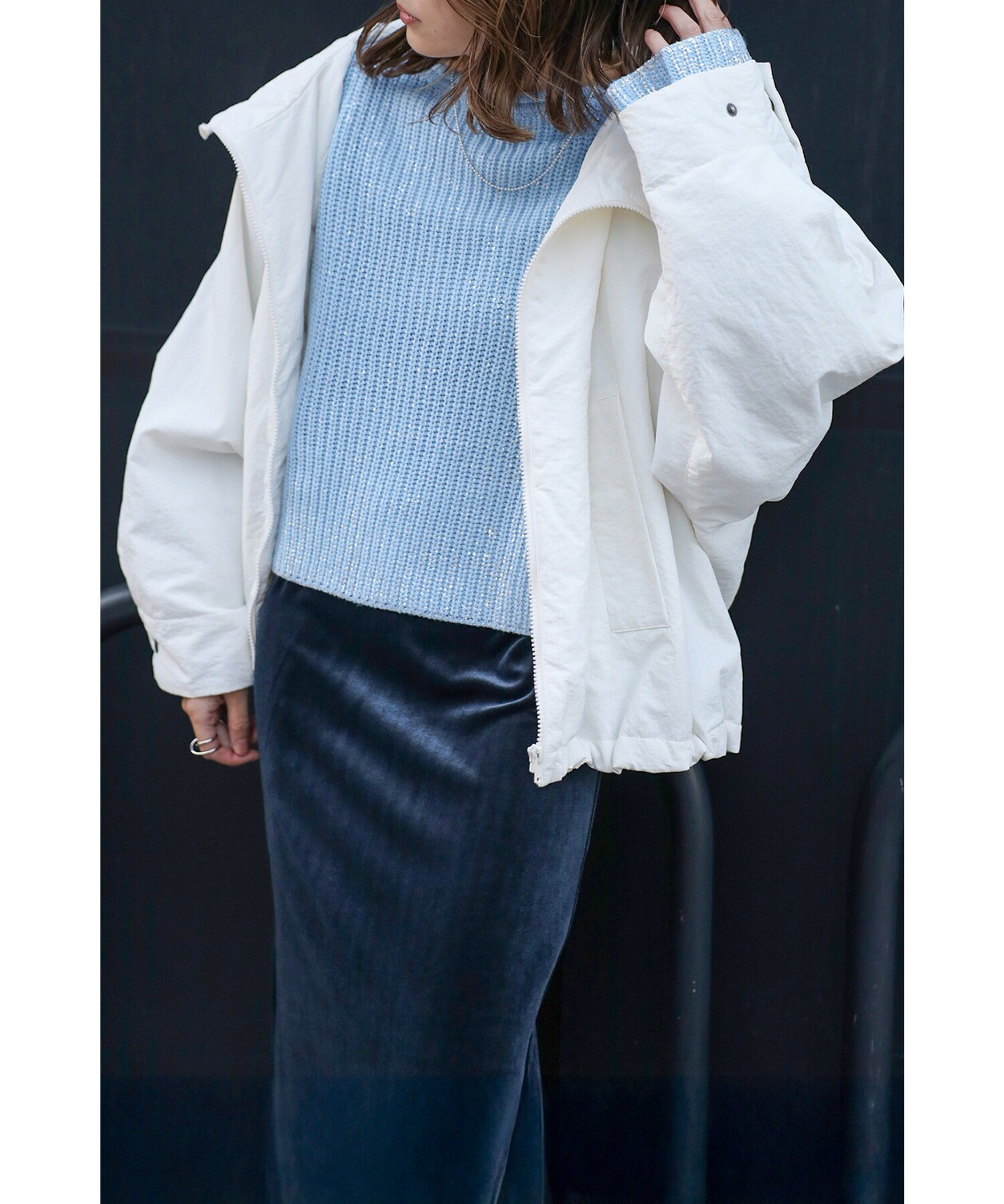 スタイリッシュに羽織る、軽やかなドルマンブルゾン