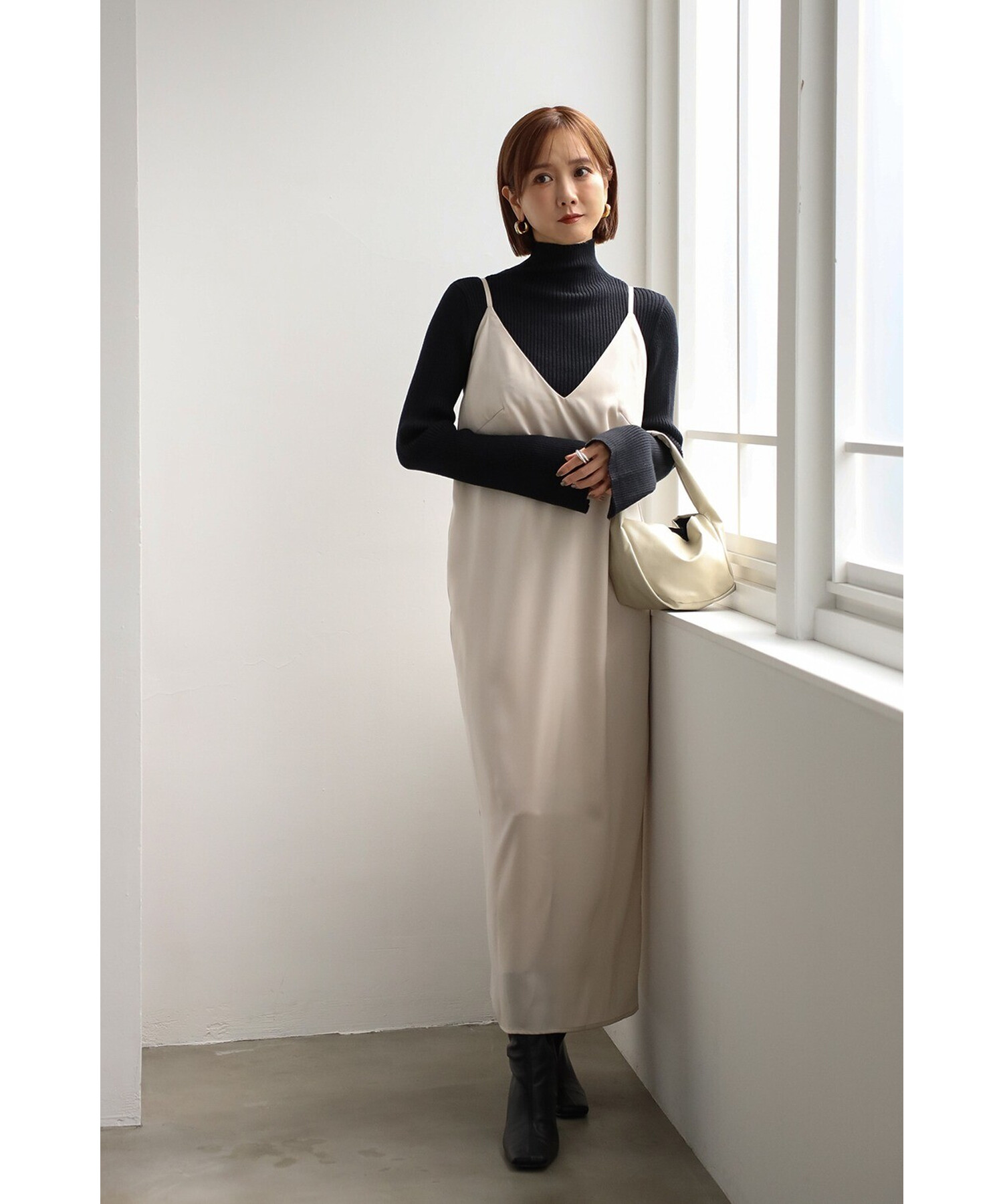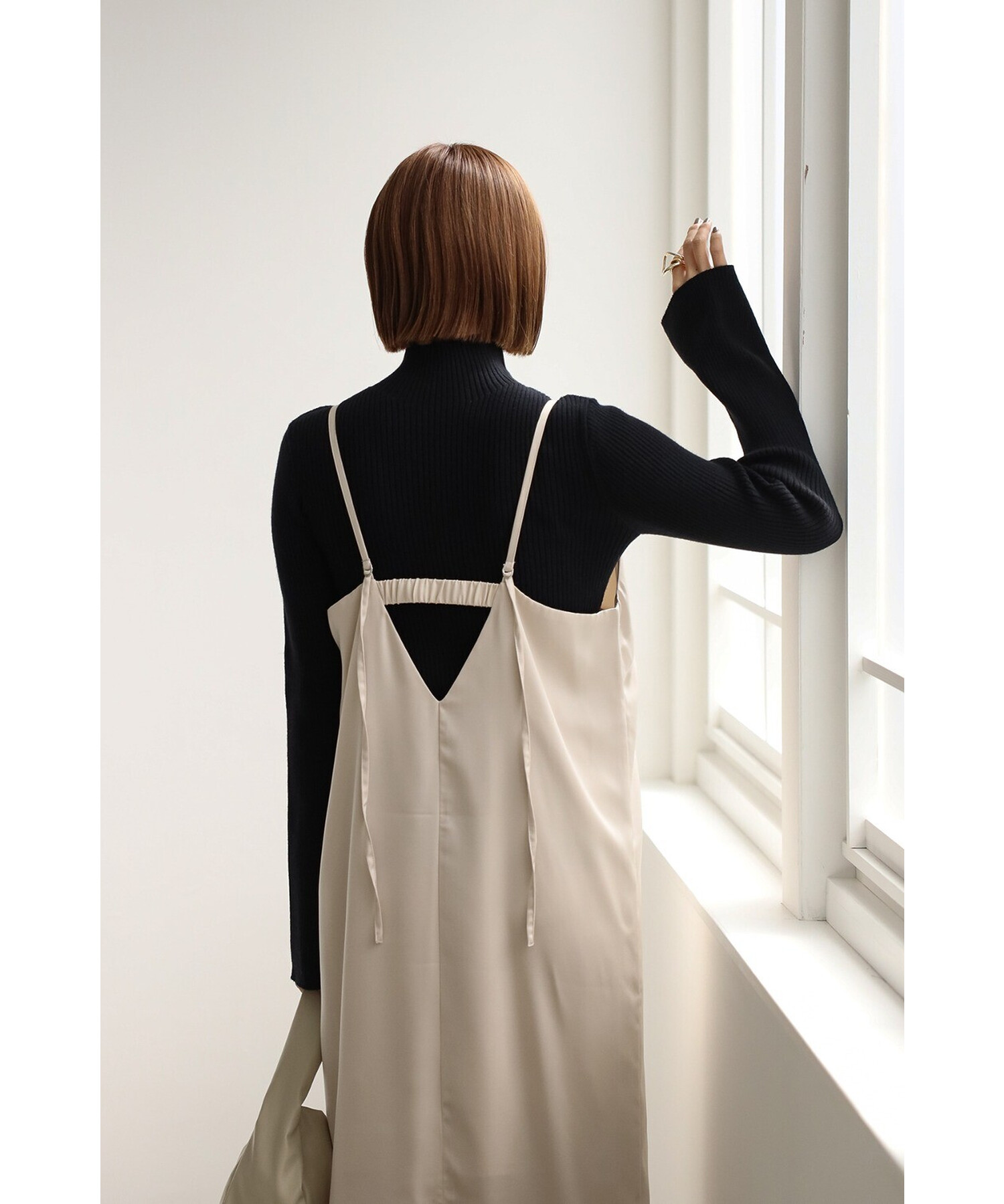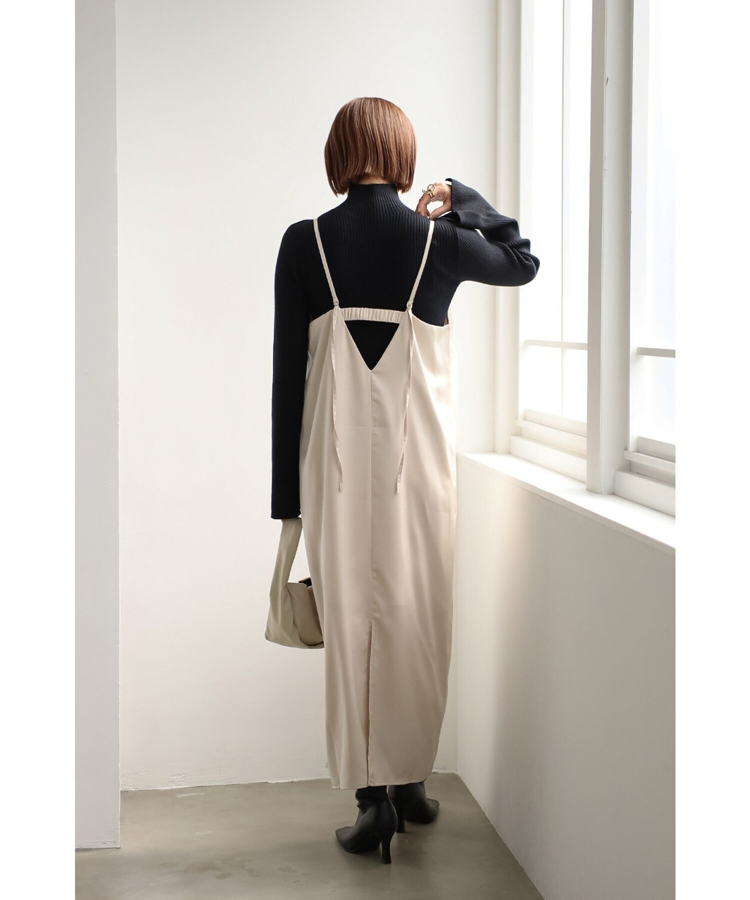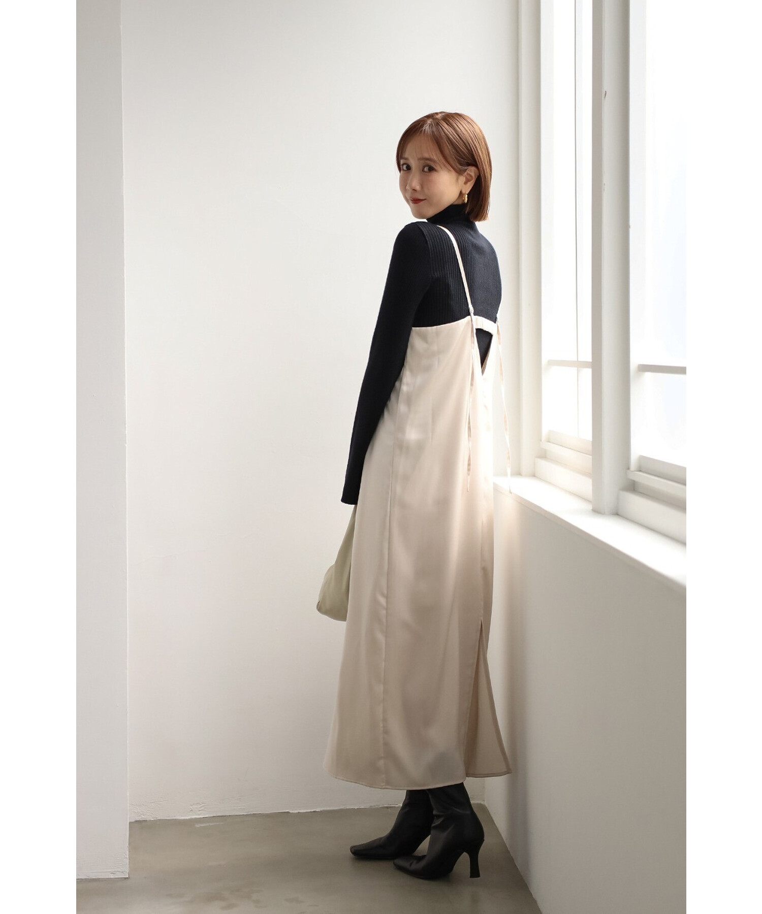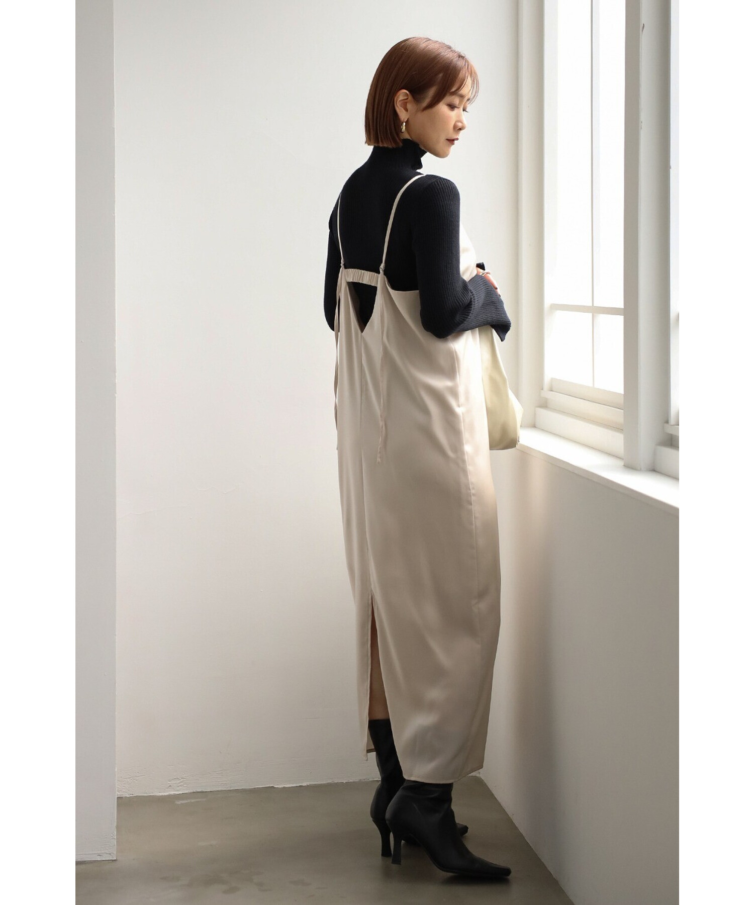 エレガントに纏うサテンキャミワンピース