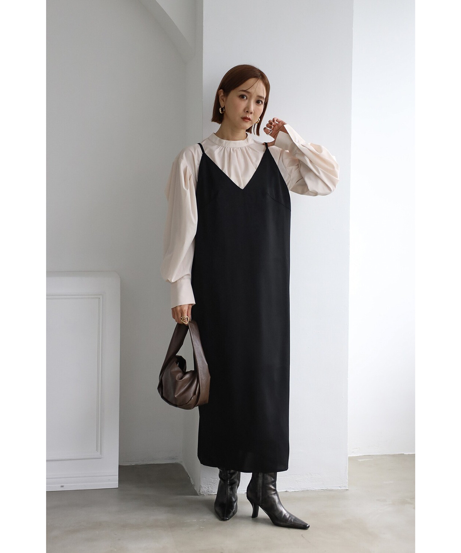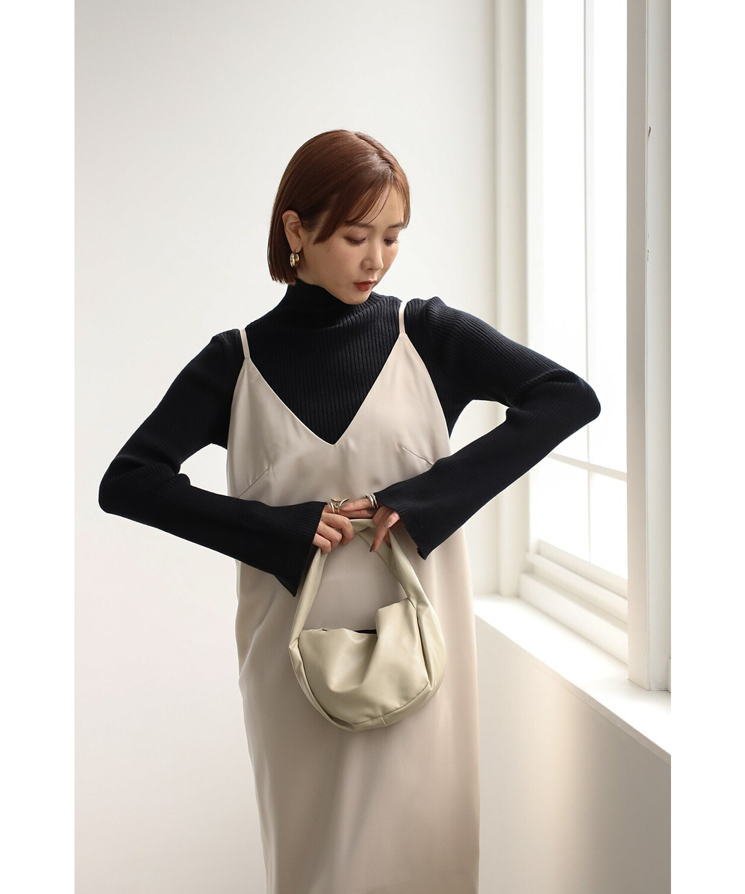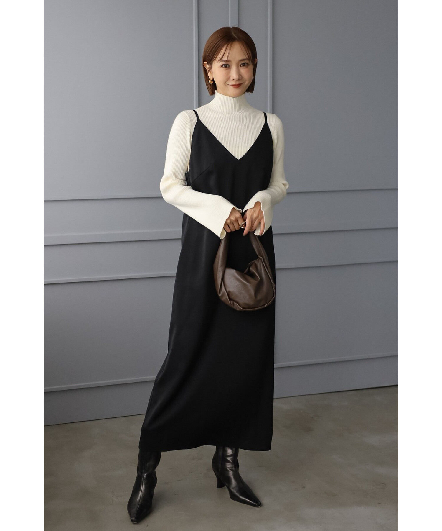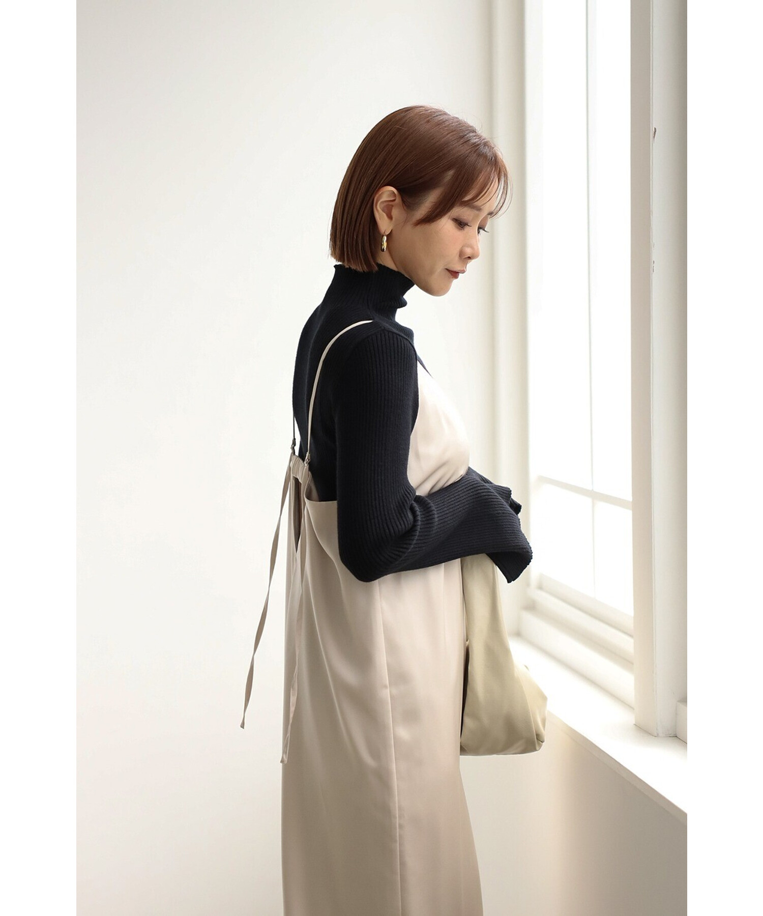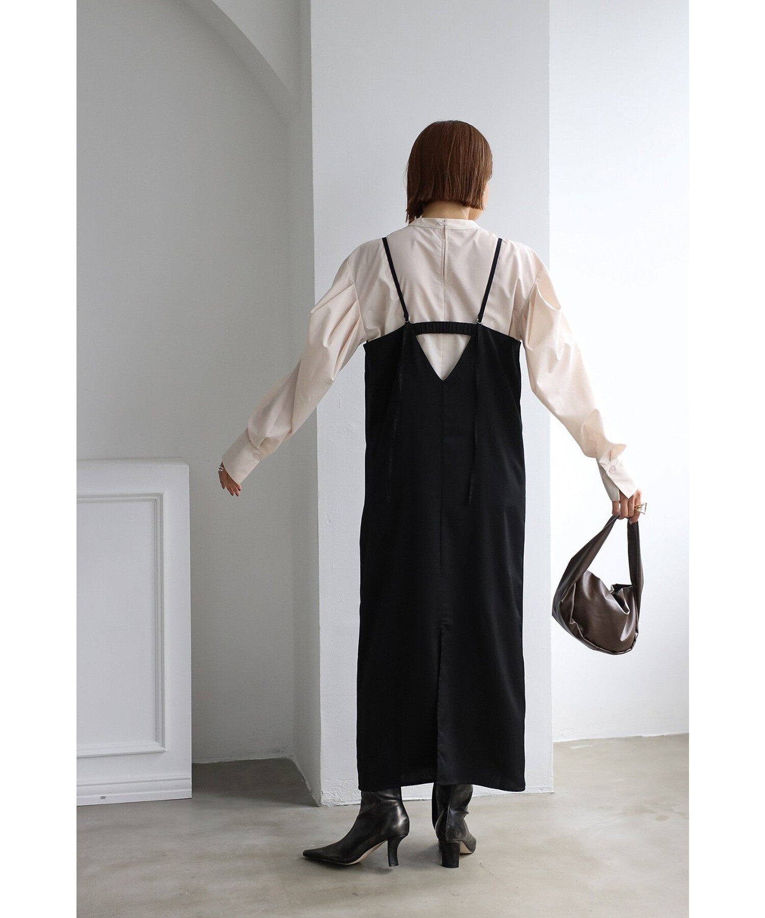 エレガントに纏うサテンキャミワンピース