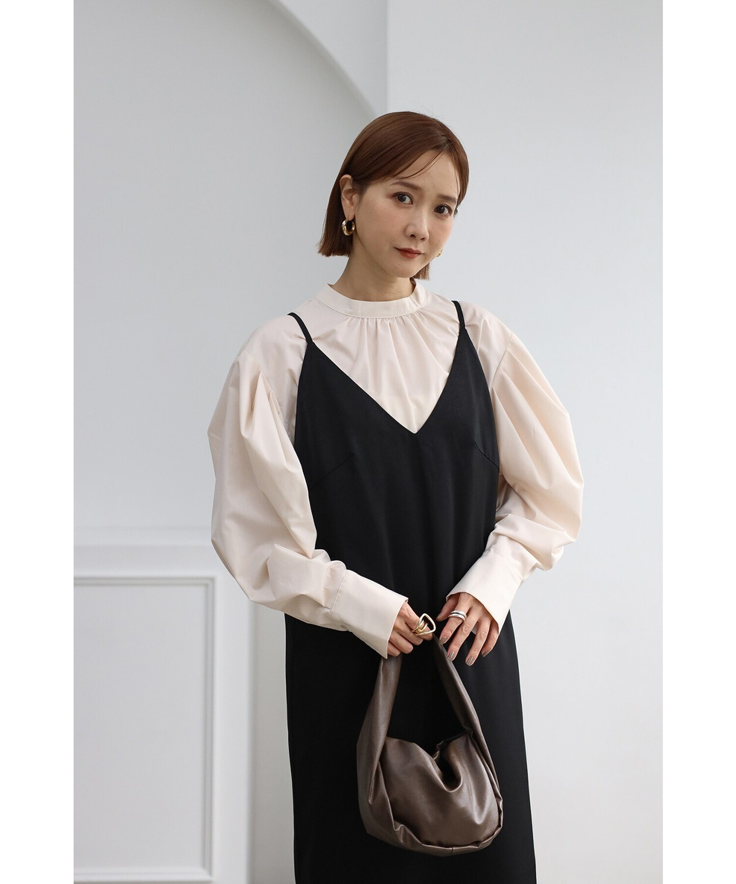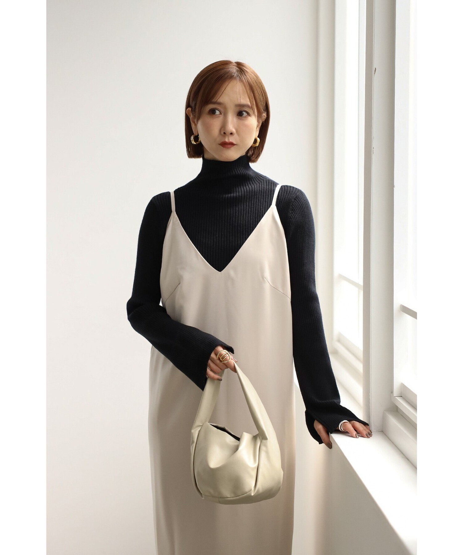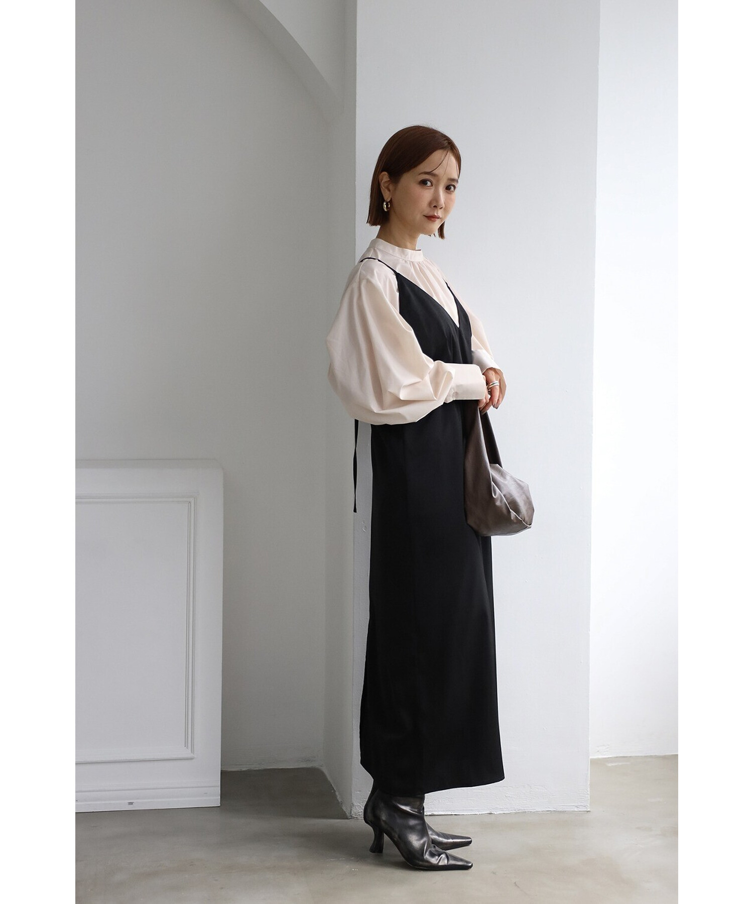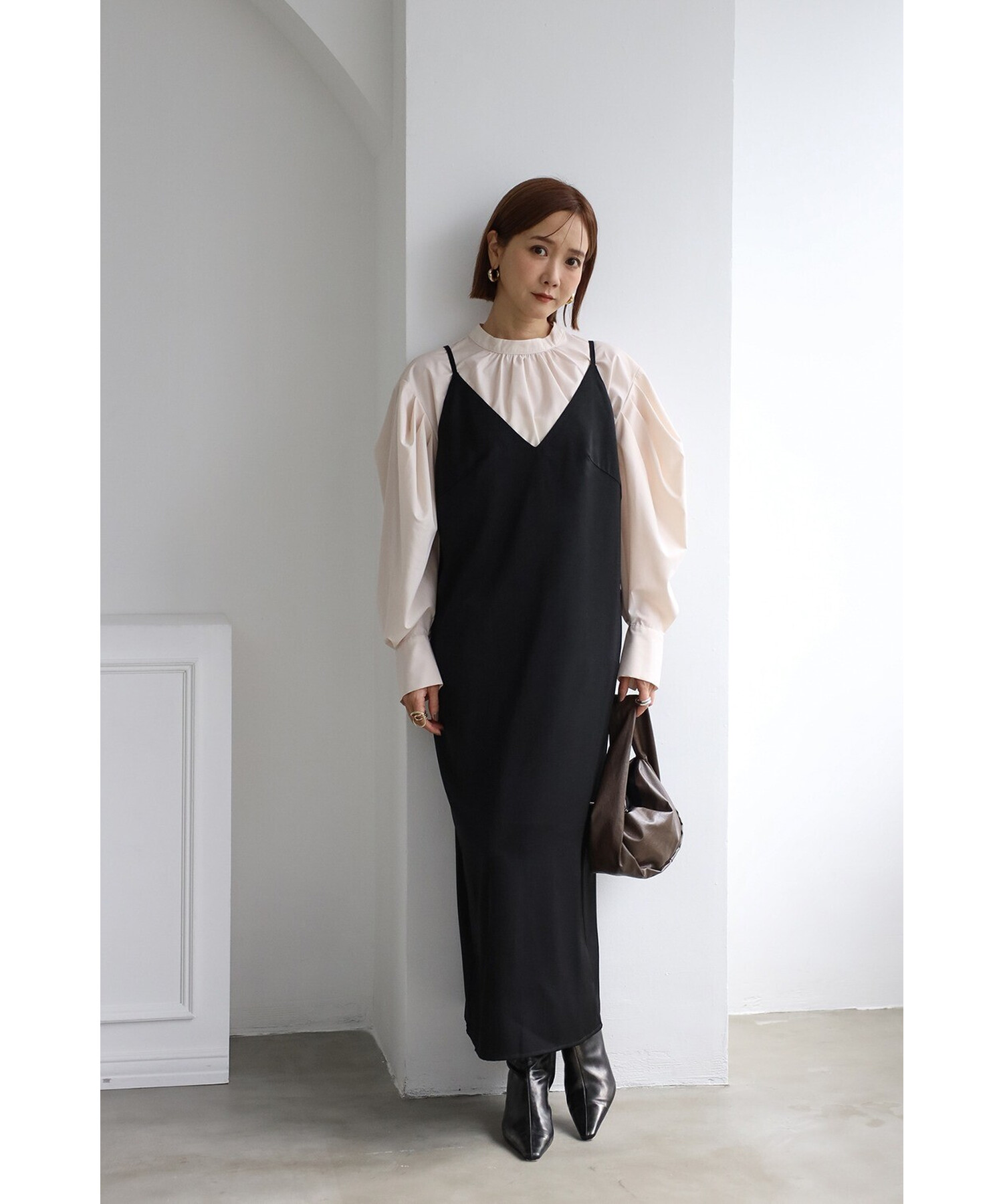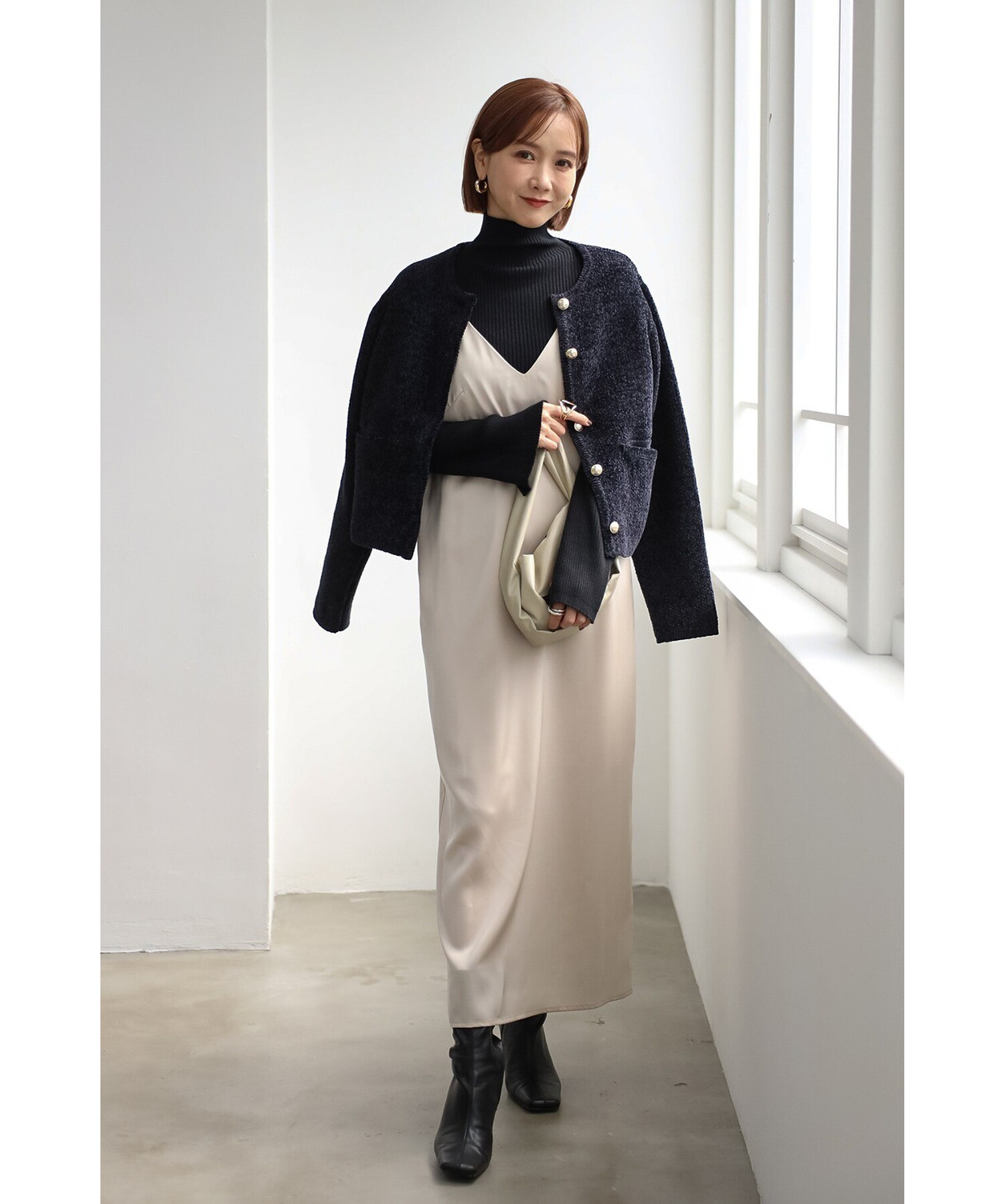 エレガントに纏うサテンキャミワンピース