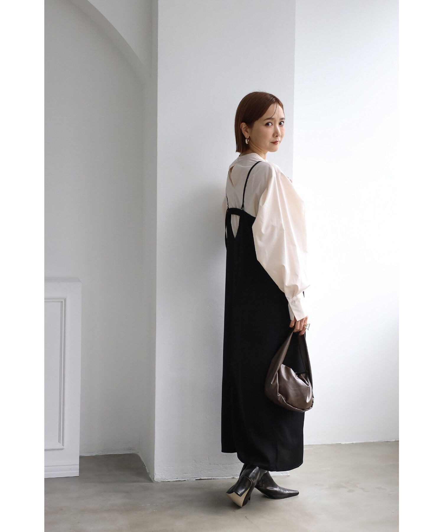 調整可能な長めのストラップが、後ろ姿をエレガントに彩ります。