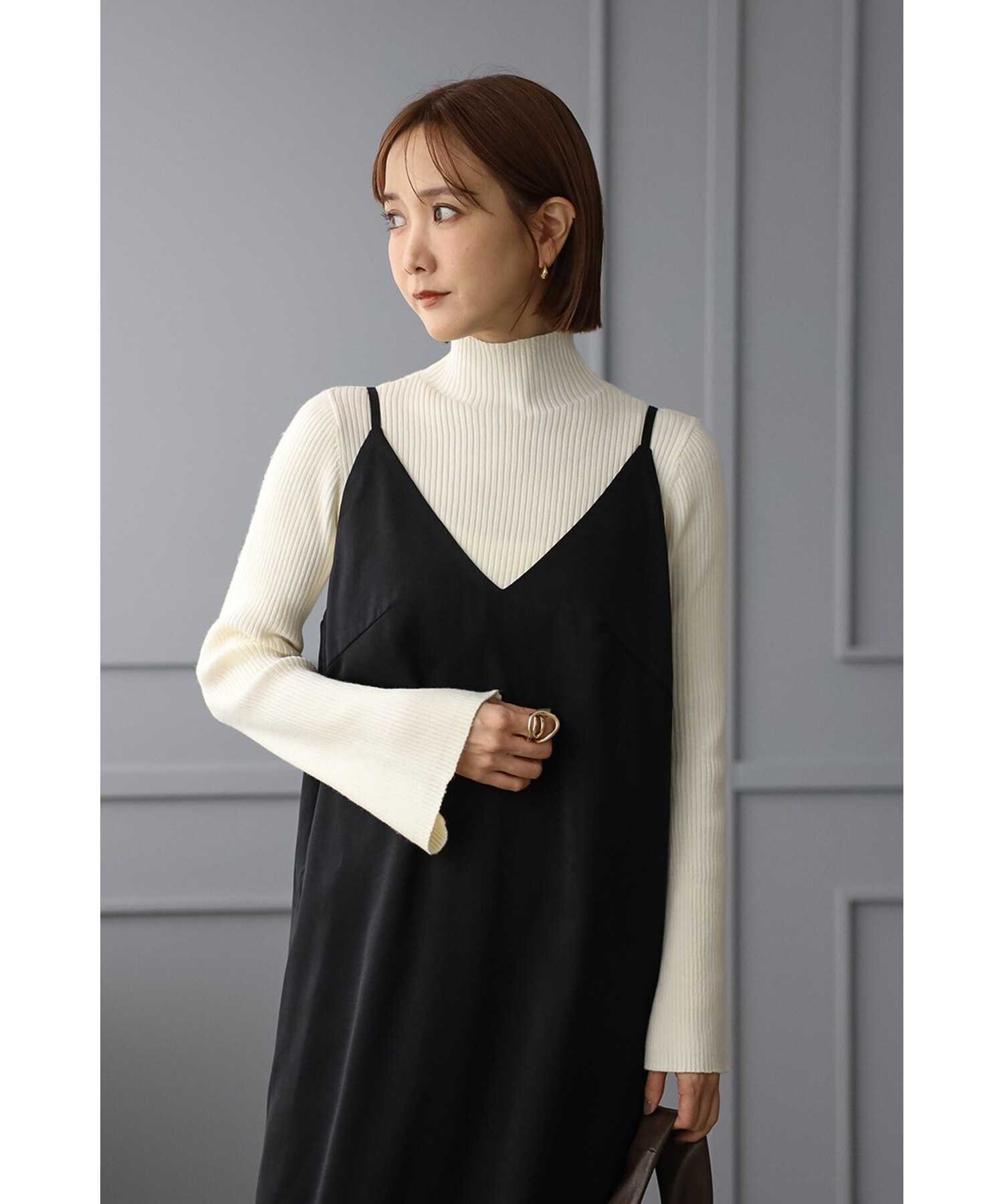 田中里奈【158cm】ライトベージュ、ブラック着用
