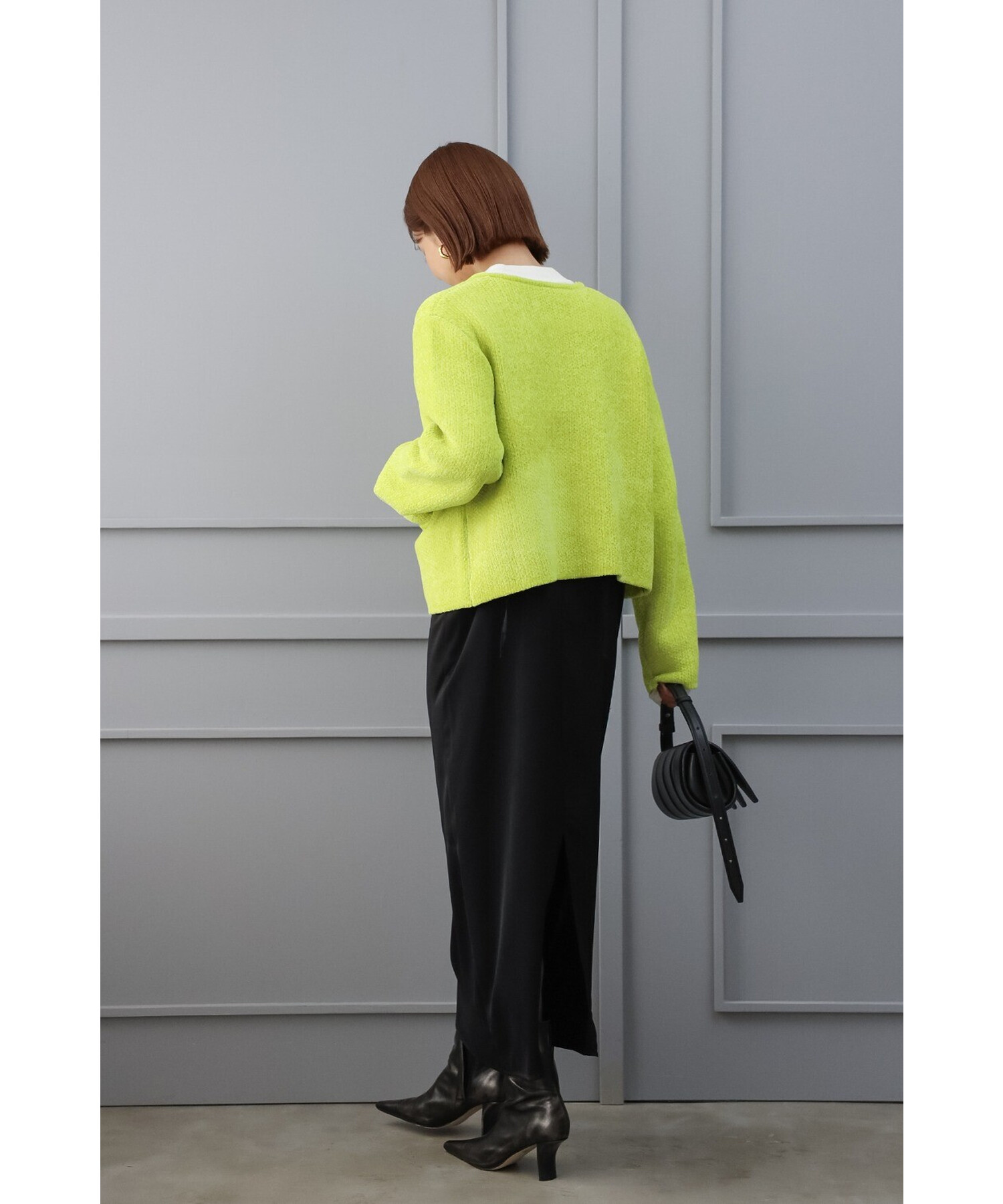 ストンと落ち感のあるロング丈は、控えめなコクーンカーブシルエットで上品な印象を演出。