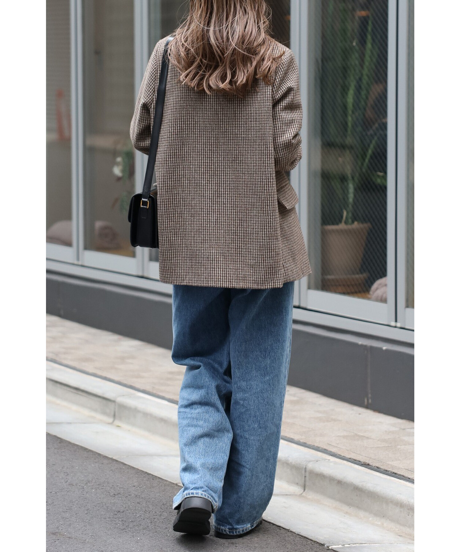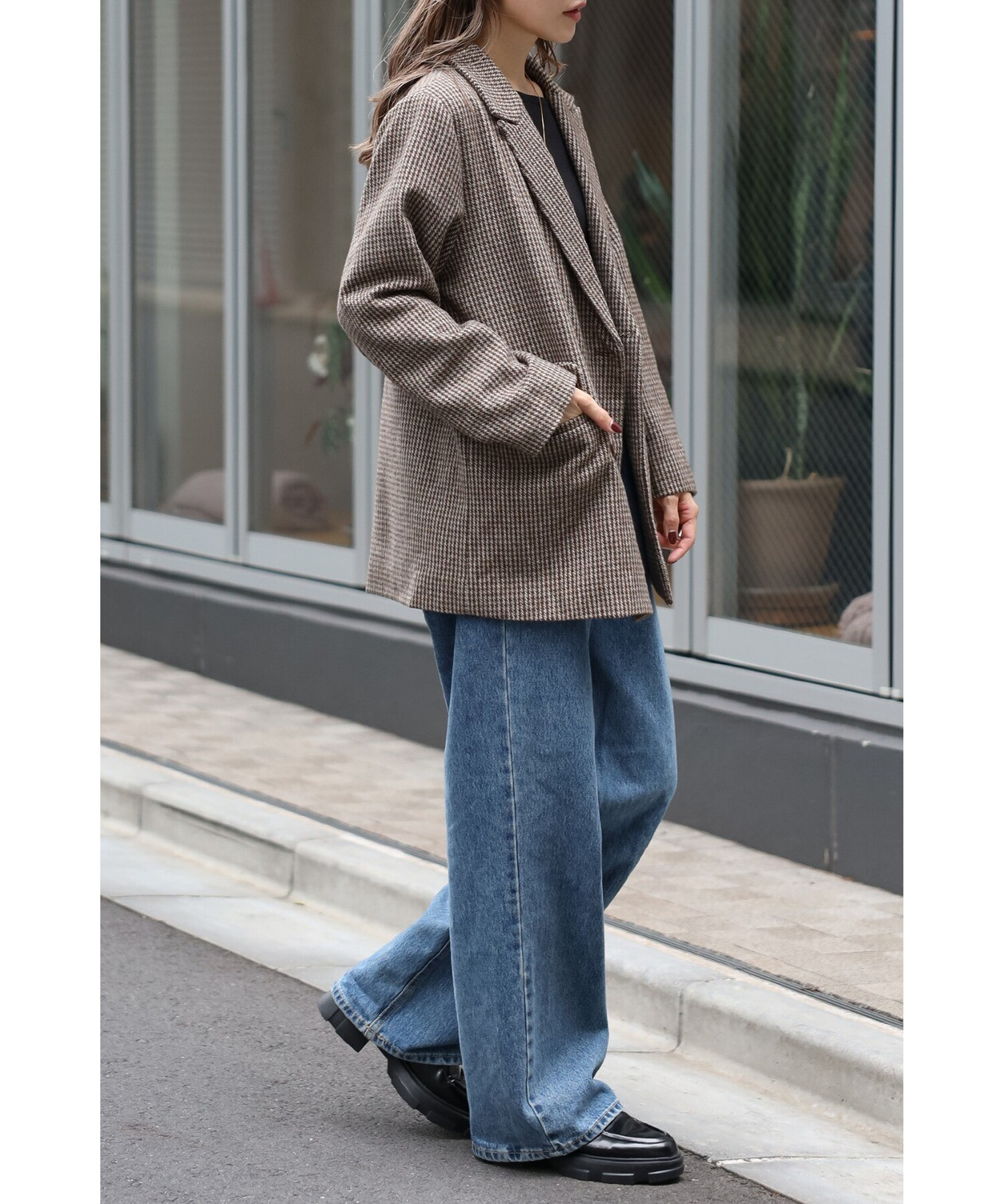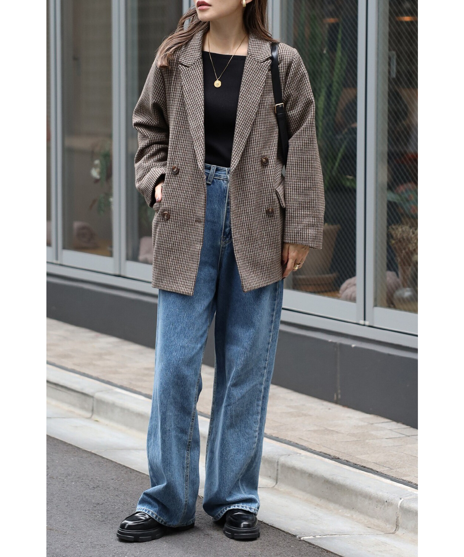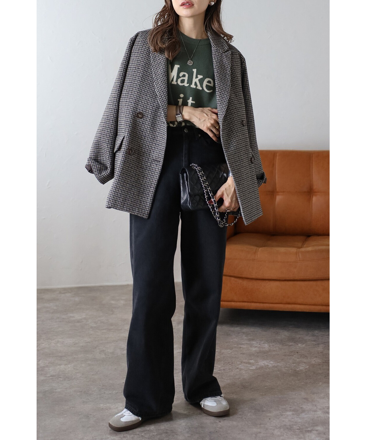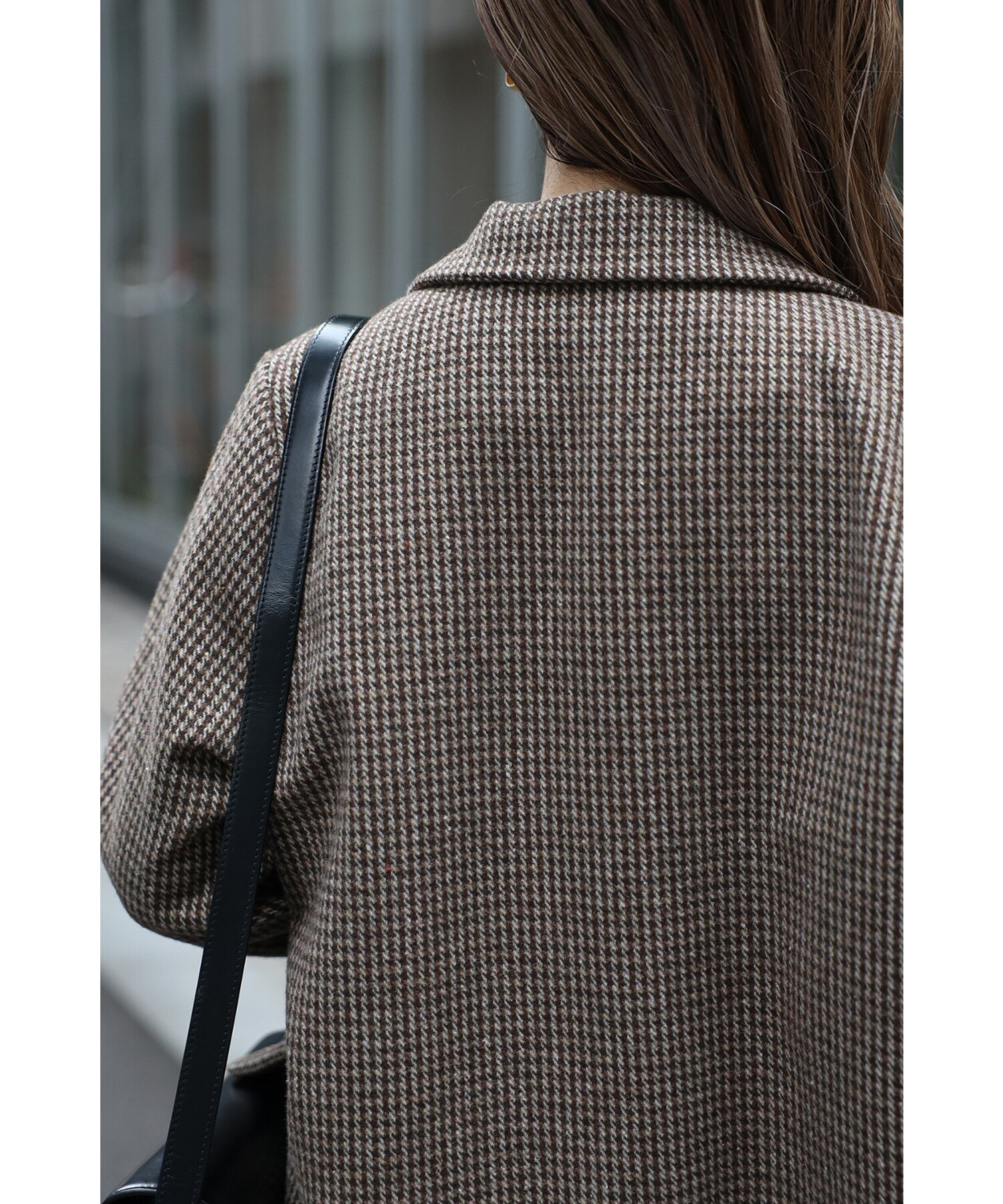 クラシックなガンクラブチェックが上品な印象を与えるダブルブレストジャケット。
