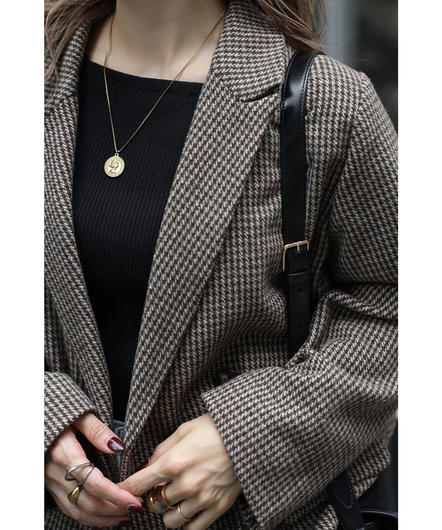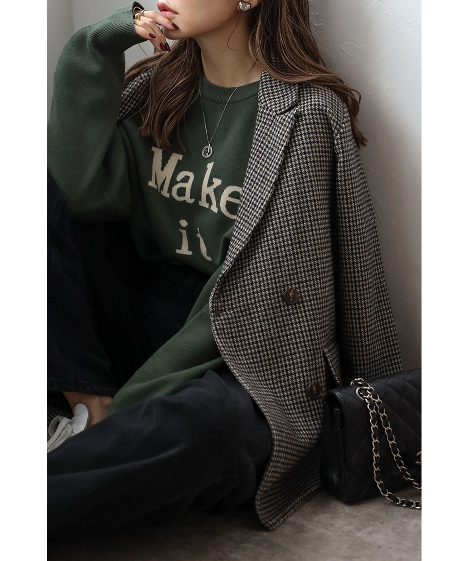 しっかりとした生地感で、秋冬のコーディネートに暖かさと深みをプラスします。