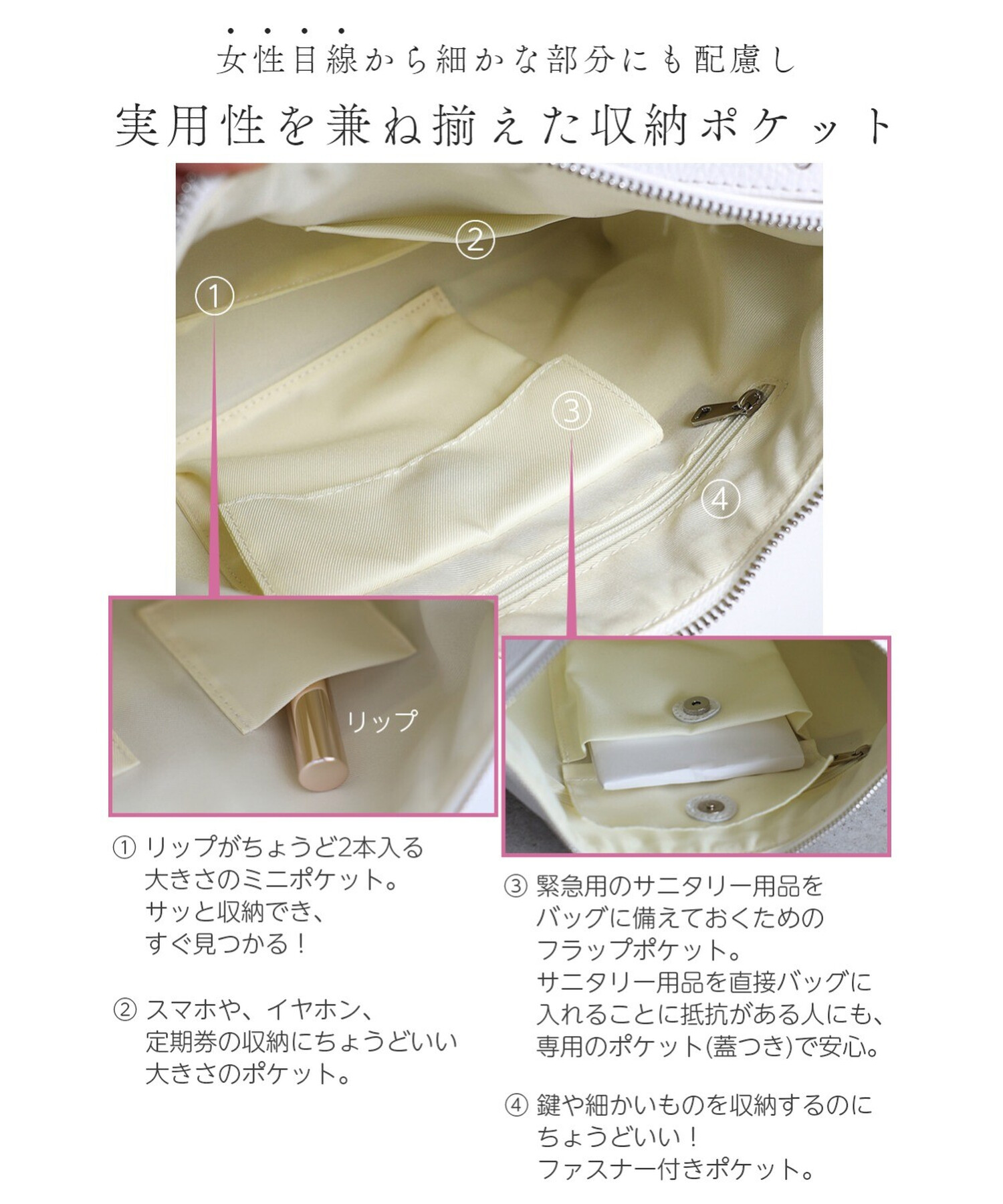 内ポケットは、サニタリーポケットや小物用ポケットなど女性目線から細かな部分にも配慮。