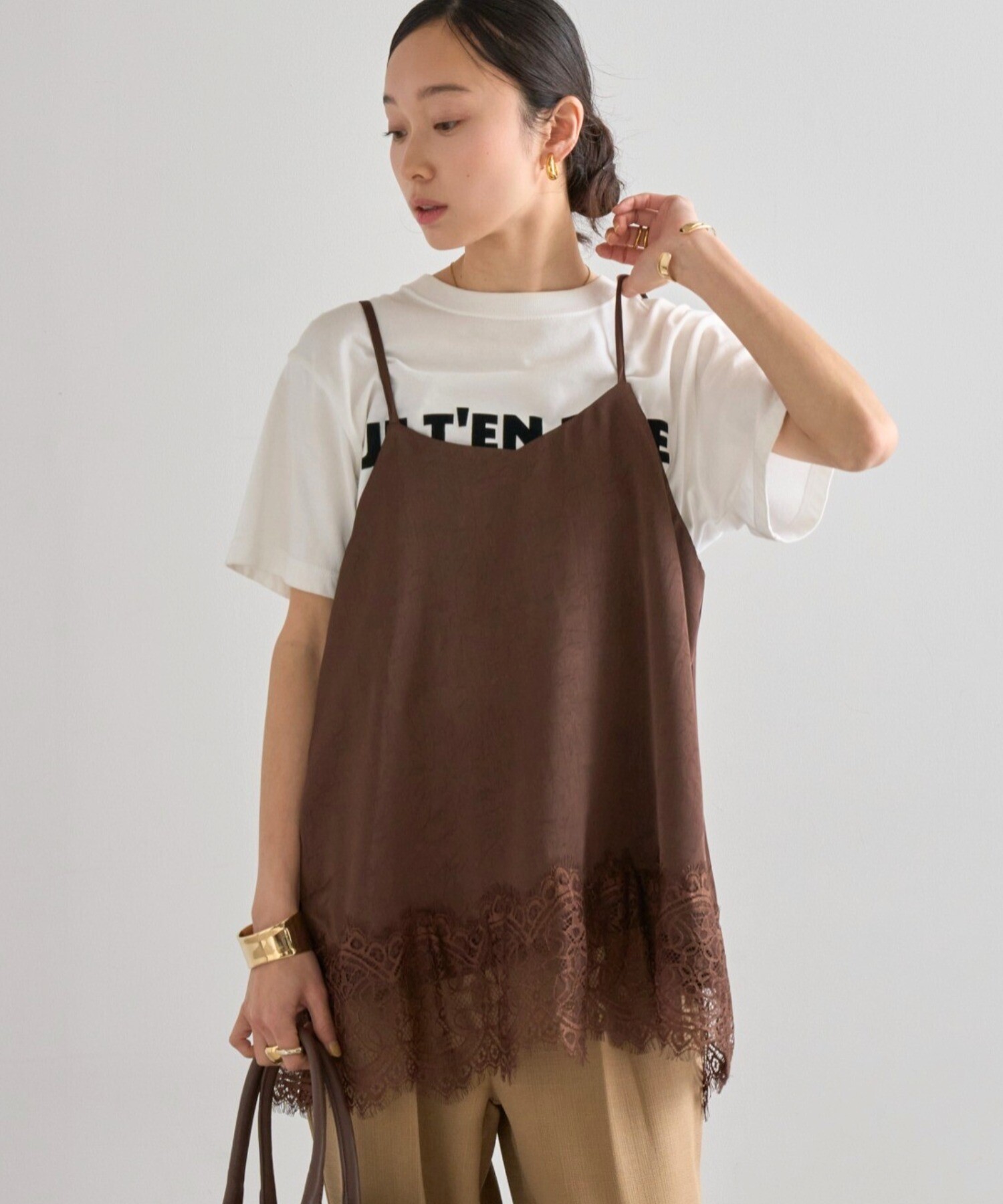 トレンドのレースアイテムとして幅広いシーンで活躍するキャミソールです。