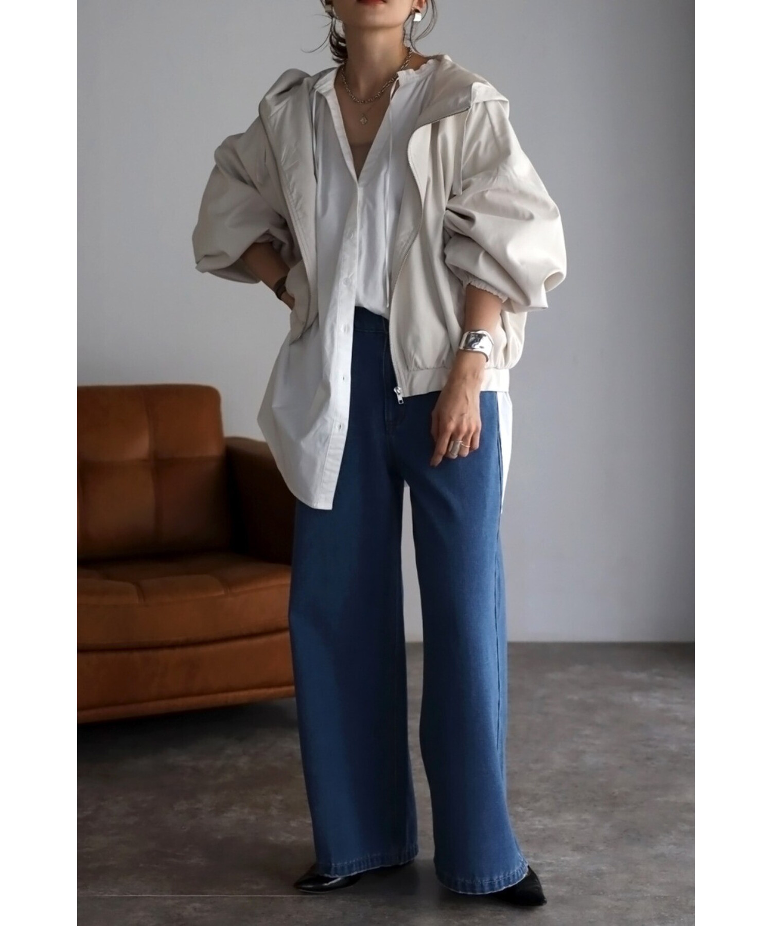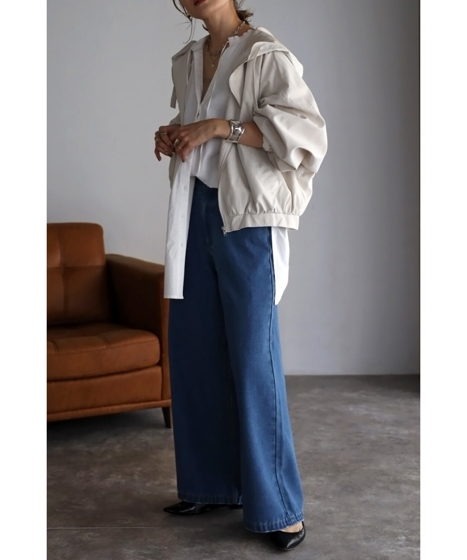 デニムやチノパンなどカジュアルなアイテムはもちろん、スカートやワンピース、キレイめパンツなどどんなアイテムとも相性抜群。