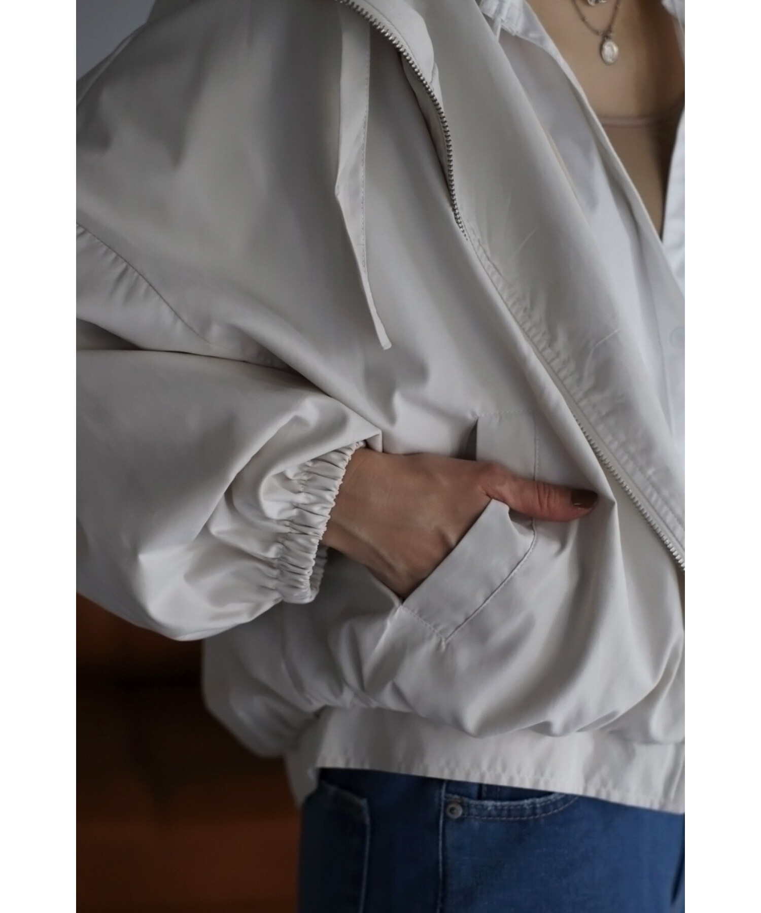 ポリエステル×ナイロンの軽い素材が魅力的なライトブルゾン。
