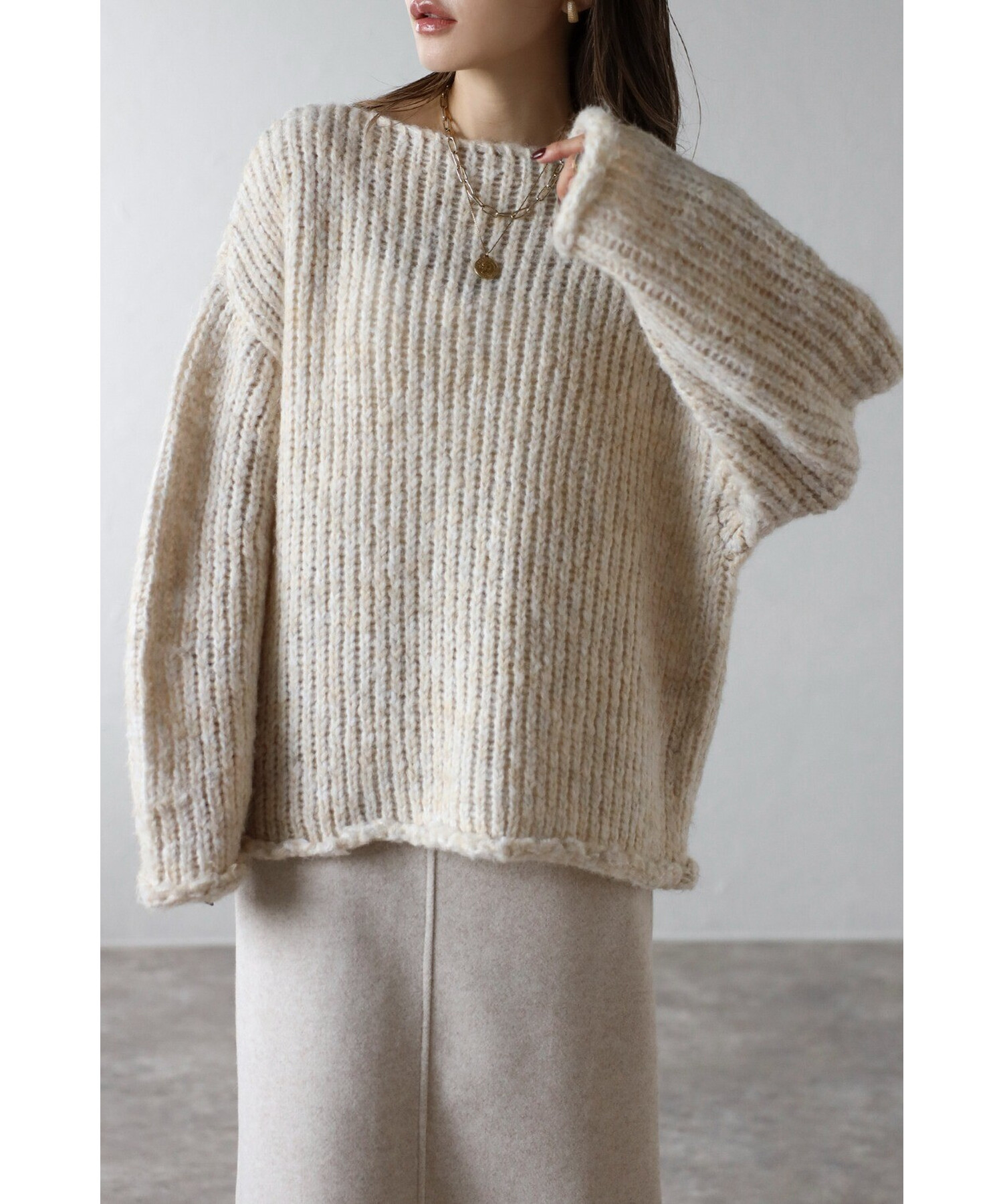 ふんわり包まれる。アルパカタッチのローゲージニット