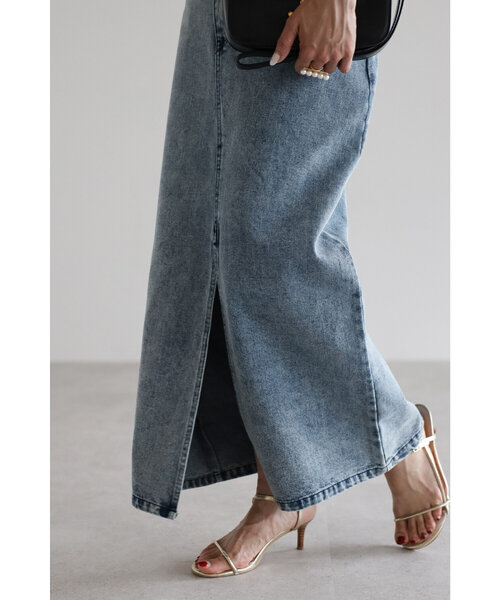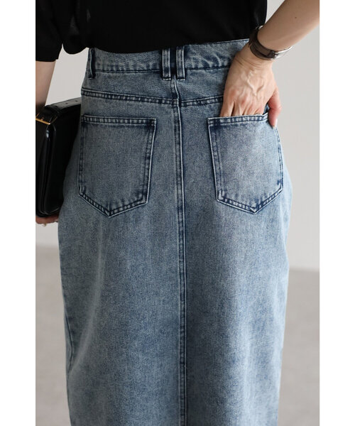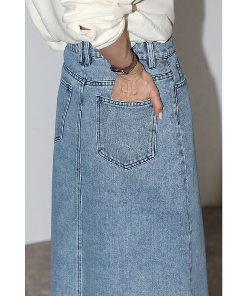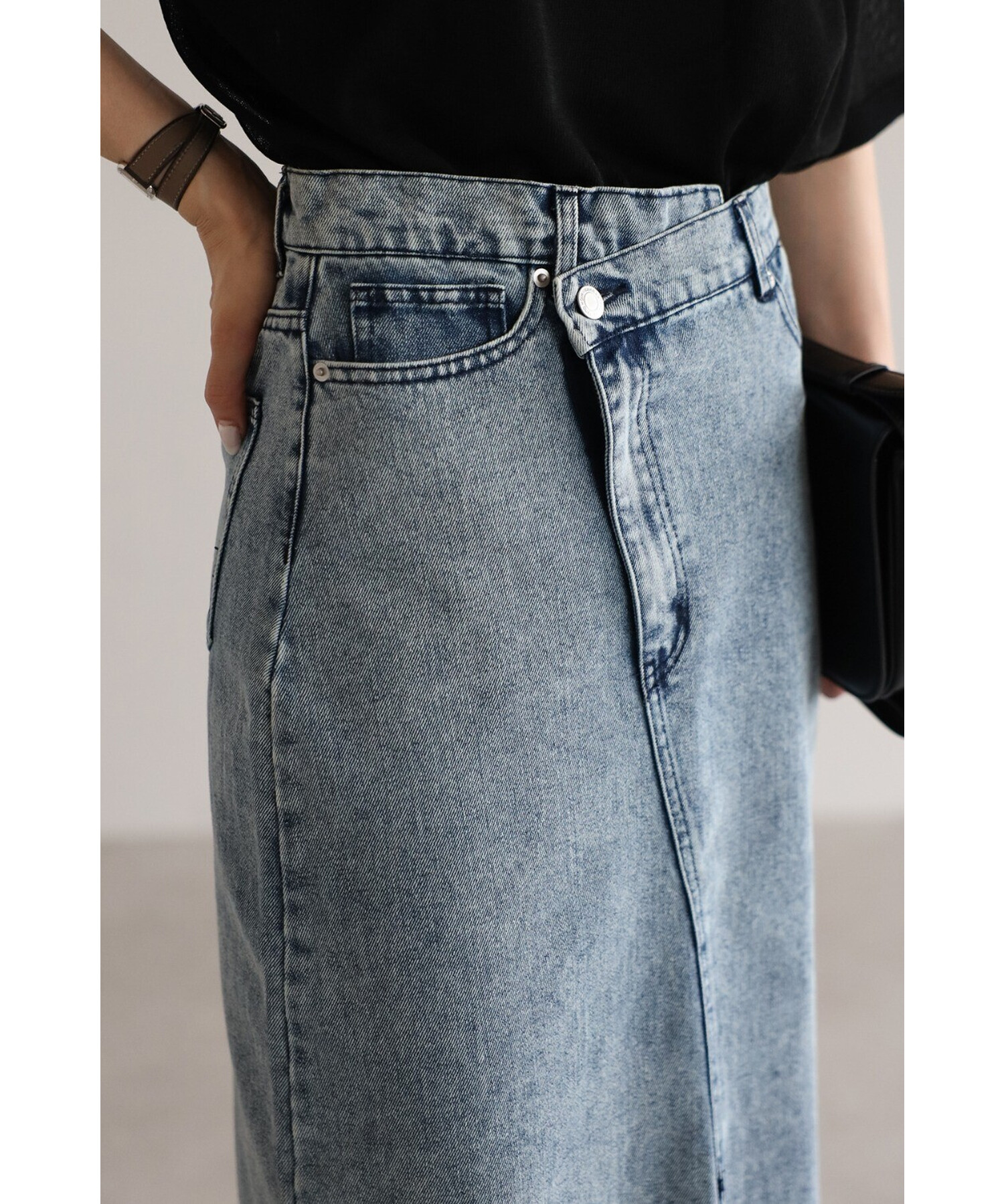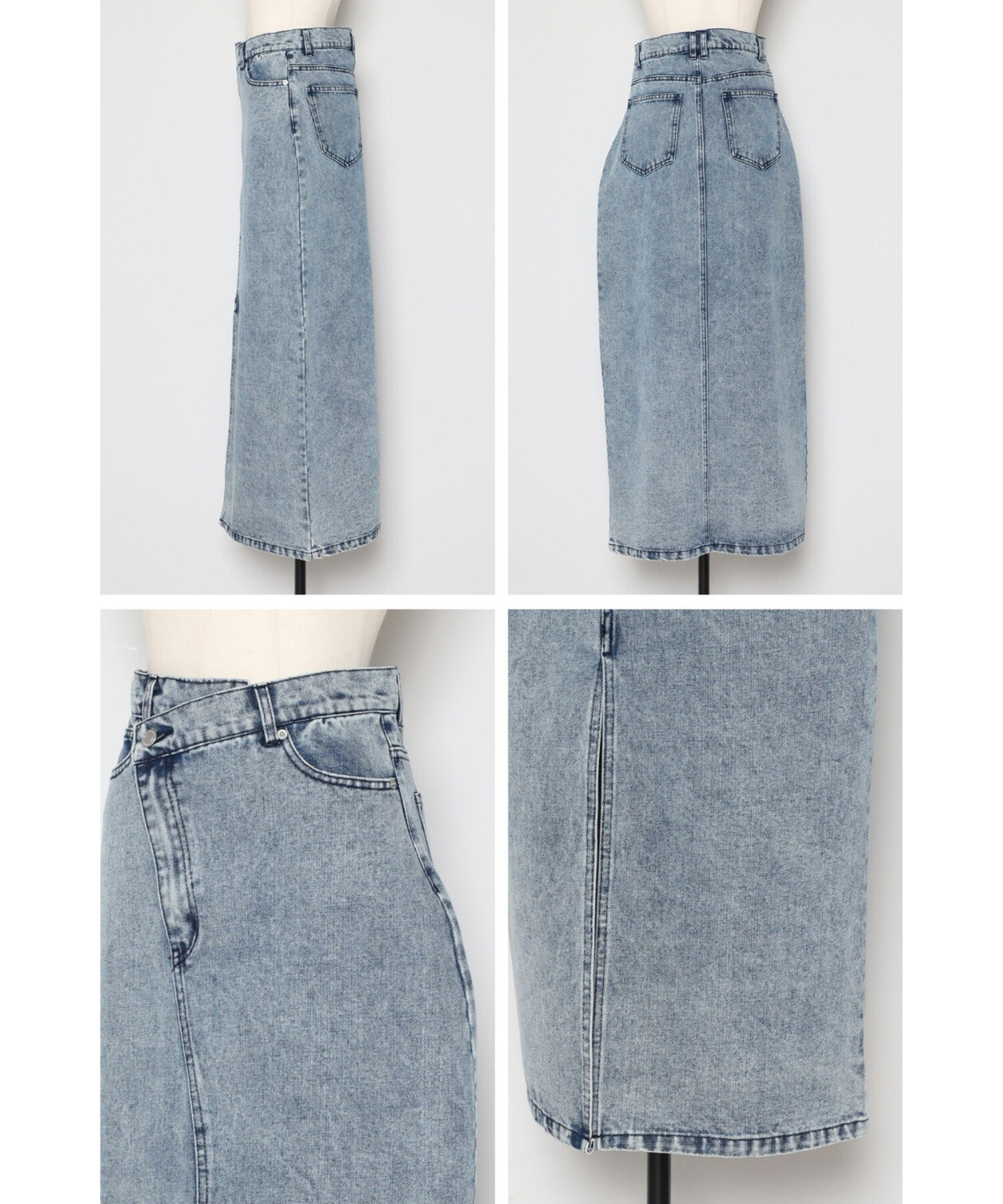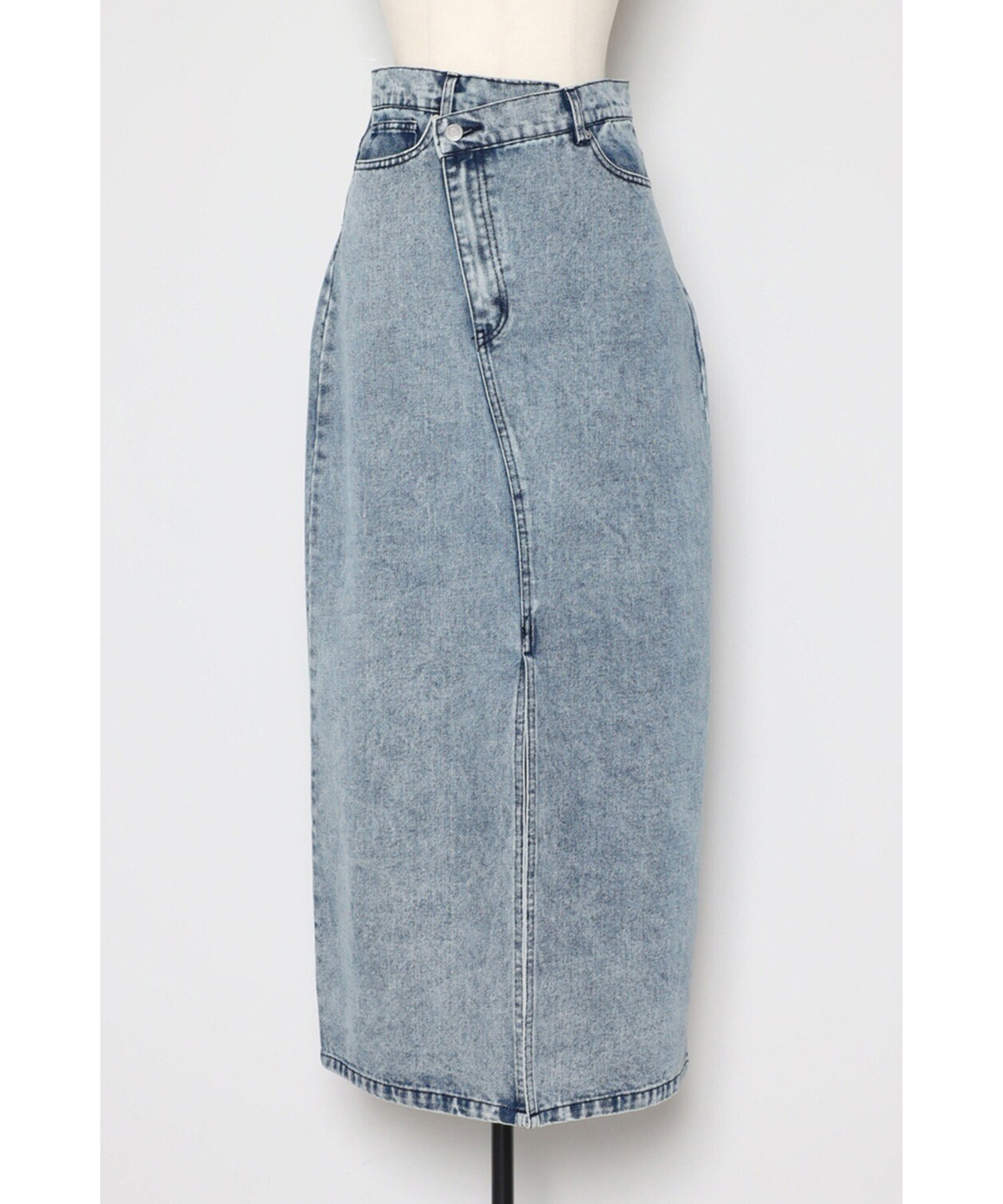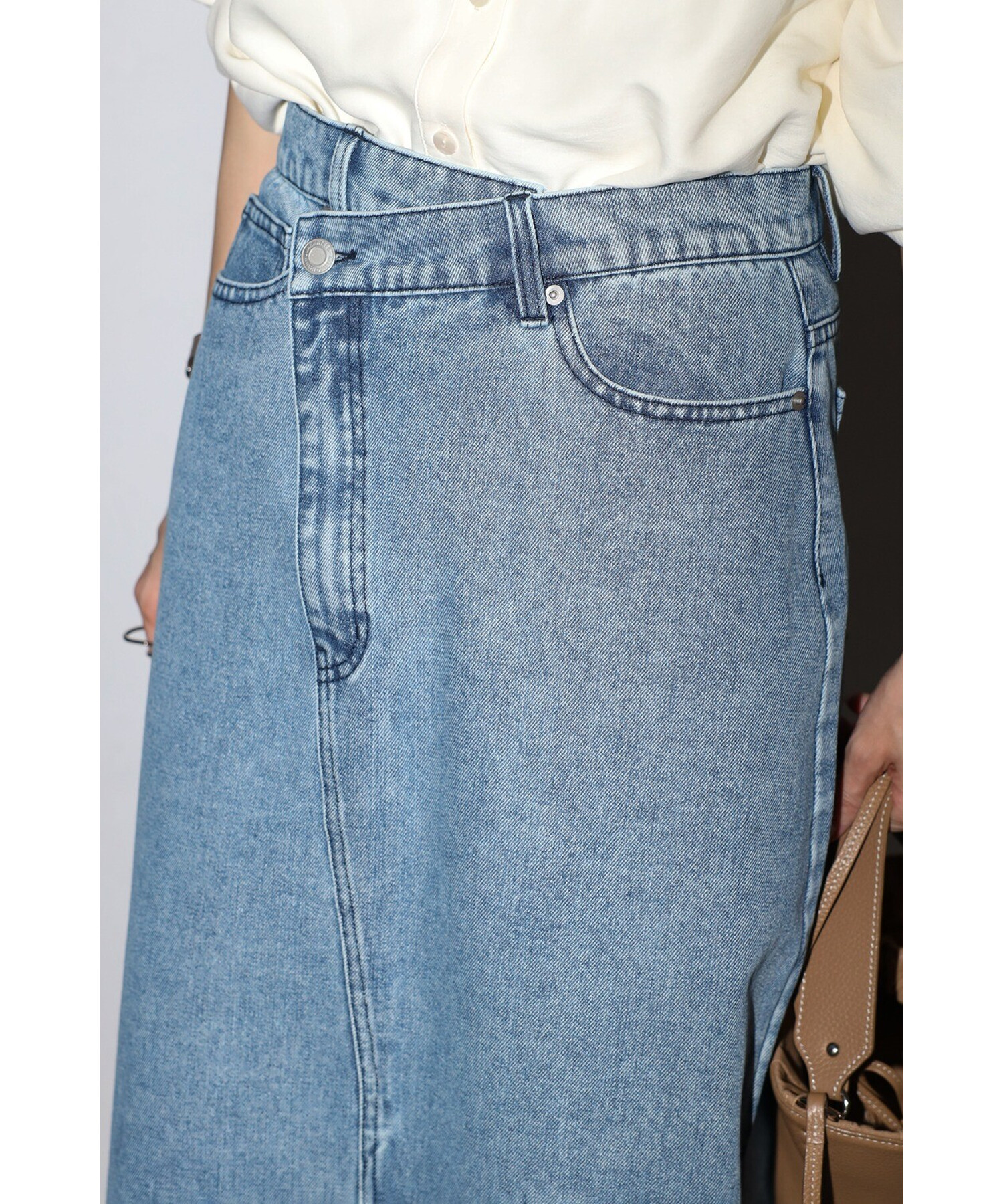 こなれ感のあるスタイリングが1枚で完成する、クロスウエストデザインのデニムスカート。